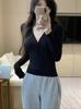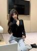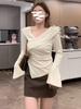 Camiseta ajustada con cuello en V estilo Pure Desire, otoño de 2024, nuevo estilo de las Spice Girls, cintura ajustada, adelgazante, única, sexy, de manga larga.
