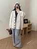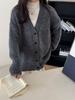 Suéter de Punto Holgado Estilo Coreano Otoño e Invierno Estilo Lazy Nuevo Suave Delicado Ceroso Edición Grande Color Sólido Cuello en V Cárdigan
