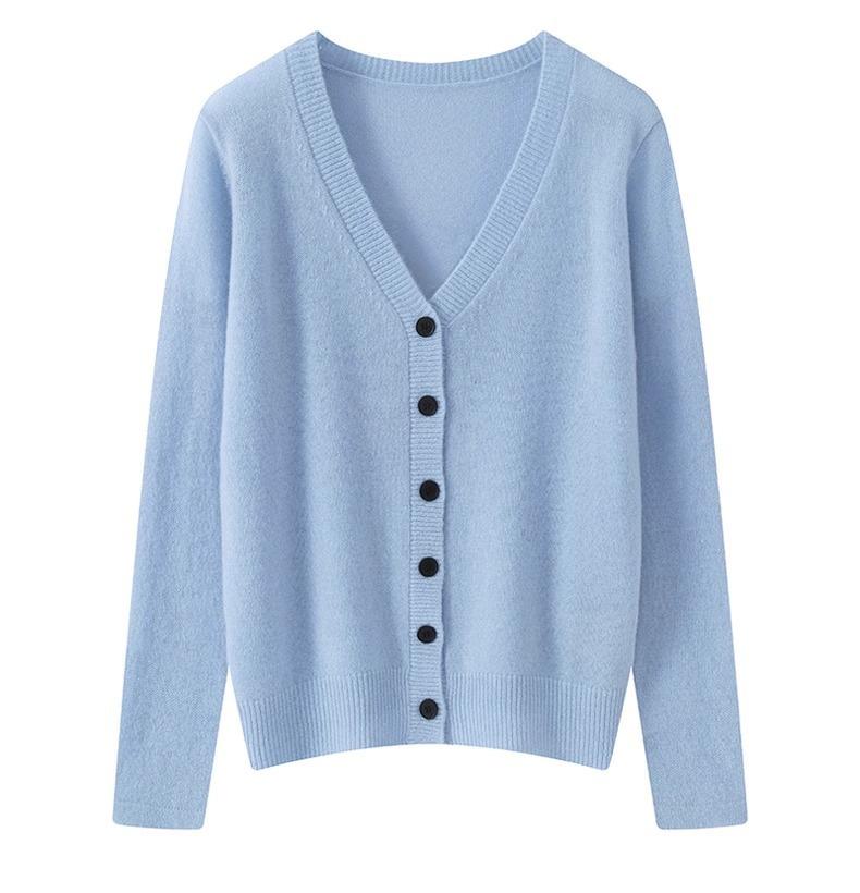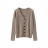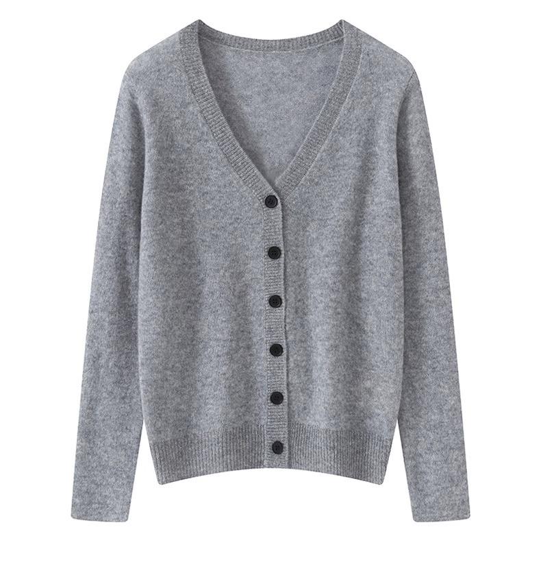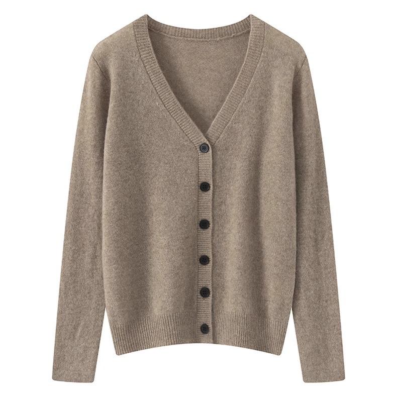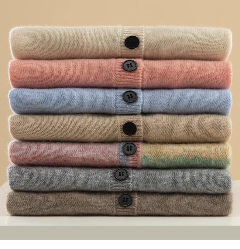 Cárdigan de Cachemira de Cuello en V a Rayas de Color en Contraste Combinable Suéter de Cachemira Pura Prendas de Punto Abrigo Top para Otoño e Invierno Mujer
