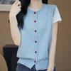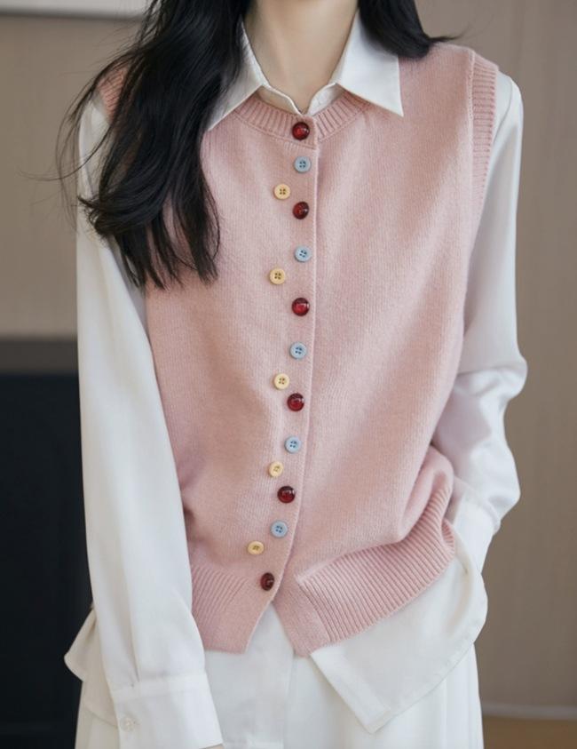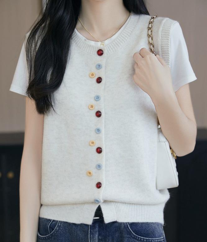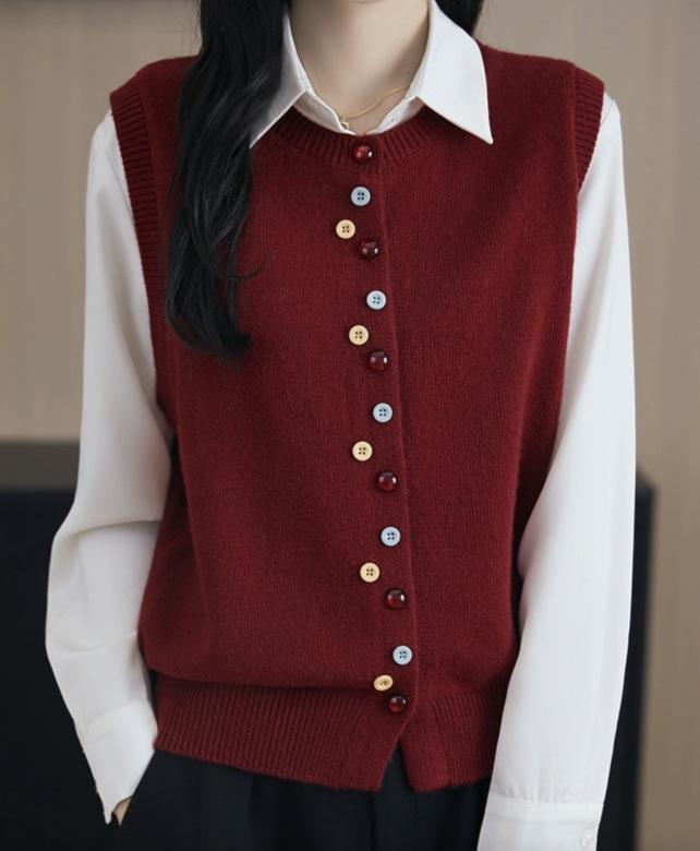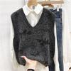 Chaleco de punto gris para mujer, prenda exterior, primavera y otoño 2025, nueva y elegante chaqueta tipo suéter sin mangas.