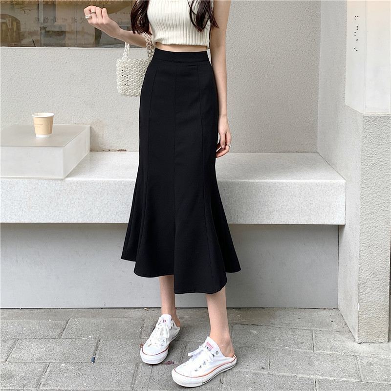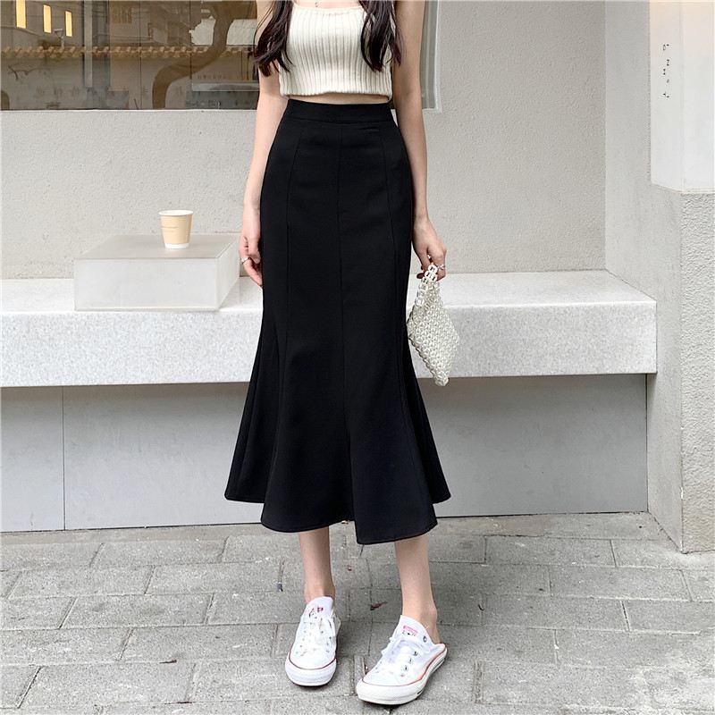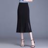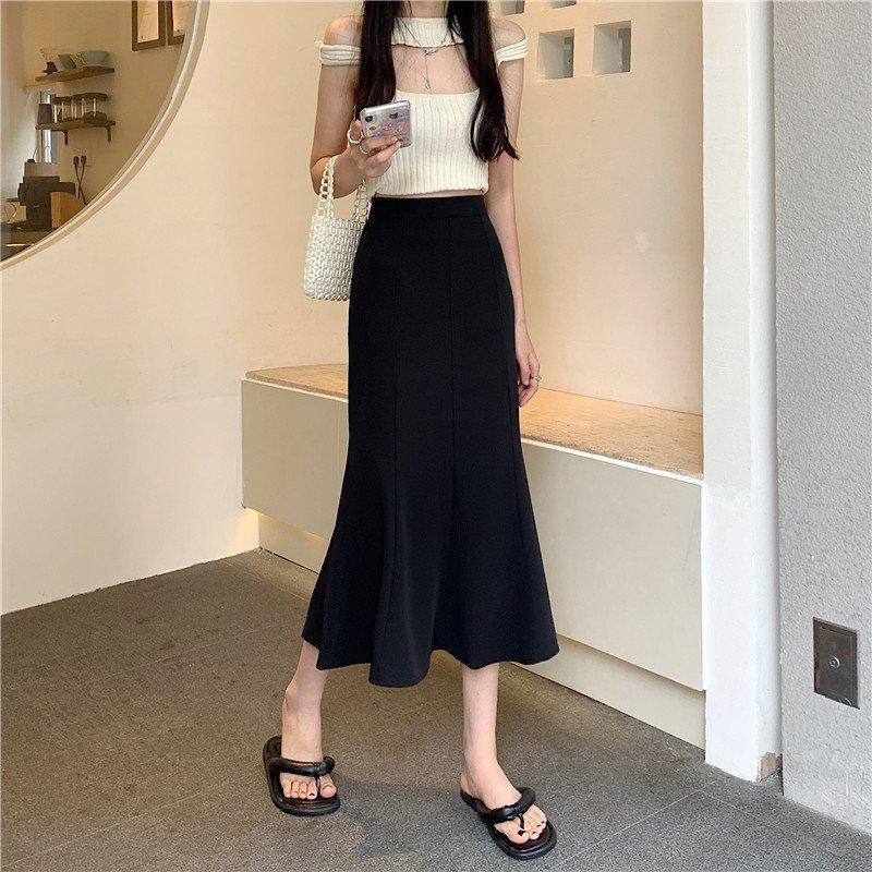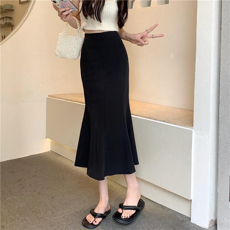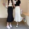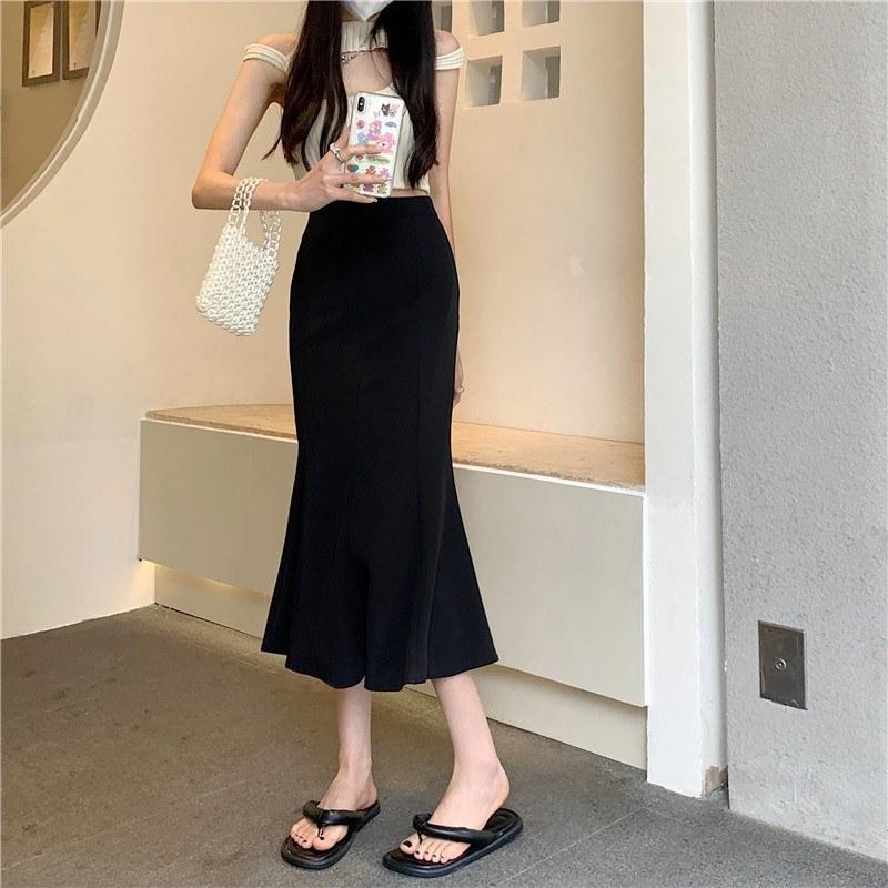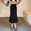 Falda de cola de pez negra para mujer, primavera y otoño 2023, nueva falda de cintura alta a la cadera, falda de un solo paso, falda elegante negra de longitud media