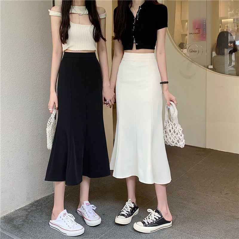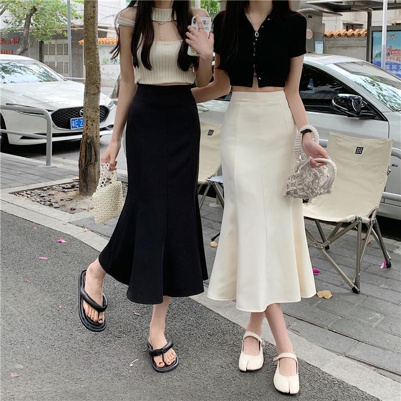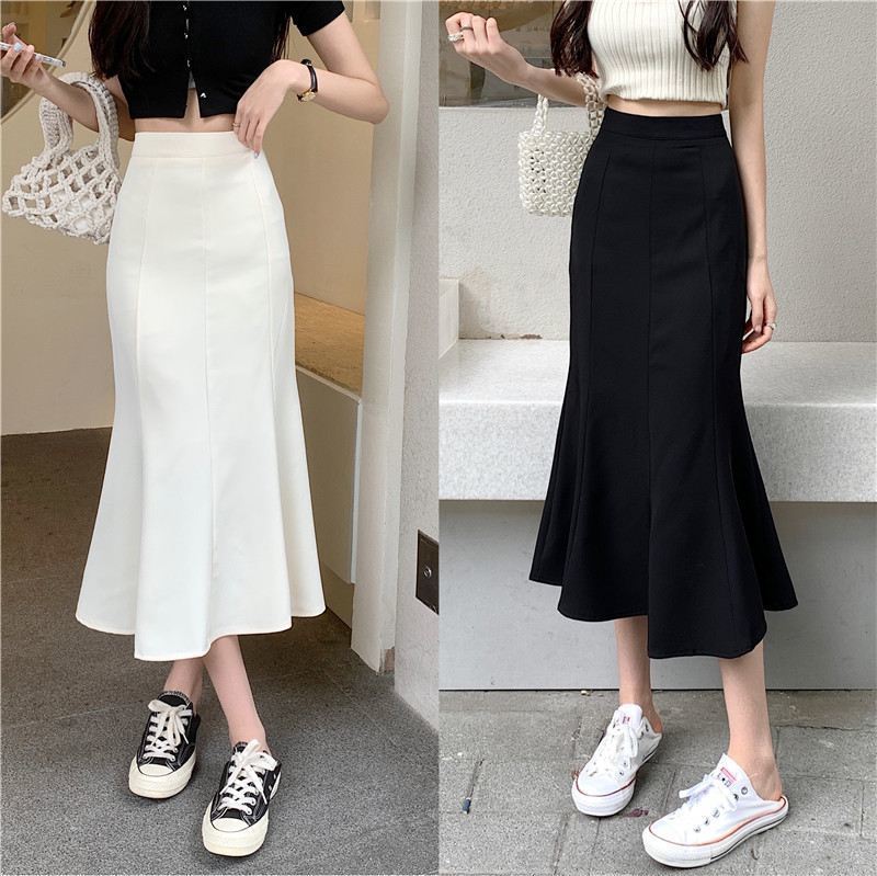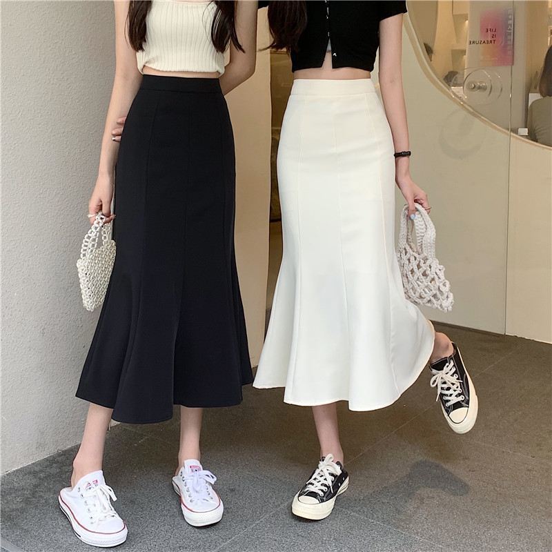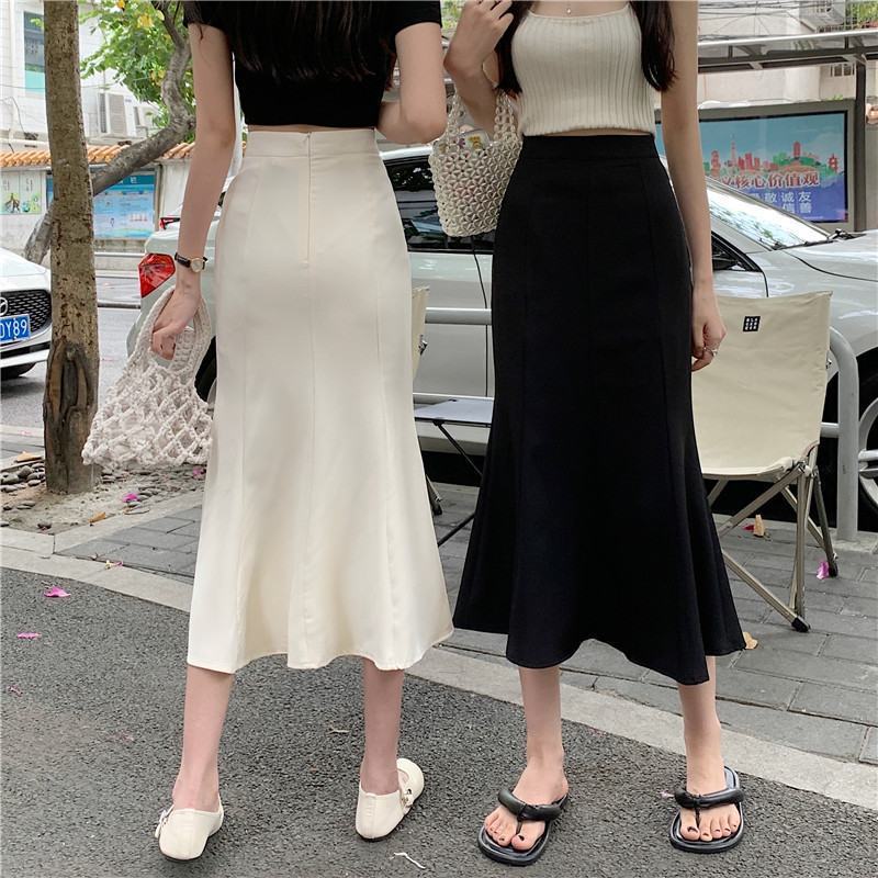 Falda de cola de pez negra para mujer, primavera y otoño 2023, nueva falda de cintura alta a la cadera, falda de un solo paso, falda elegante negra de longitud media