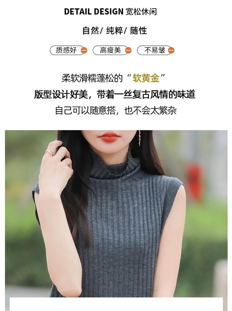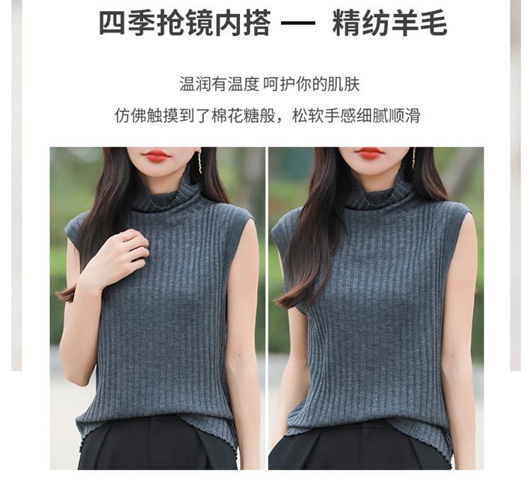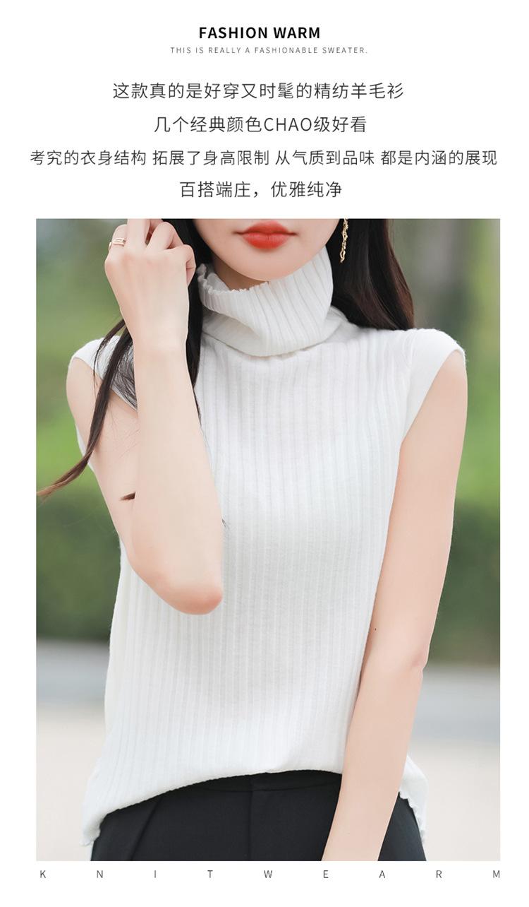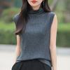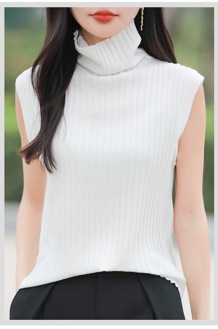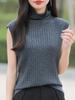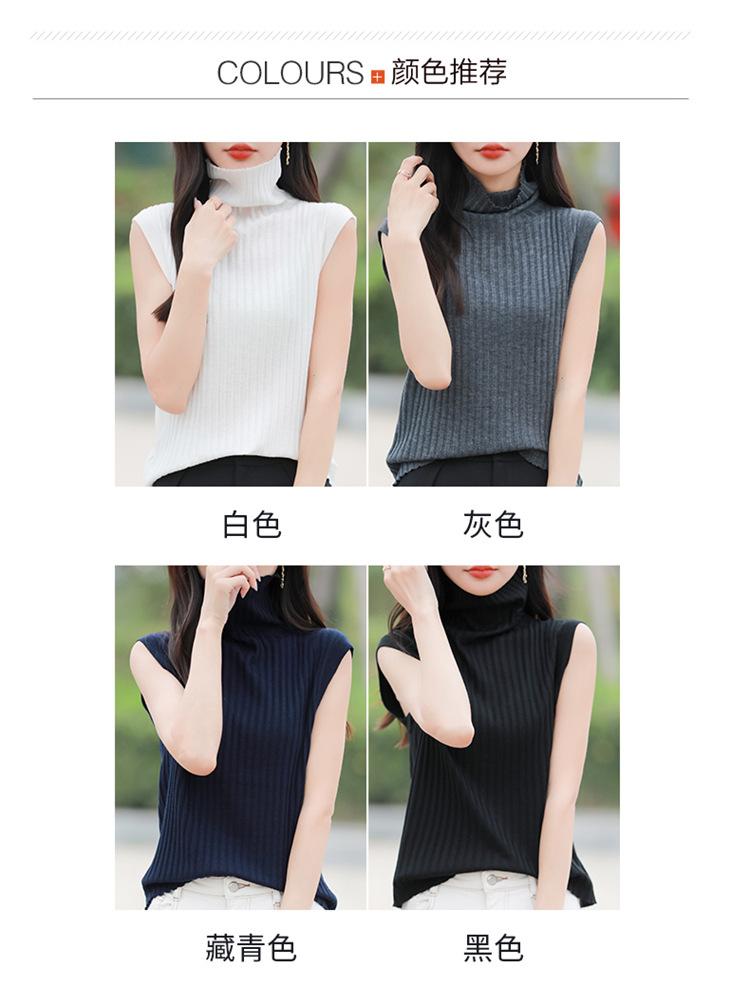 Chaleco de punto de cuello alto para mujer, recién llegado, primavera y otoño, manga sin mangas, cuello alto, parte superior interior, corte entallado sencillo.