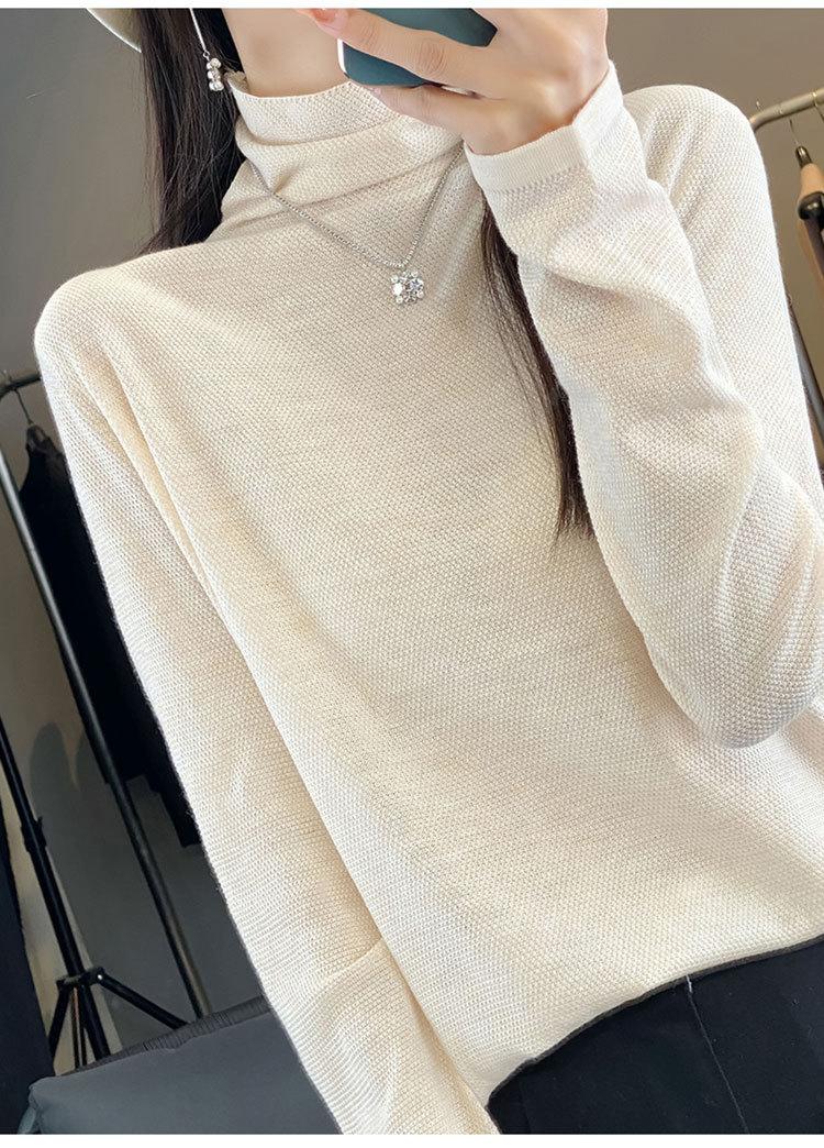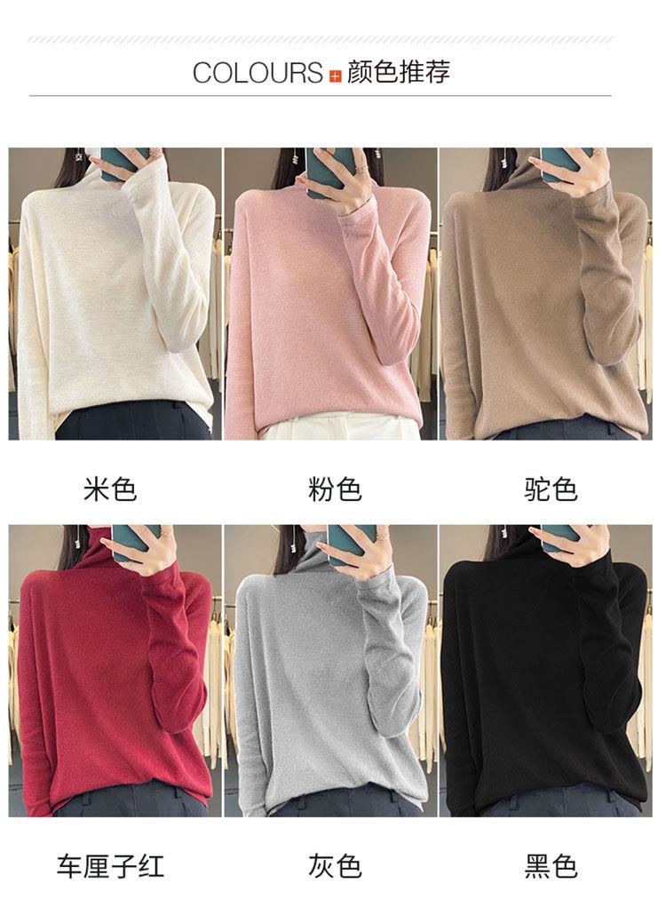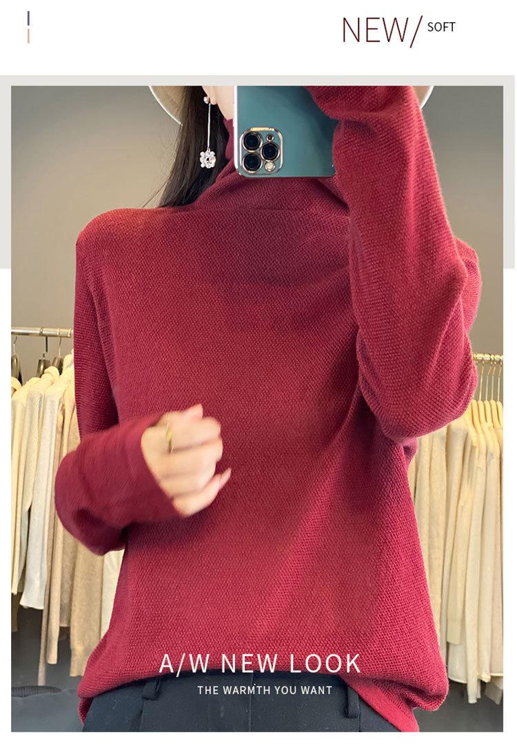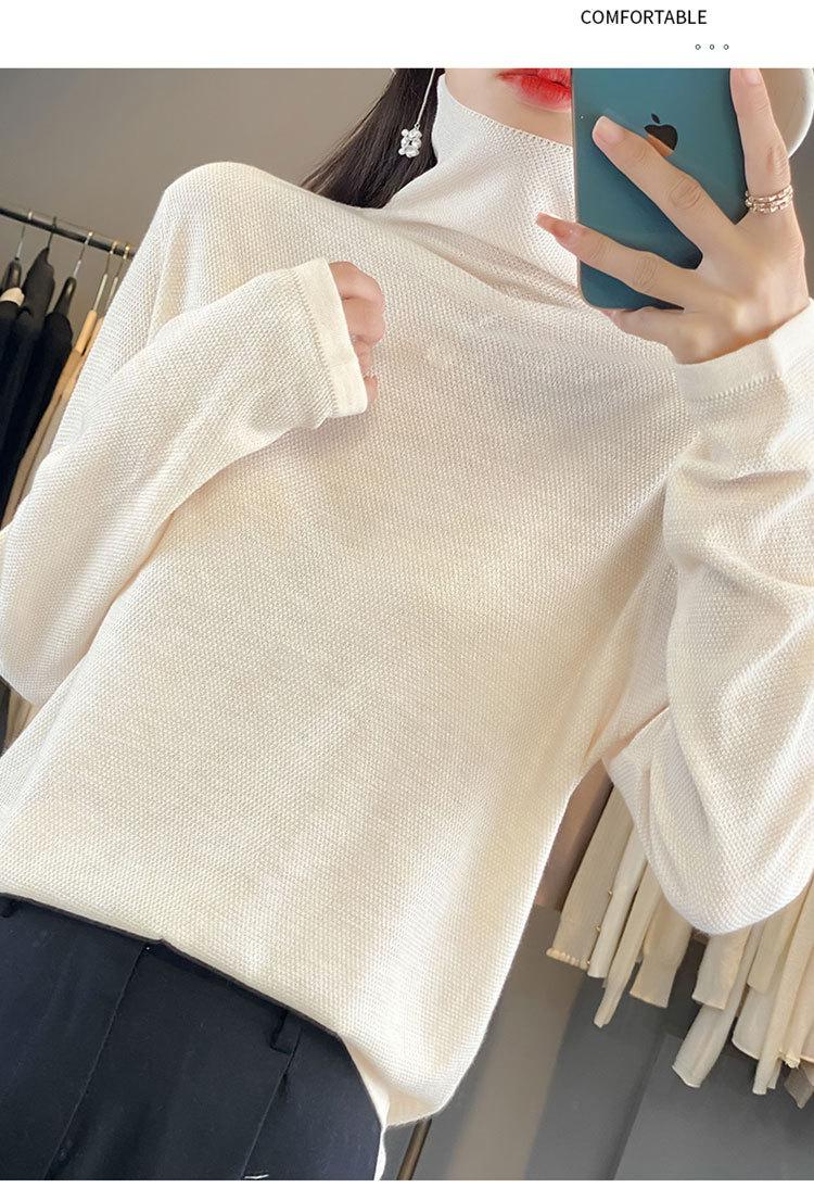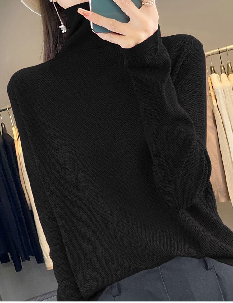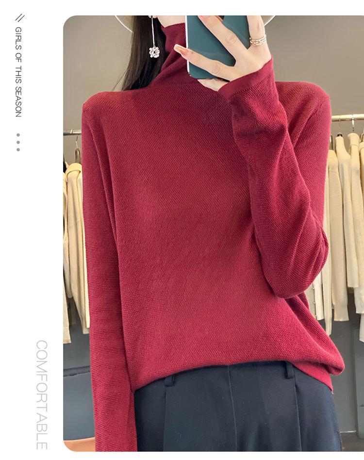 Nuevo Suéter Fino de Cuello Alto Medio de Manga Larga Tejido para Mujer Clásico Versátil Color Puro Ropa Interior