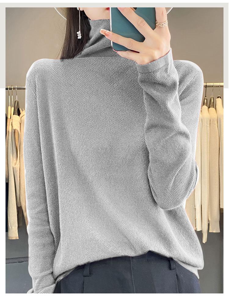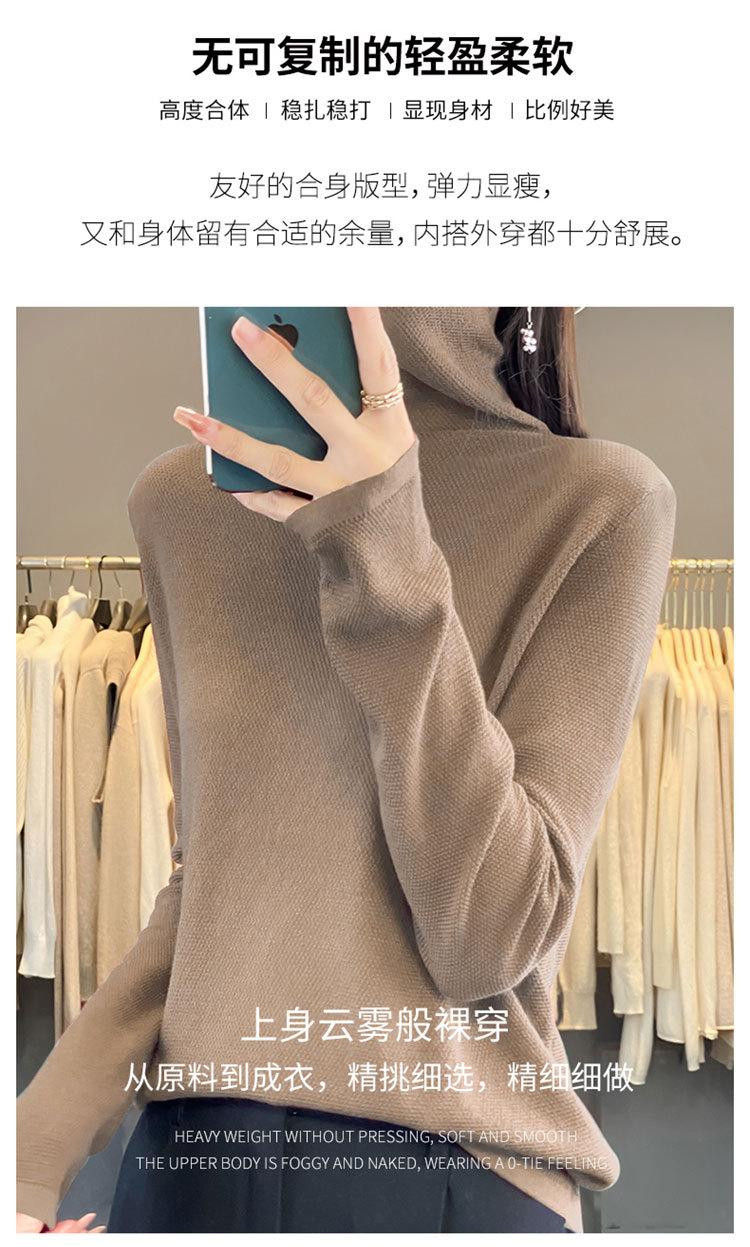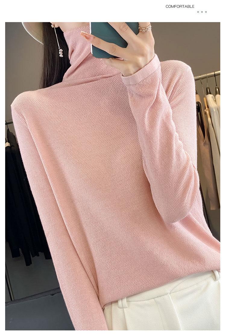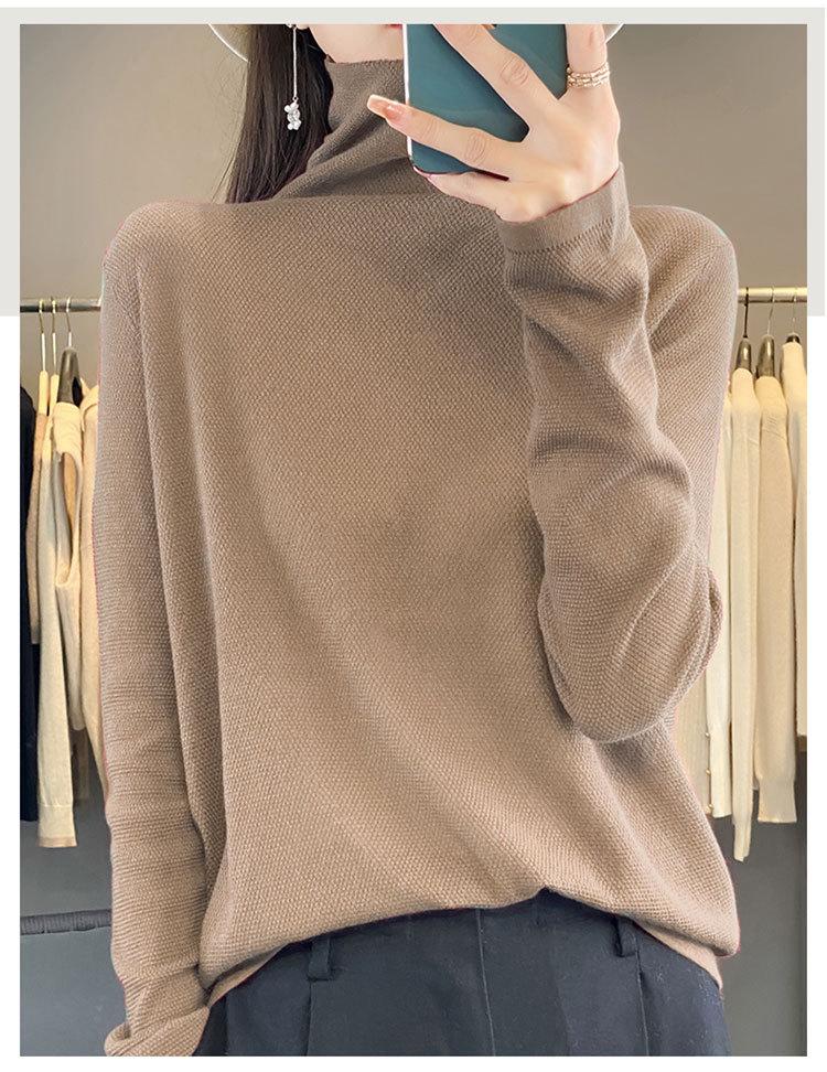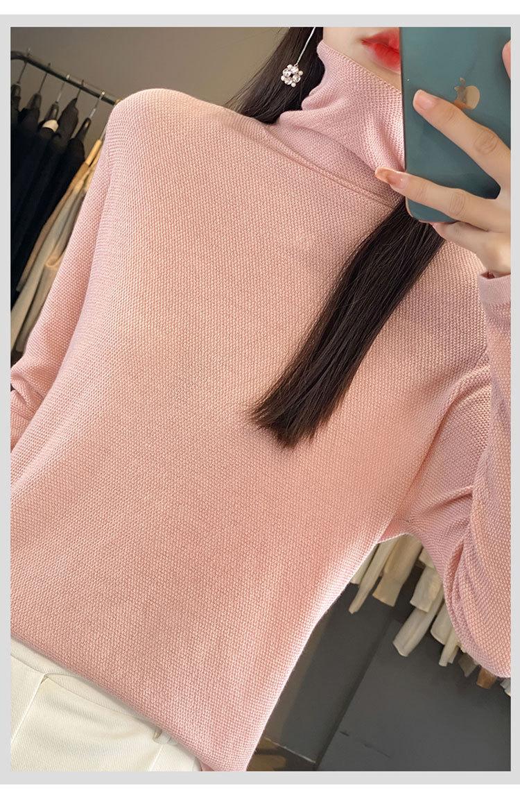 Nuevo Suéter Fino de Cuello Alto Medio de Manga Larga Tejido para Mujer Clásico Versátil Color Puro Ropa Interior