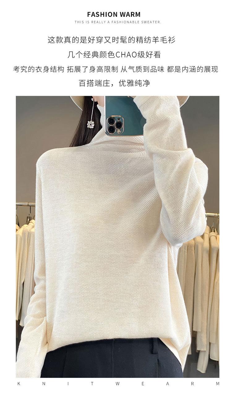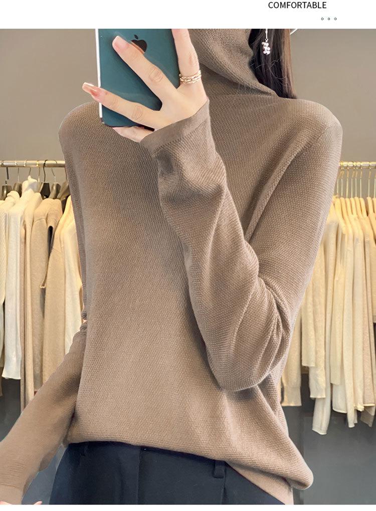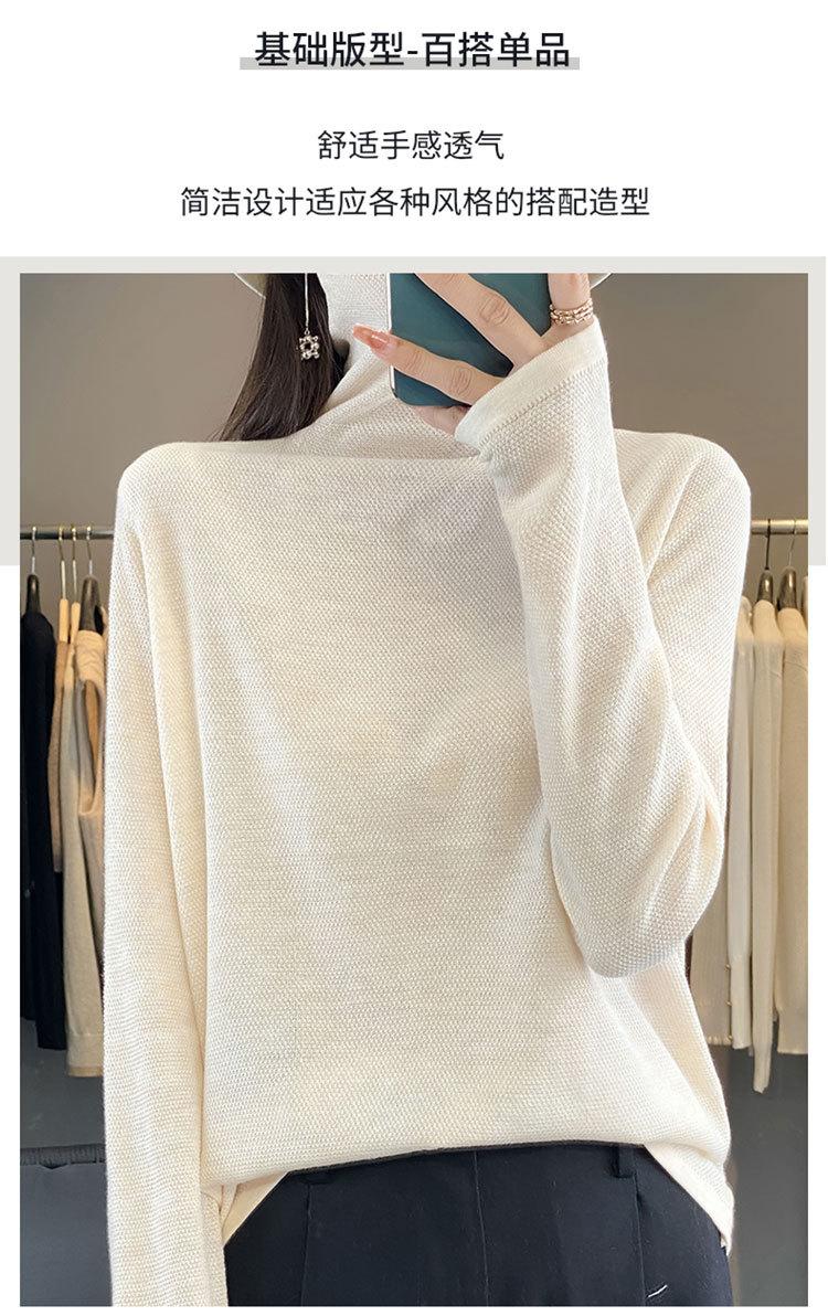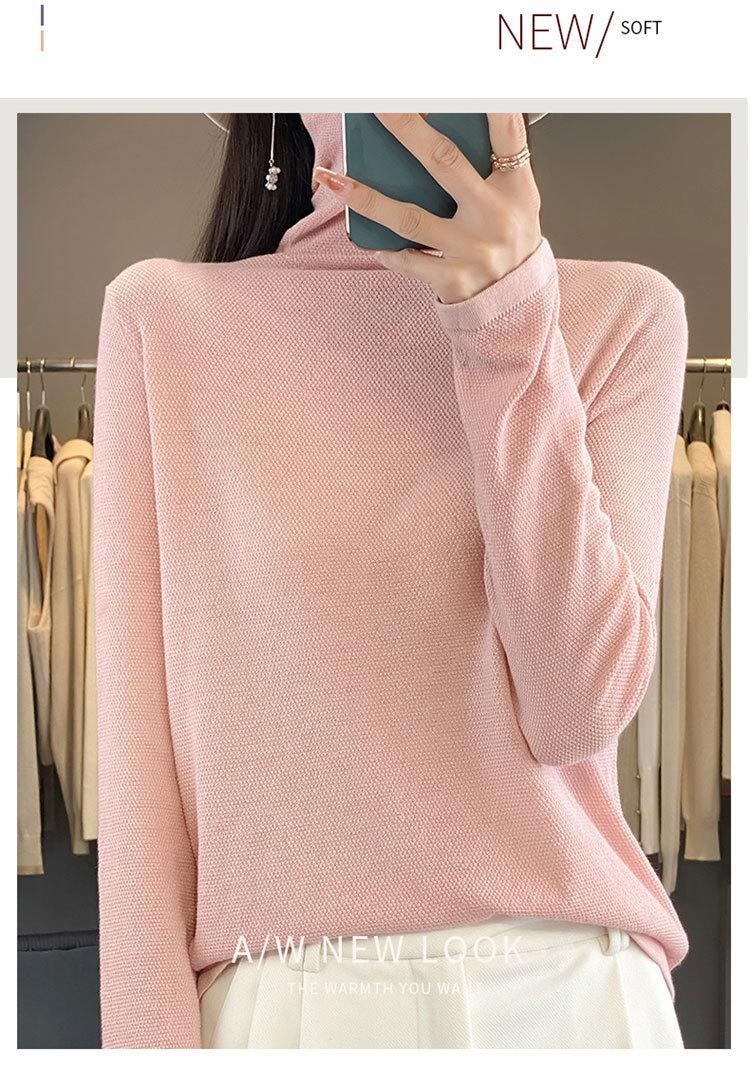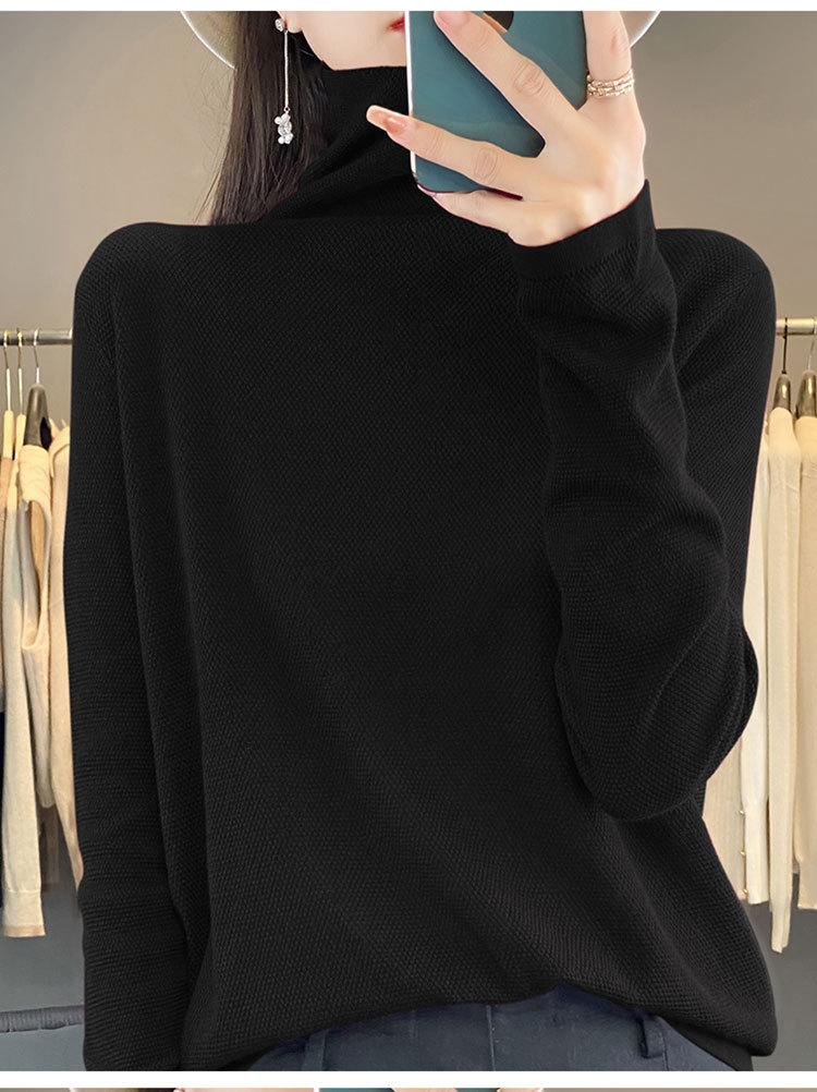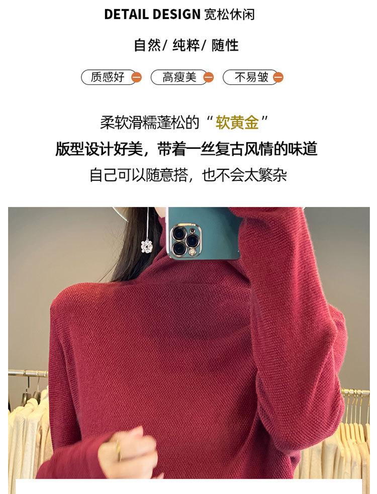 Nuevo Suéter Fino de Cuello Alto Medio de Manga Larga Tejido para Mujer Clásico Versátil Color Puro Ropa Interior