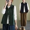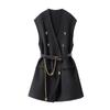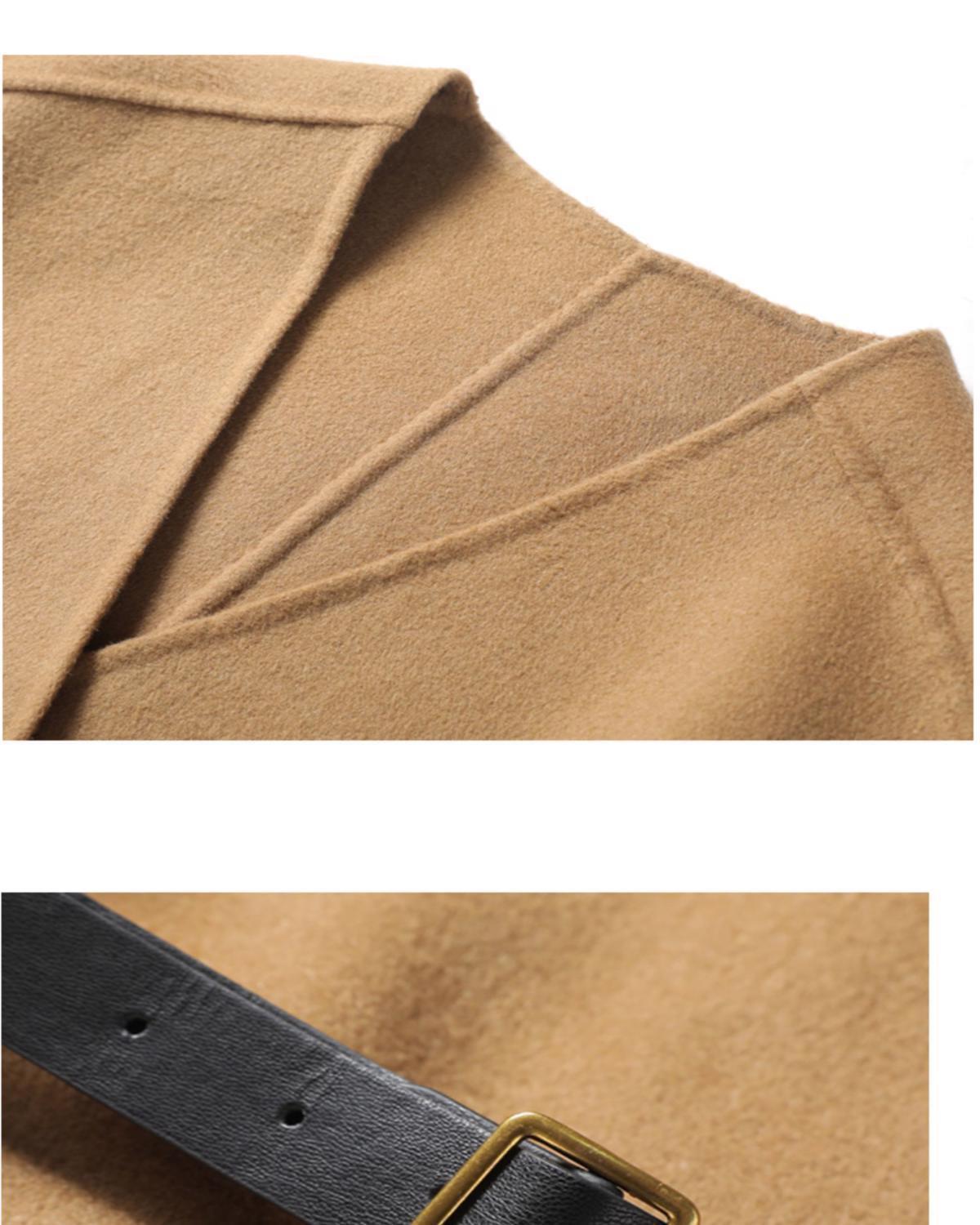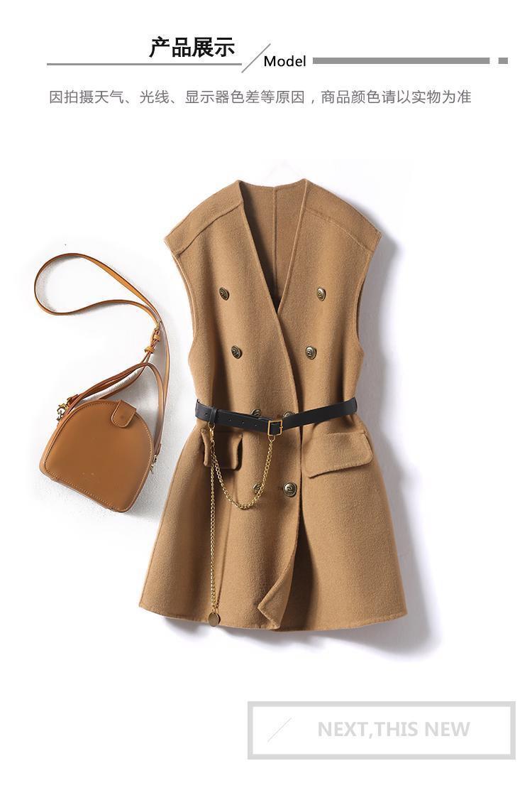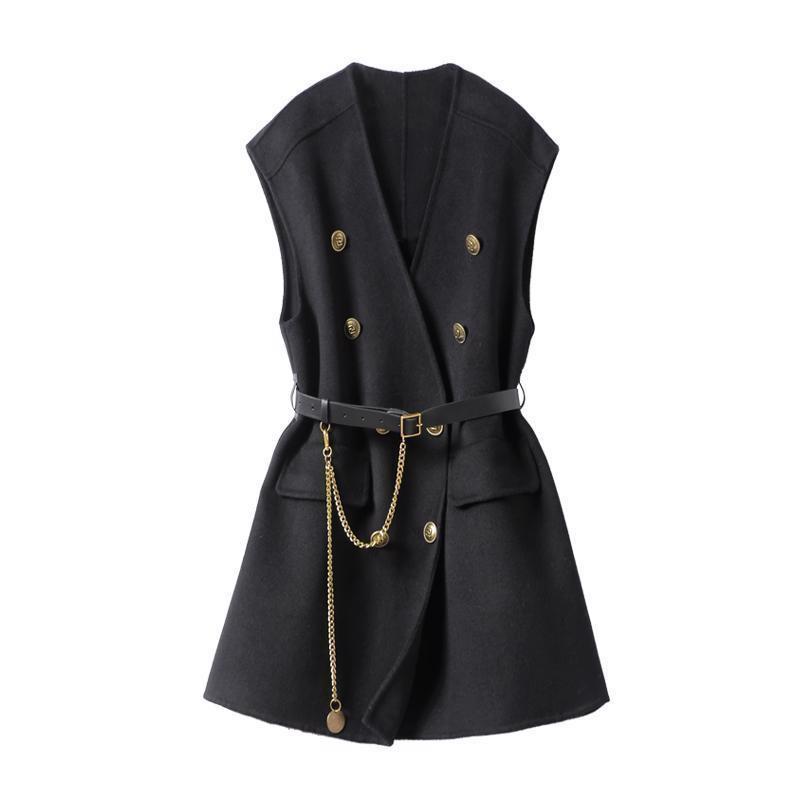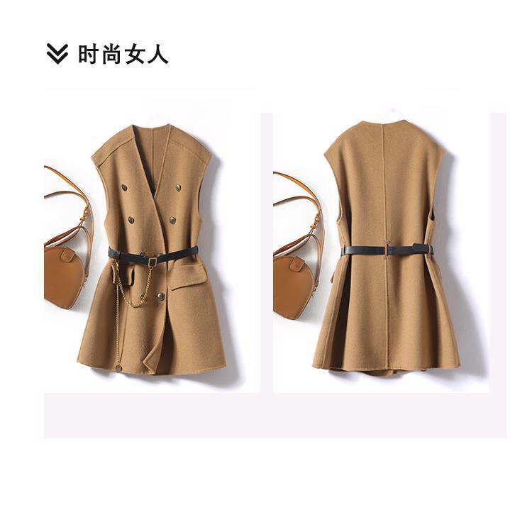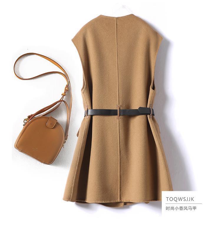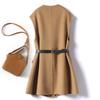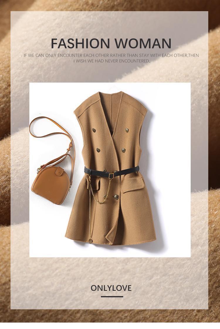 2025 Primavera y Otoño Nuevo Chaleco de Lana para Mujer Largo Medio Cuello en V Sin Mangas Chaleco Cintura