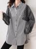 Camisa de manga larga con cuello polo y costuras a rayas para mujer, primavera y otoño 2025, estilo europeo, holgada, elegante y ajustada.