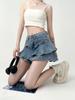 Falda vaquera elástica de verano para mujer, estilo americano, retro, de cintura alta, diseño sexy, falda plisada de corte A, falda corta