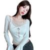 Otoño Nuevo Ajuste Slim Manga Campana Encaje Empalmado Camiseta de Manga Larga Sexy Moda Nicho Sexy Top Ins