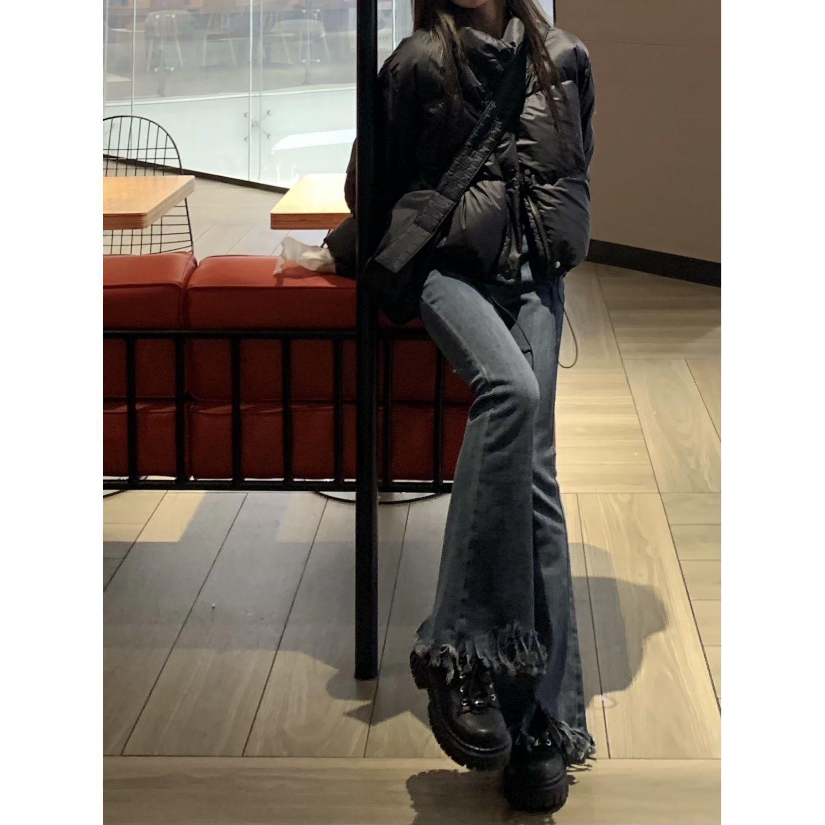 Pantalones vaqueros ajustados con flecos deshilachados de diseño de calle principal estadounidense para mujer, pantalones de herradura adelgazantes sexys de nicho para primavera y otoño