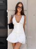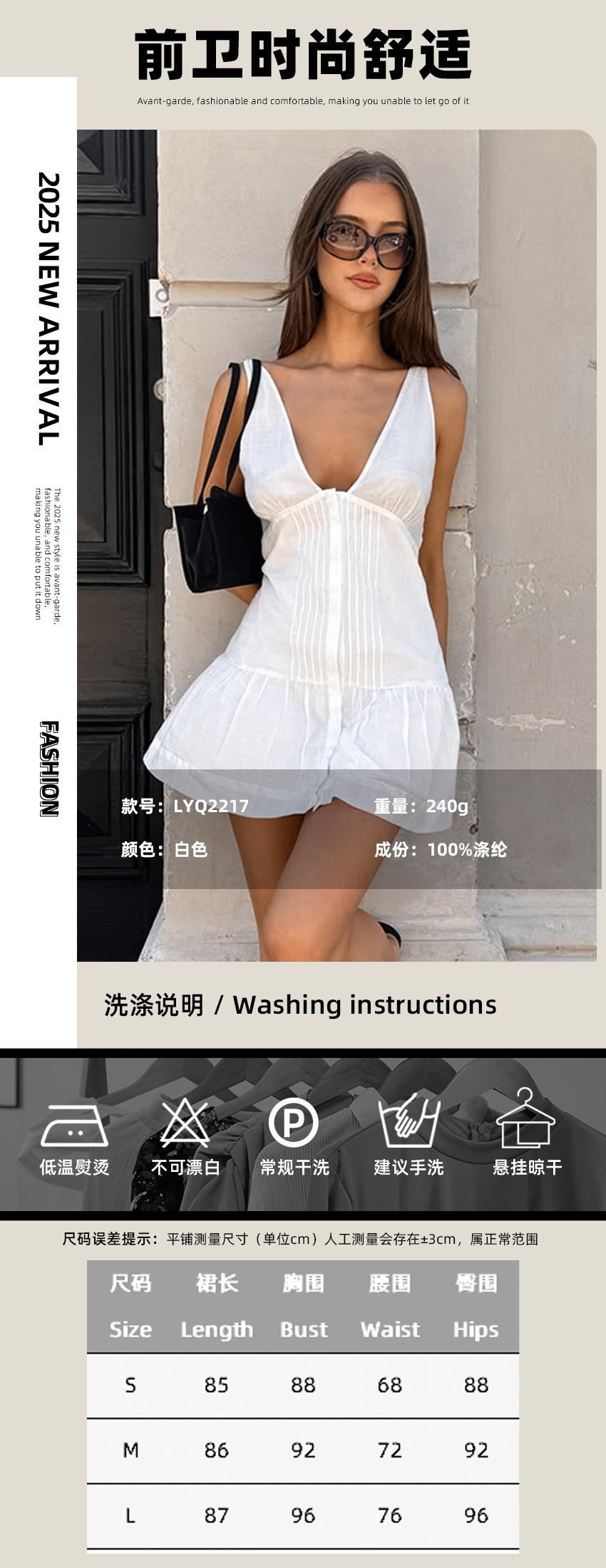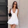 Vestido blanco elegante y sencillo de estilo francés para mujer, moda de comercio exterior de verano 2025, vestido con cuello en V, vestido para tomar el té, ropa de mujer
