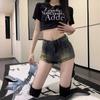 Pantalones cortos vaqueros desgastados y lavados de American Hot Girl para mujer, de verano, pequeños, sexys, versátiles, de cintura alta, adelgazantes, de corte A.
