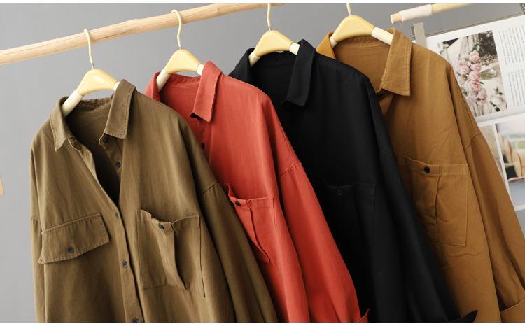 Abrigo Casual para Mujer Holgado Adelgazante Largo Medio Talla Grande Top Combinable Solapa Manga Larga Camisa de Moda