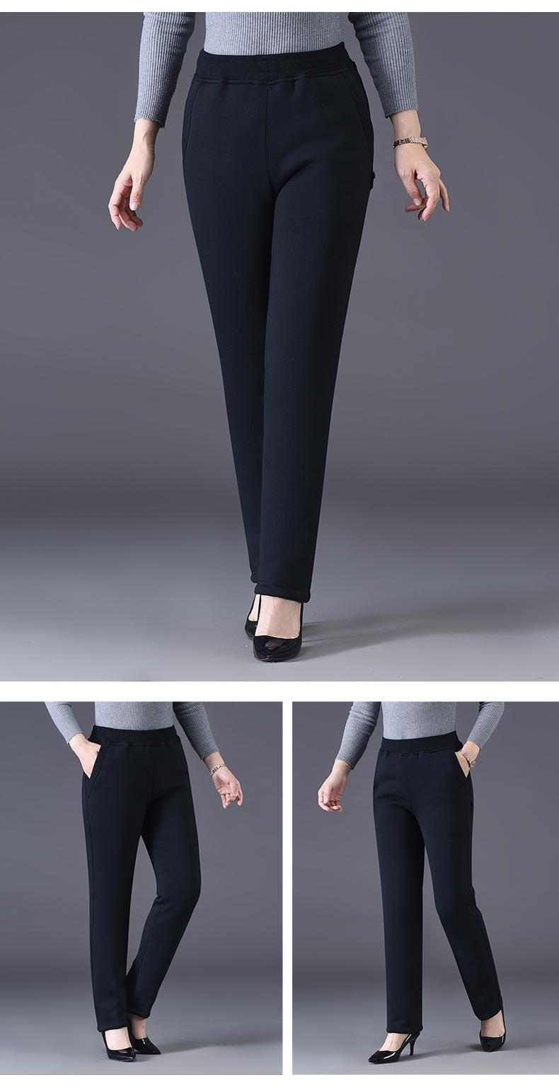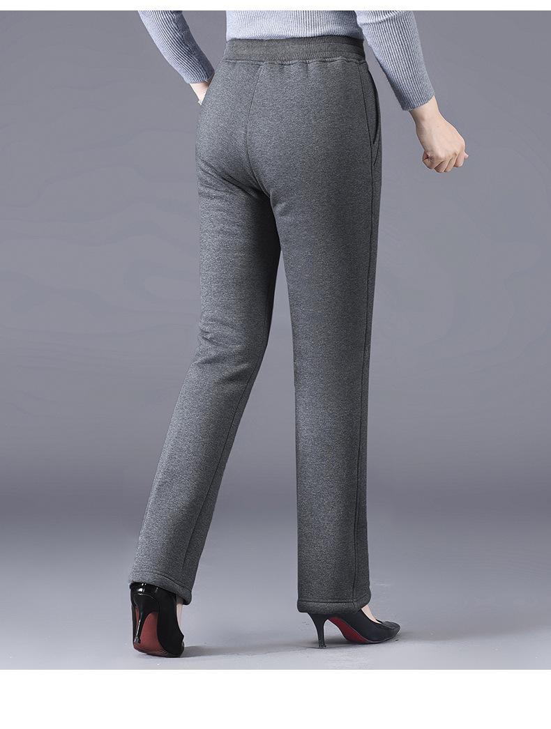 Pantalones deportivos sencillos de color liso para mujer, pantalones cálidos con forro polar de invierno, pantalones adelgazantes gruesos y recortados de talla grande.
