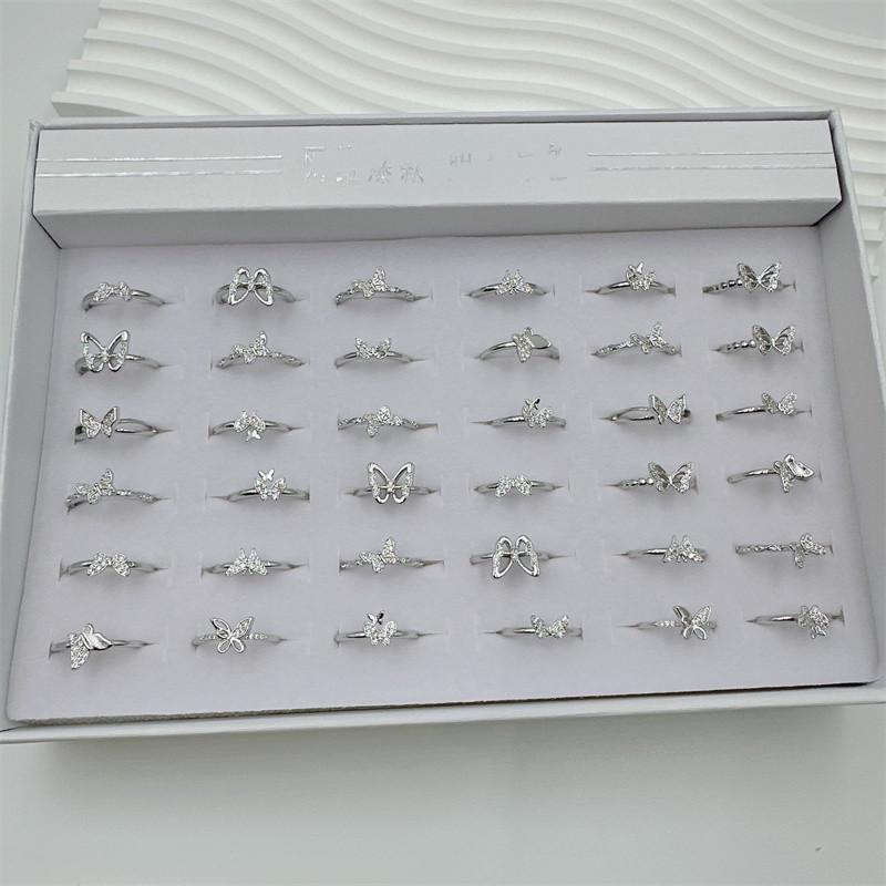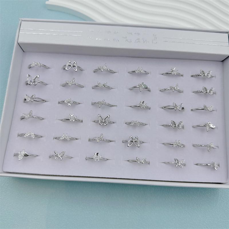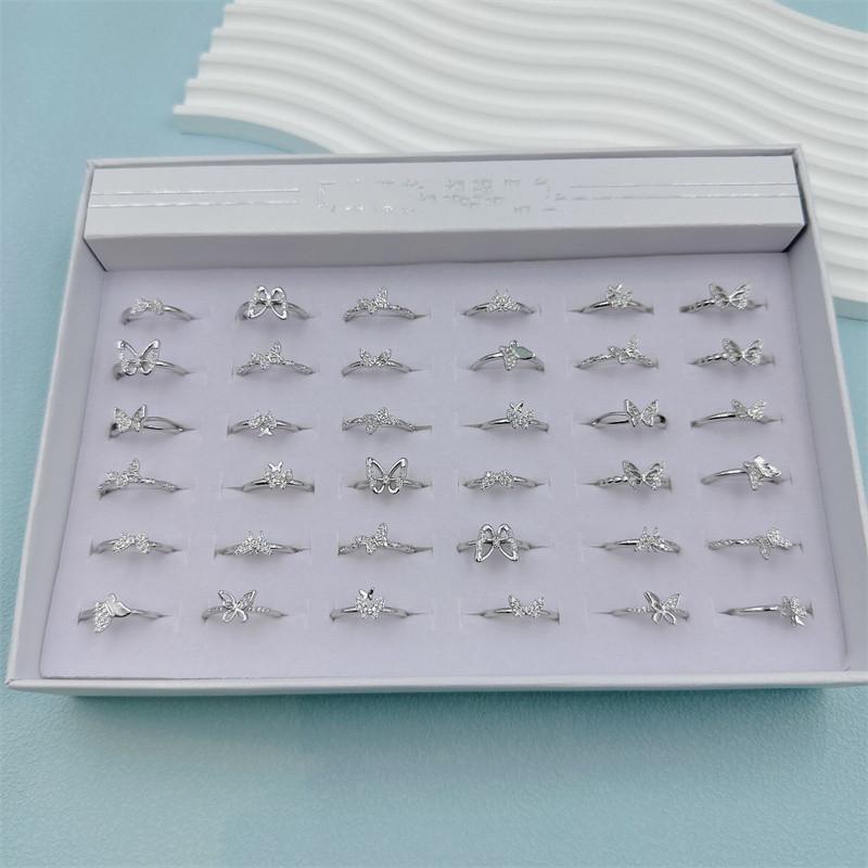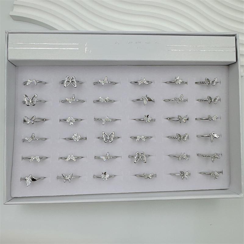 Este producto contiene 36 anillos en una caja, con estilos aleatorios