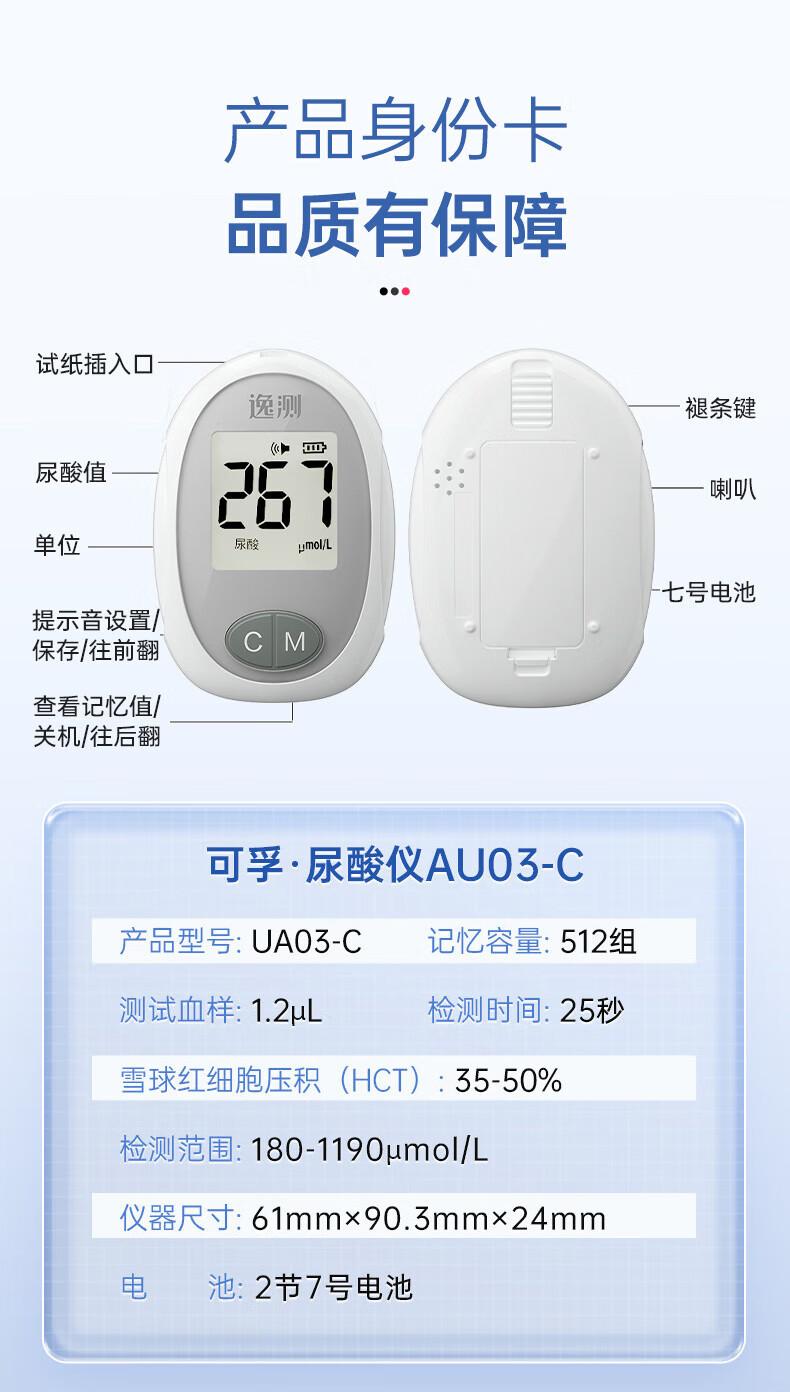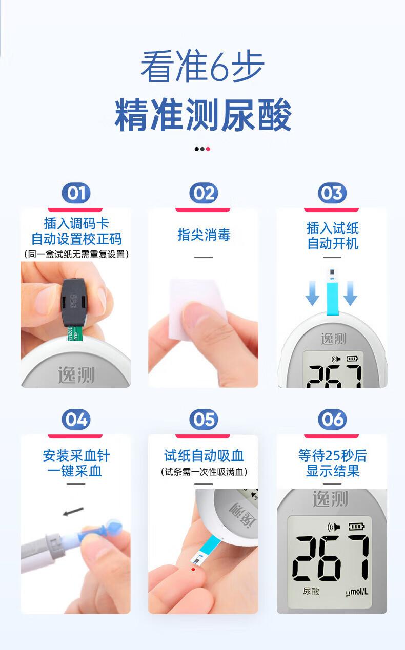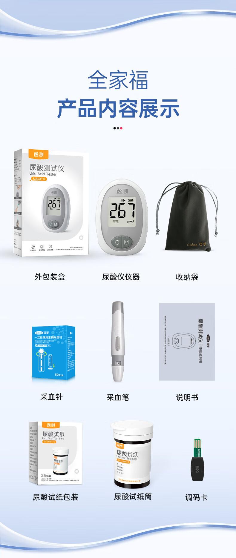 Uric acid meter + 25 test strips + 25 needles of cotton