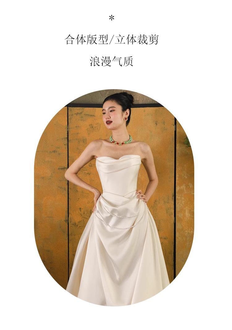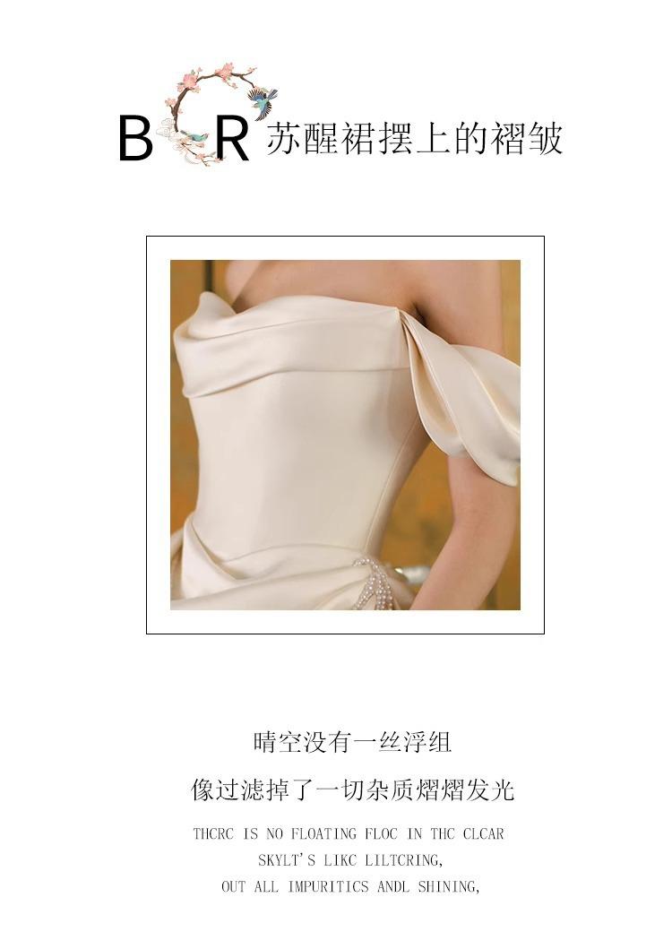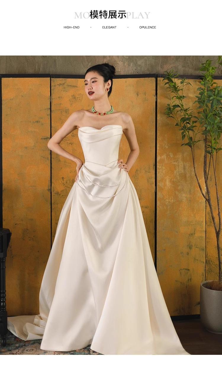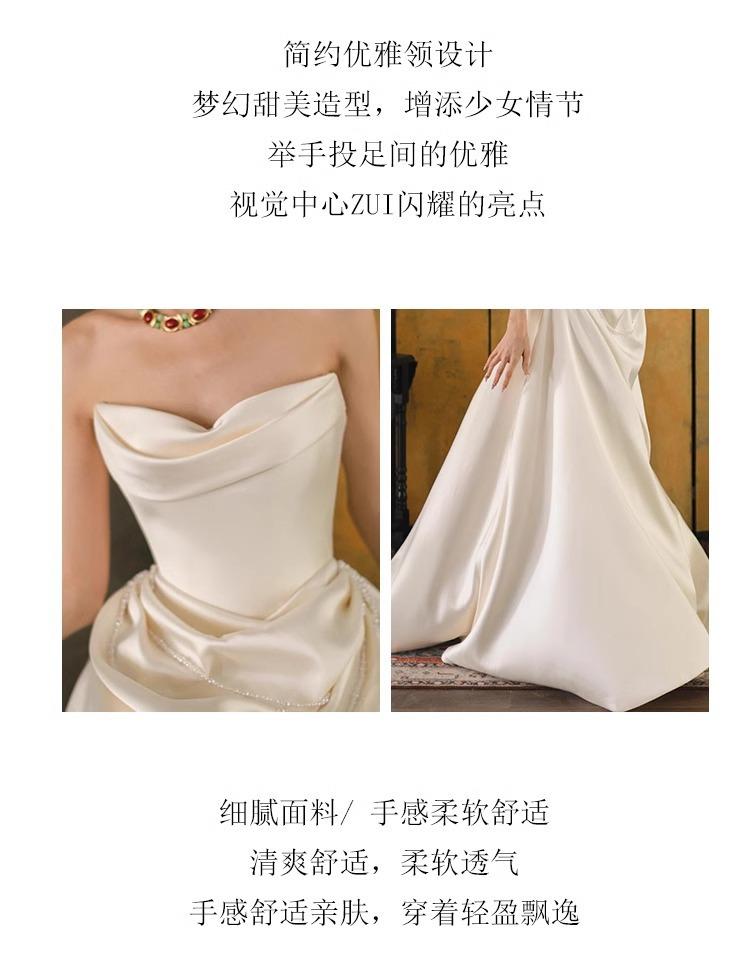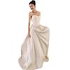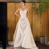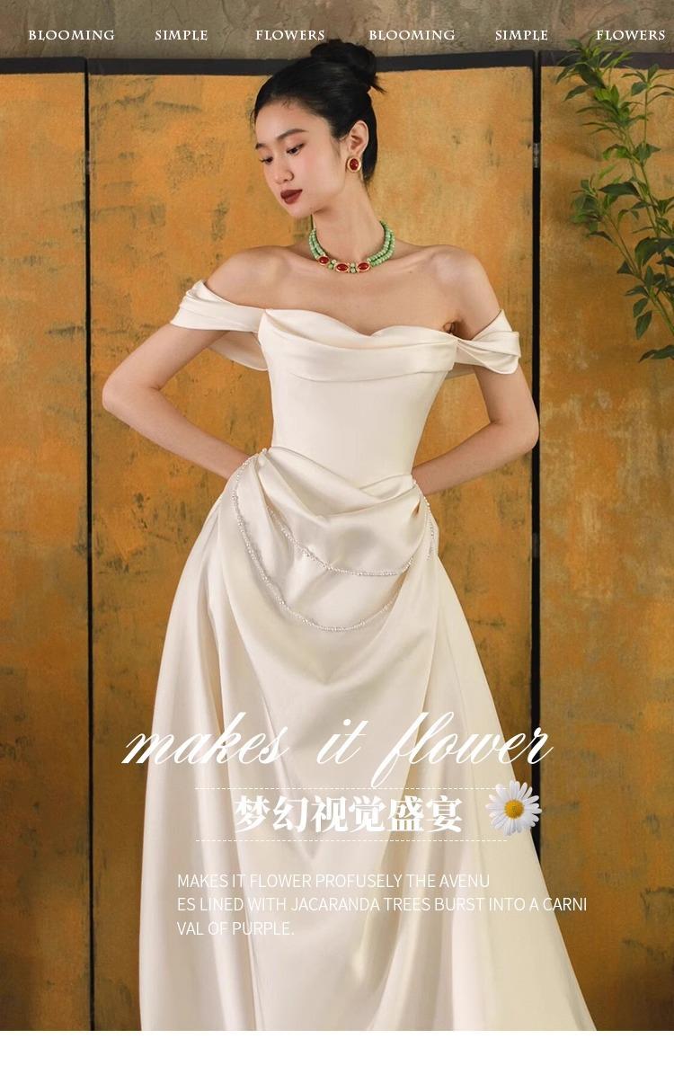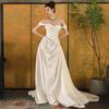 Vestido de Novia Francés con Hombros Descubiertos Ligero Hilo Sencillo y Discreto para la Novia Vestido Blanco de Satén Elegante de Alta Gama con Cola Pequeña