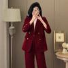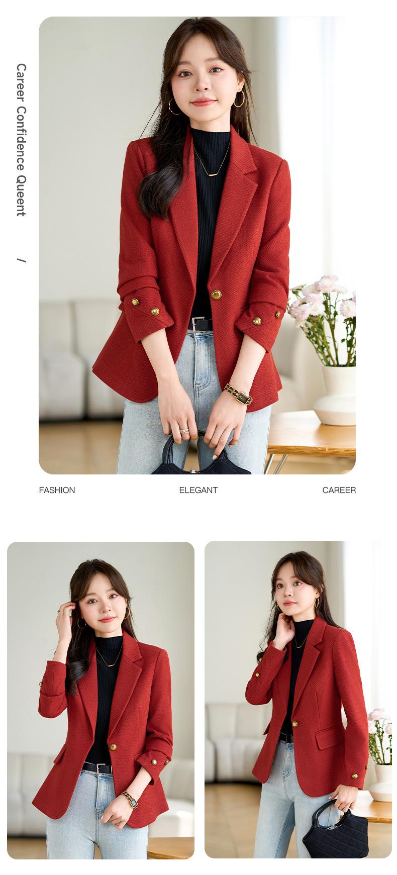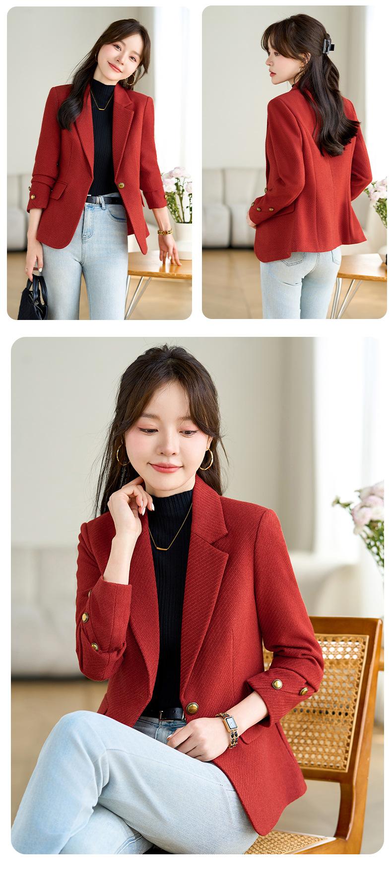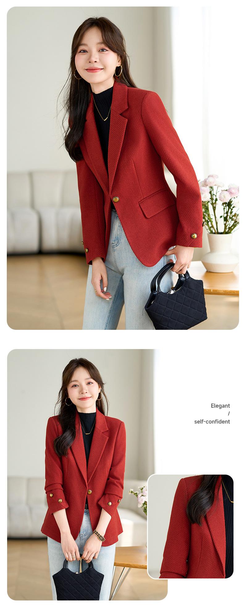 Rojo 2024 Primavera Otoño e Invierno Nuevo Estilo Estilo Fragante Chaqueta de Cuello de Traje Pequeño de Dama Celebridad Top Elegante de Moda Marea