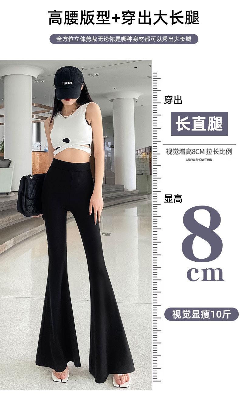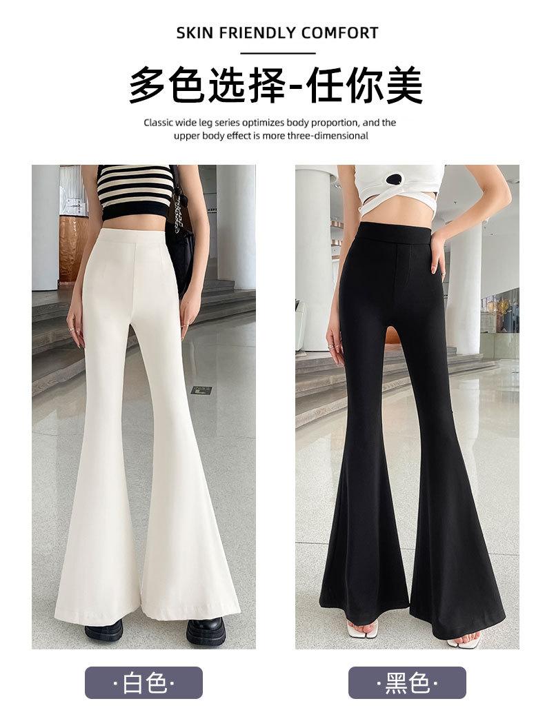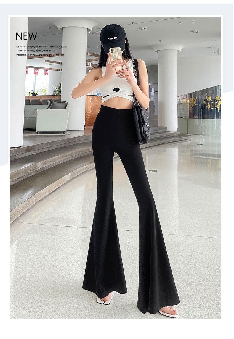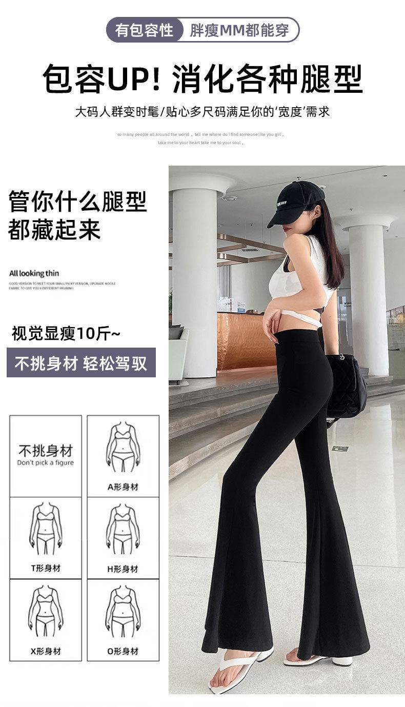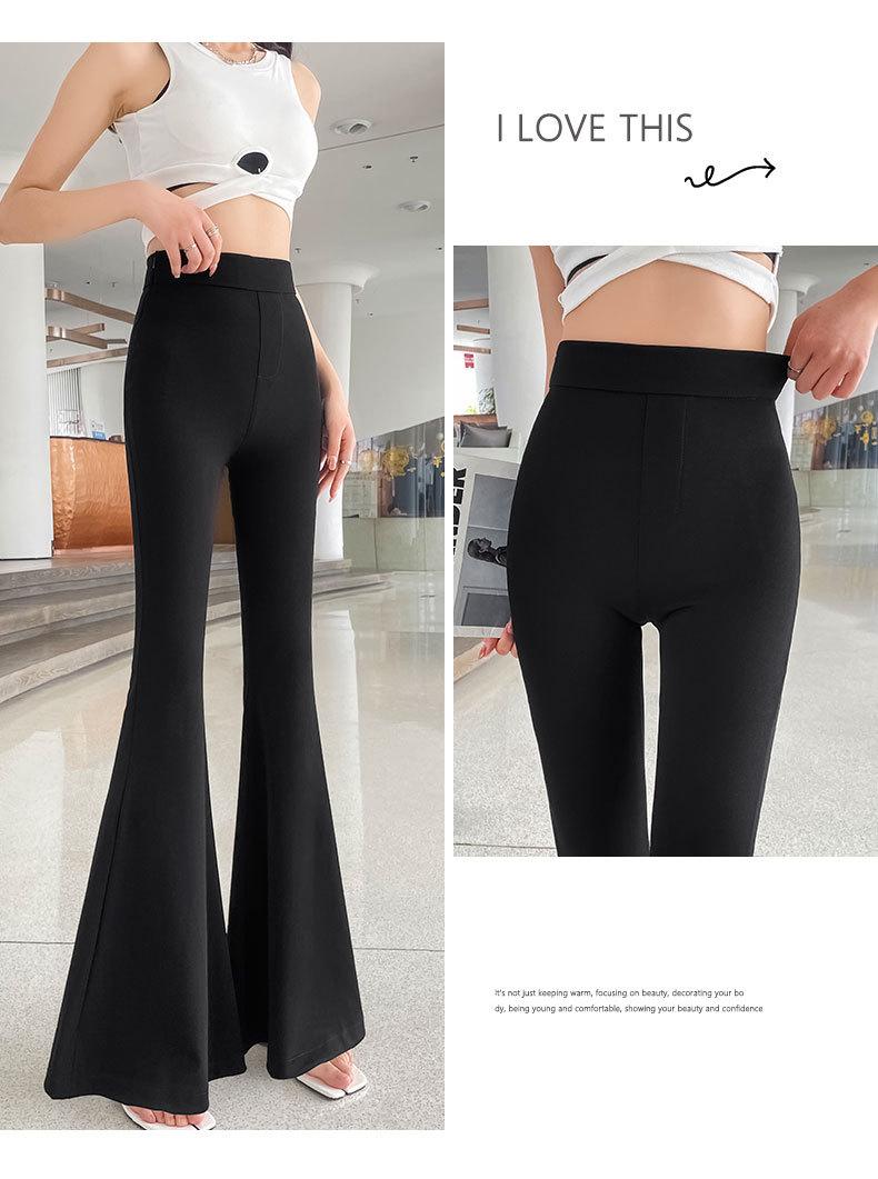 En Stock Otoño/Verano Pantalones Acampanados de Talla Grande para Mujer, Pantalones de Verano con Cintura Alta Elástica, Pantalones Acampanados Negros Adelgazantes