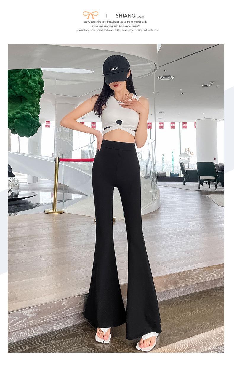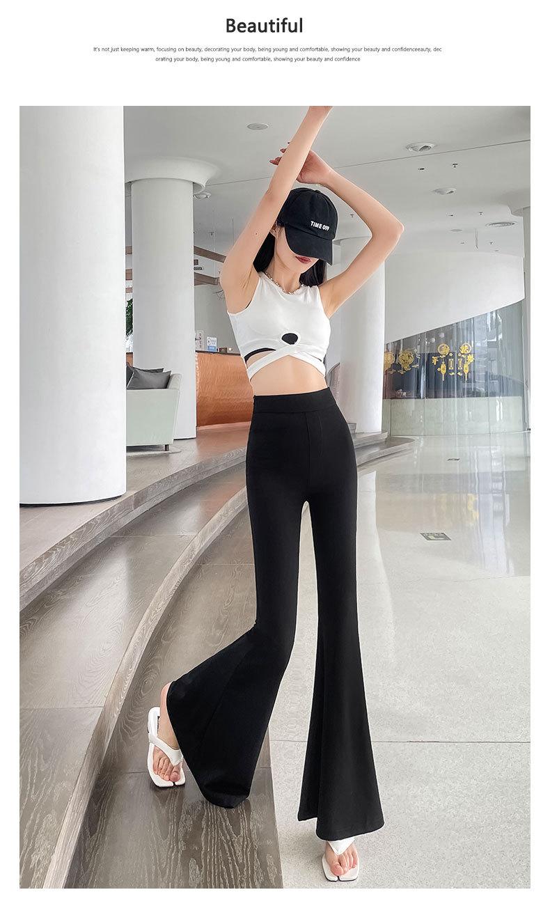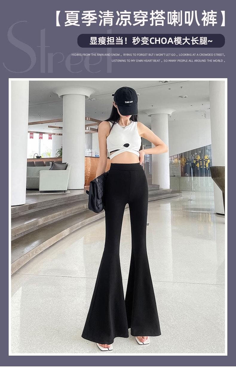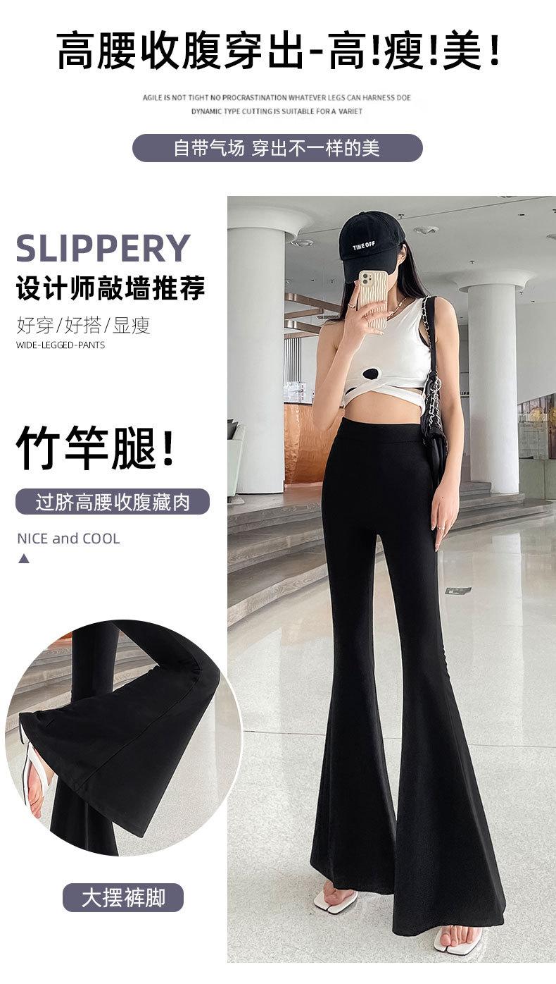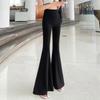En Stock Otoño/Verano Pantalones Acampanados de Talla Grande para Mujer, Pantalones de Verano con Cintura Alta Elástica, Pantalones Acampanados Negros Adelgazantes