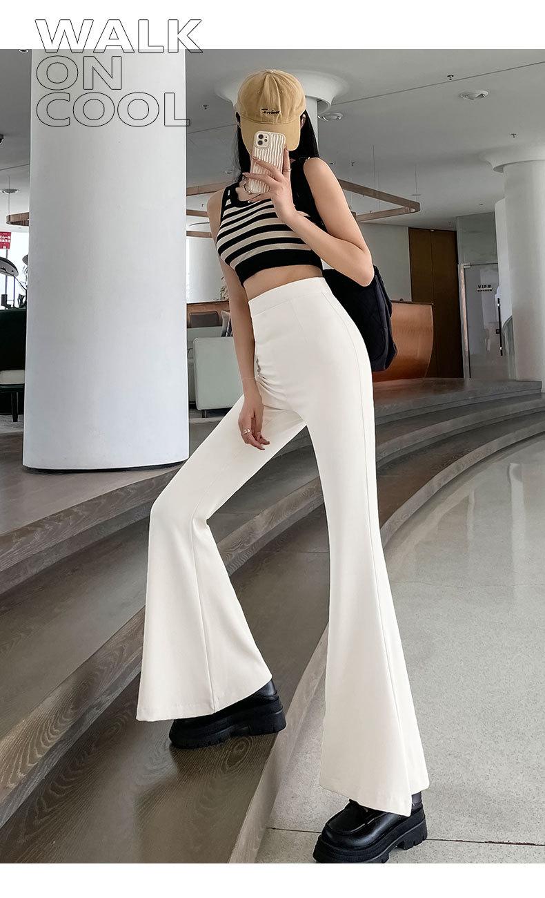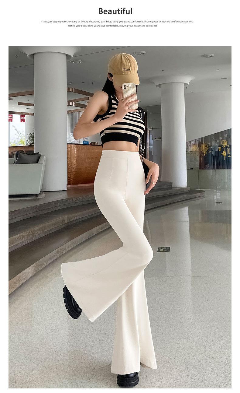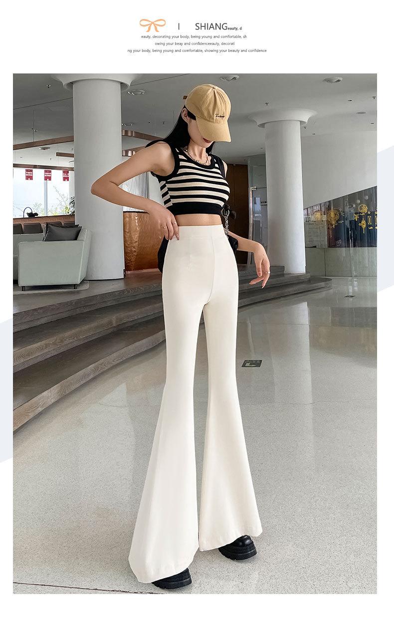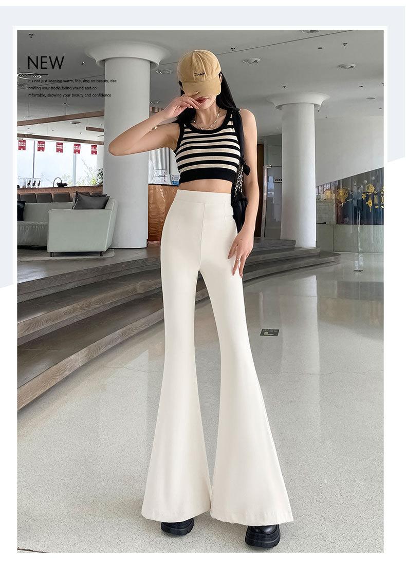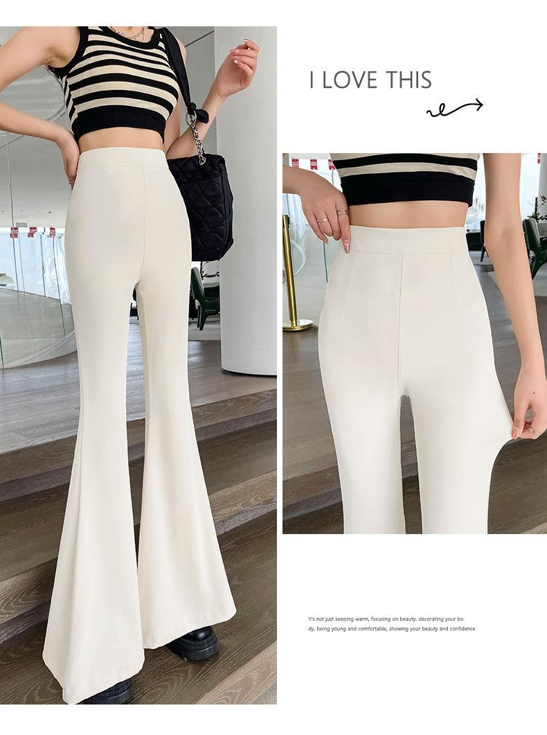 En Stock Otoño/Verano Pantalones Acampanados de Talla Grande para Mujer, Pantalones de Verano con Cintura Alta Elástica, Pantalones Acampanados Negros Adelgazantes