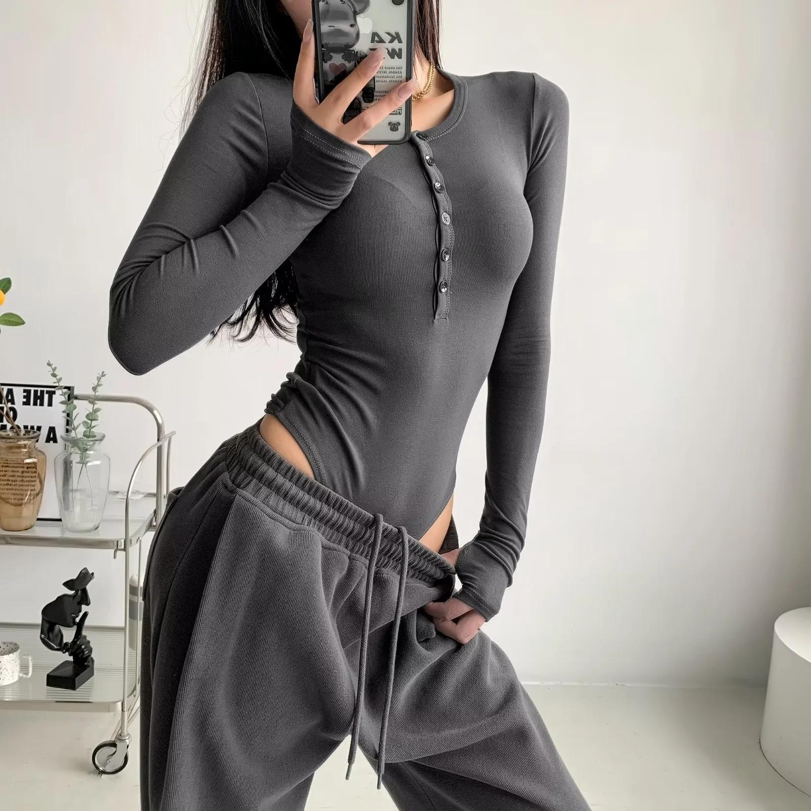 Comercio exterior transfronterizo Europa y Estados Unidos chica caliente mono sexy puro quiero 2023 nuevo cuello redondo fondo ajustado chaqueta de un solo cuerpo