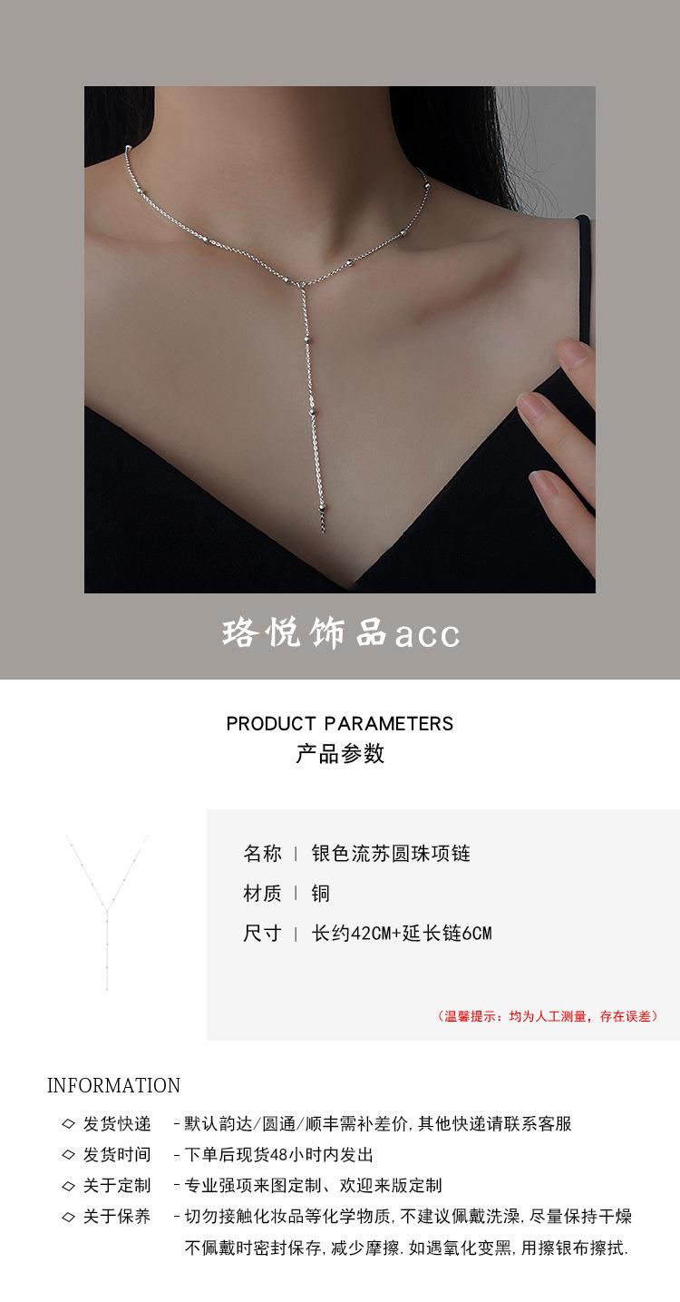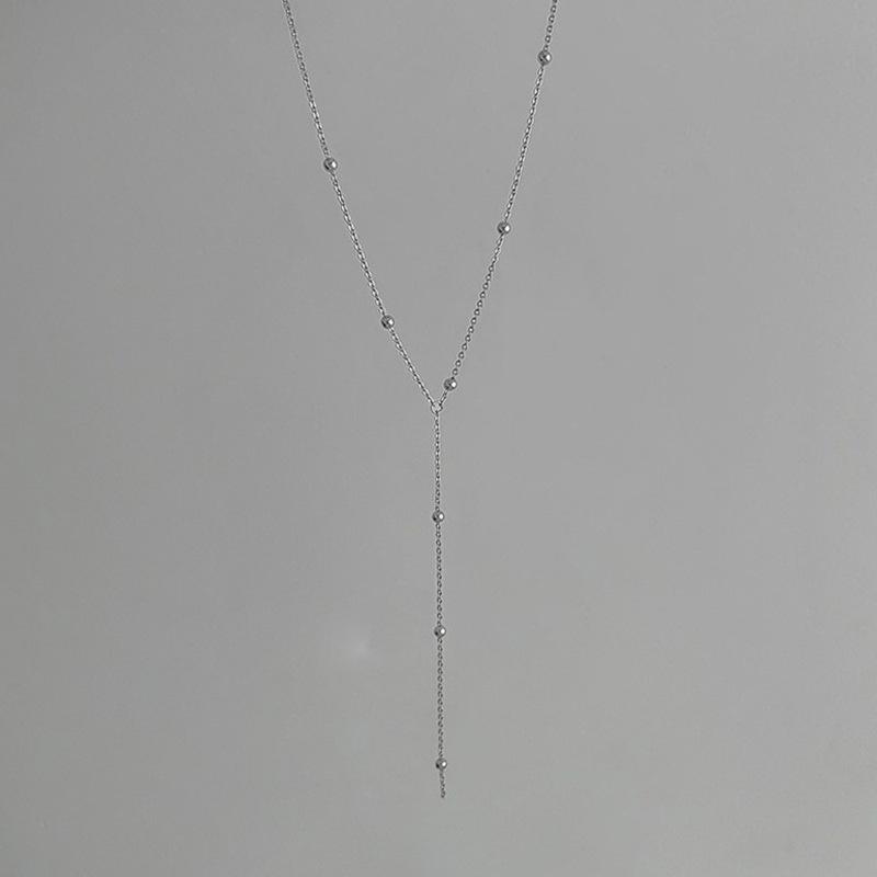 Silver tassel round bead necklace