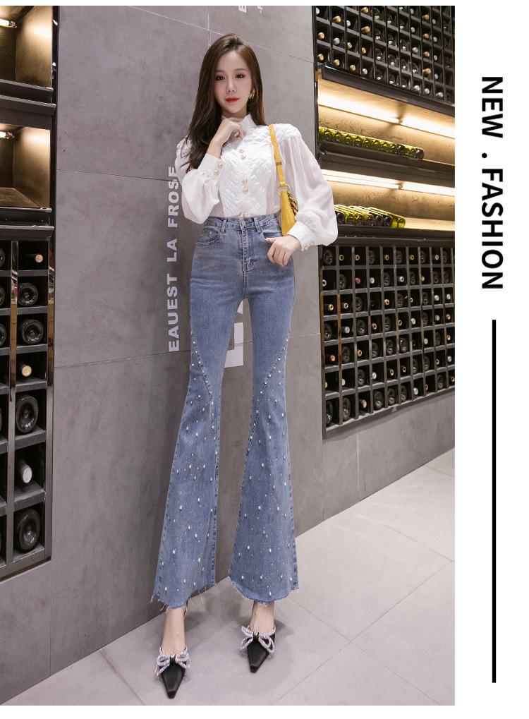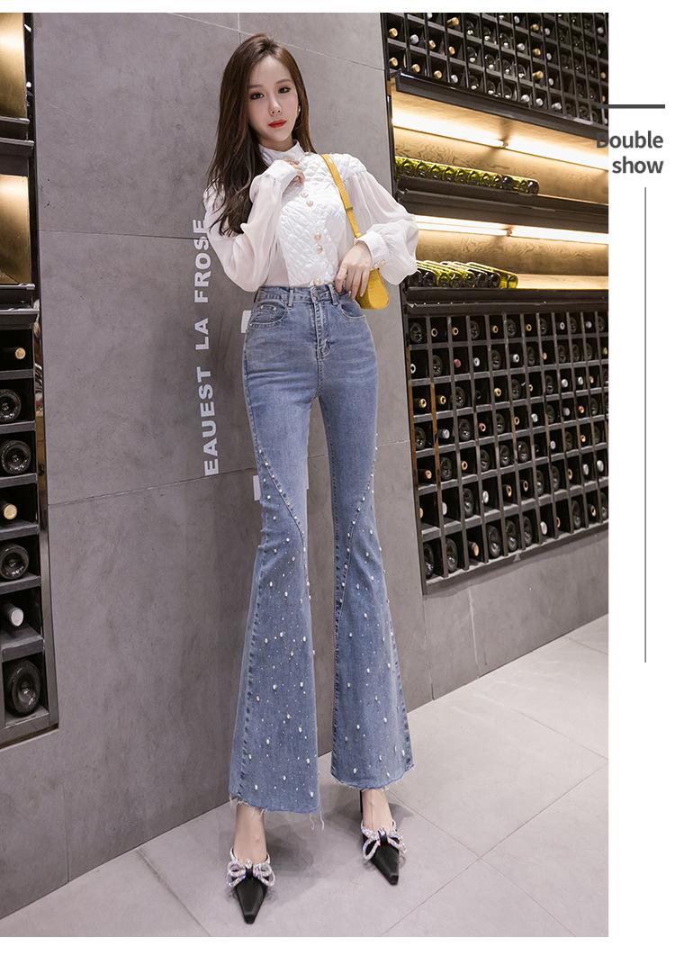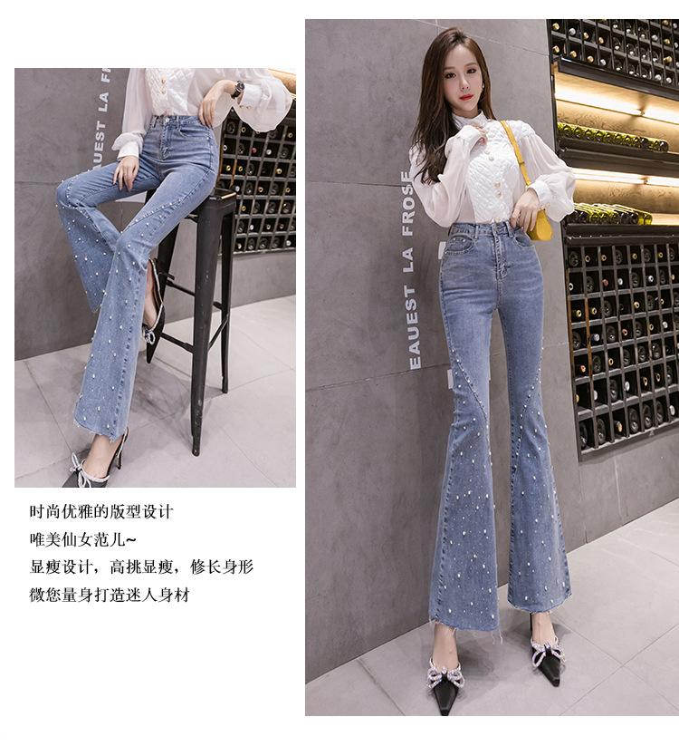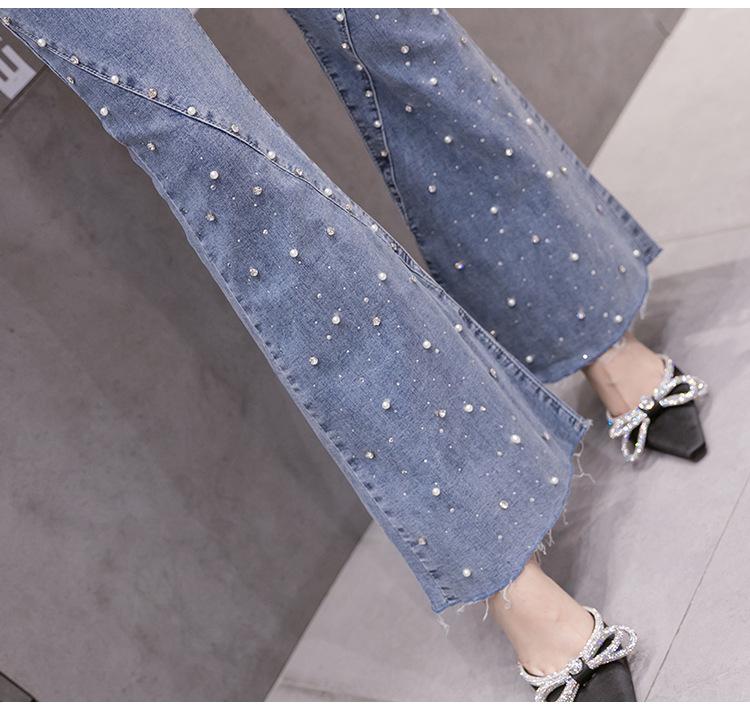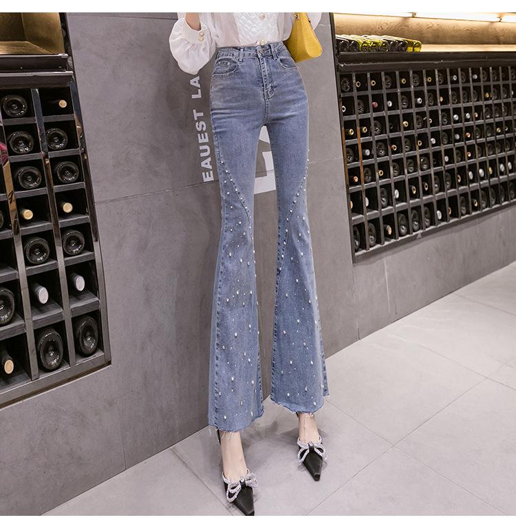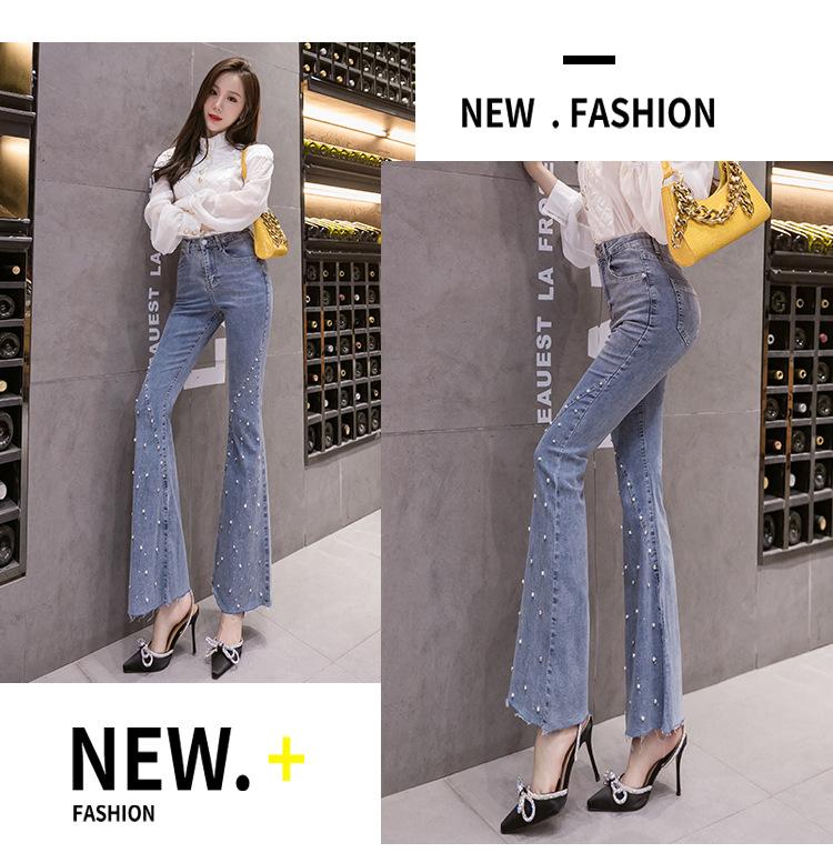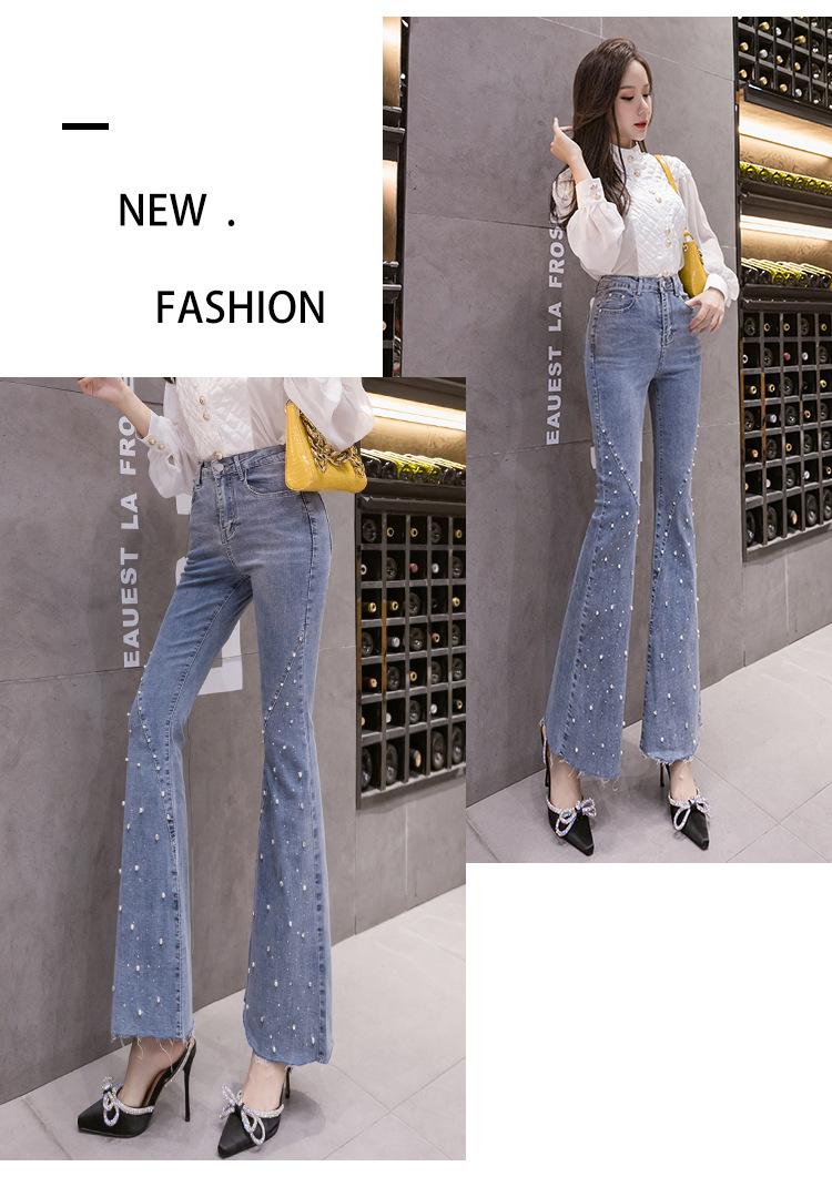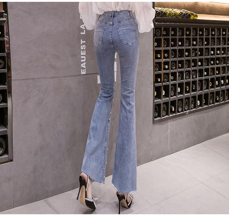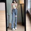 Pantalones acampanados de cintura alta para mujer, vaqueros ajustados, adelgazantes, pantalones de microlaga para mujer, pantalones finos de pierna ancha de verano