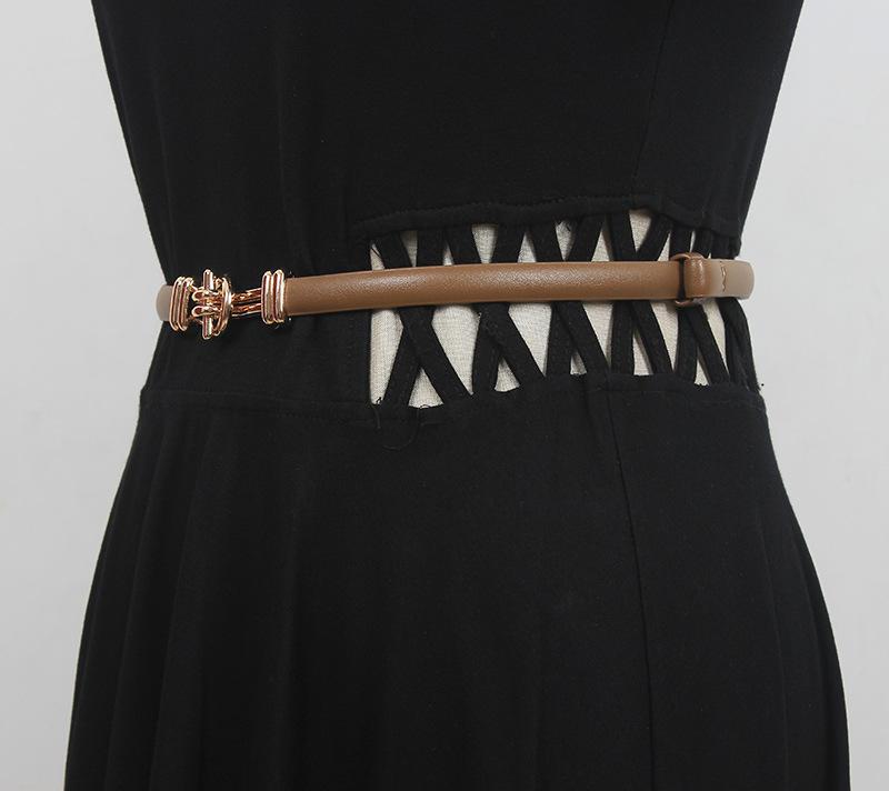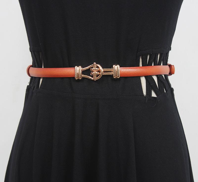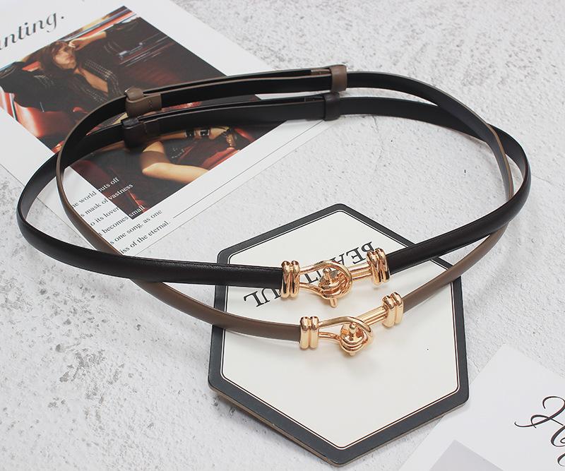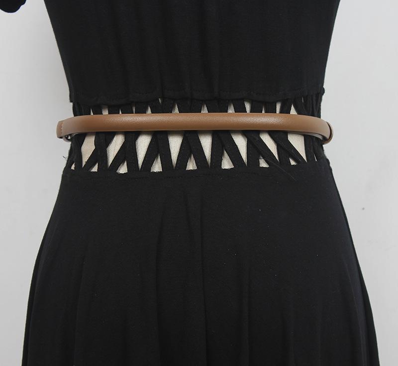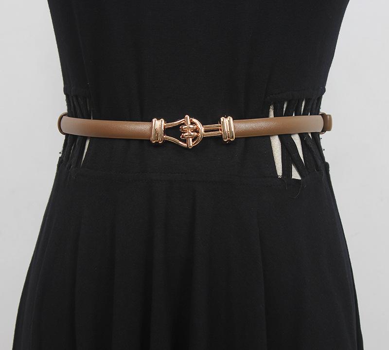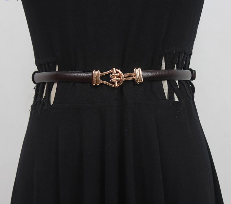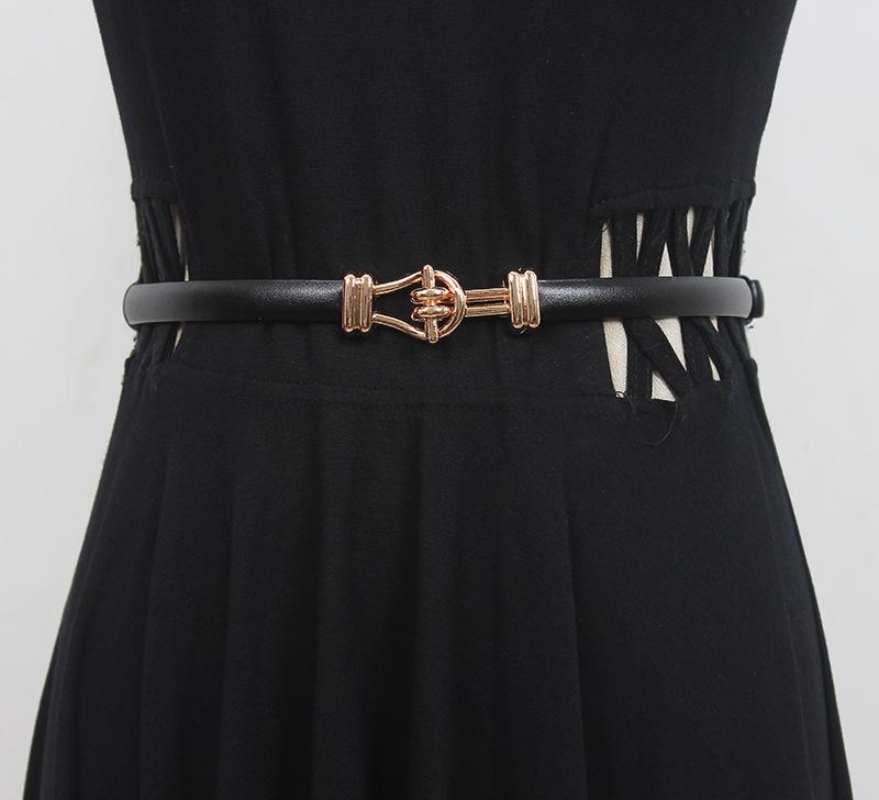 Cinturón elegante para mujer, decorativo, para camisa de vestir, sencillo, combinable, estilo ins, cinturón de cuero con sello en la cintura, negro