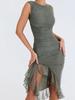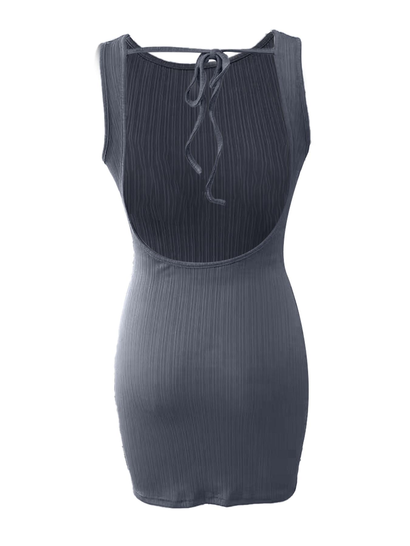 Vestido sexy de verano europeo y americano de Amazon, de color liso, con cuello redondo, a rayas, sin espalda, sin mangas y con cordones, novedad de 2025