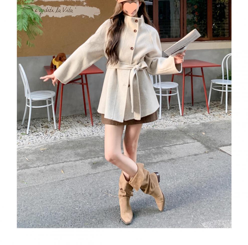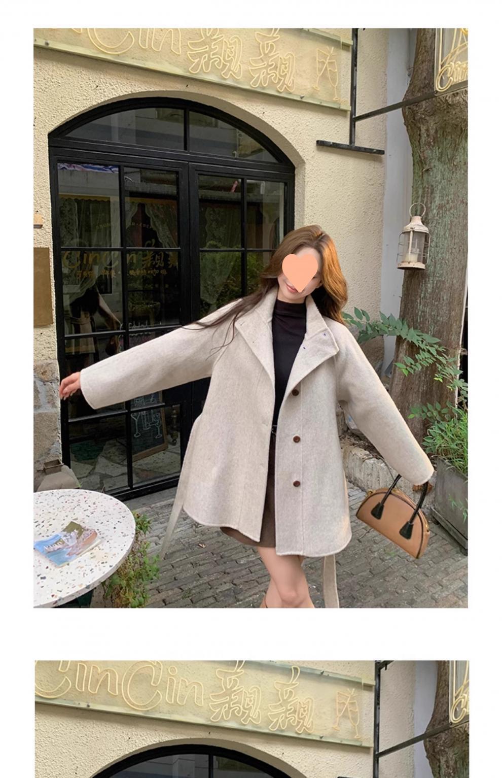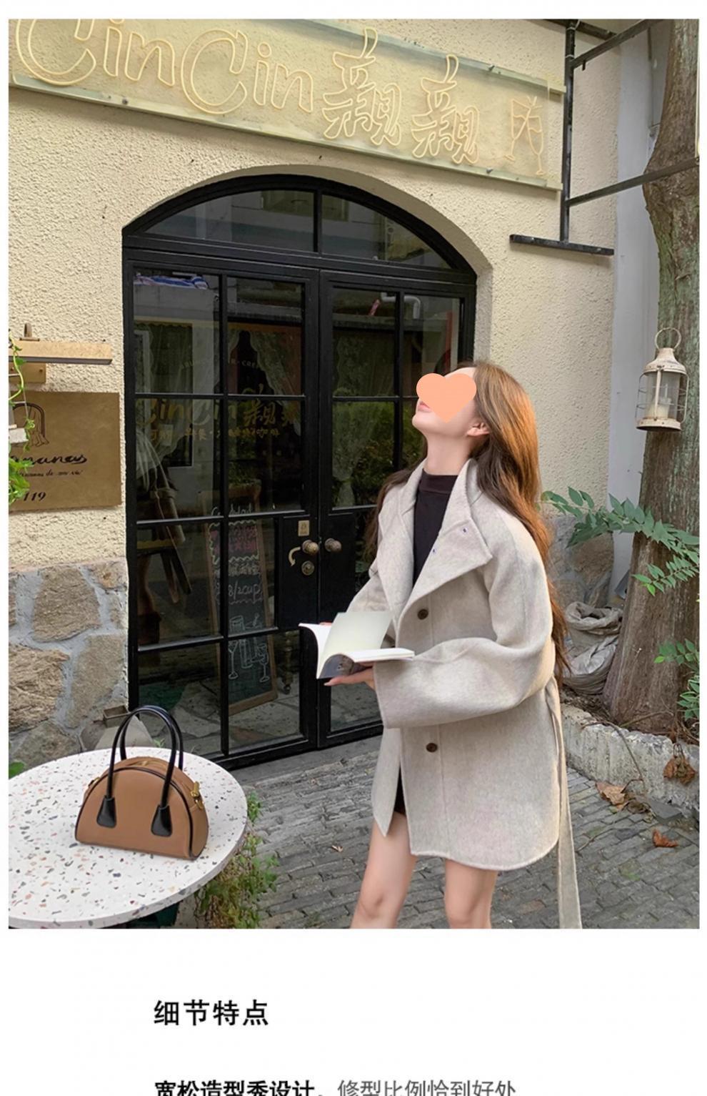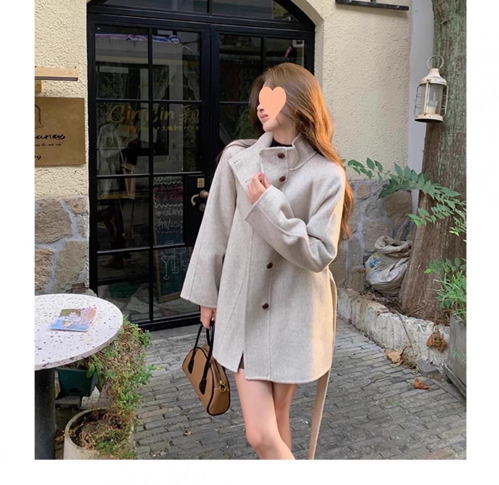 Abrigo de lana color avena para mujer, otoño e invierno 2025, estilo coreano, holgado, para tallas pequeñas