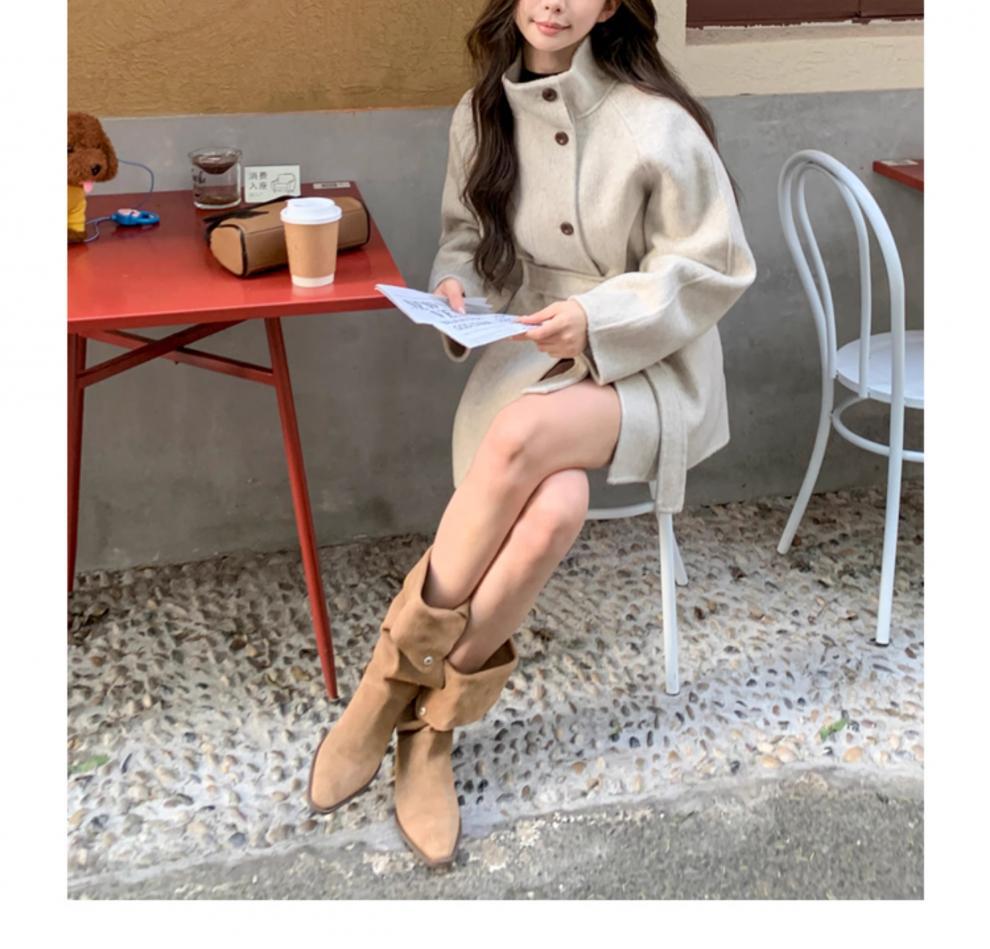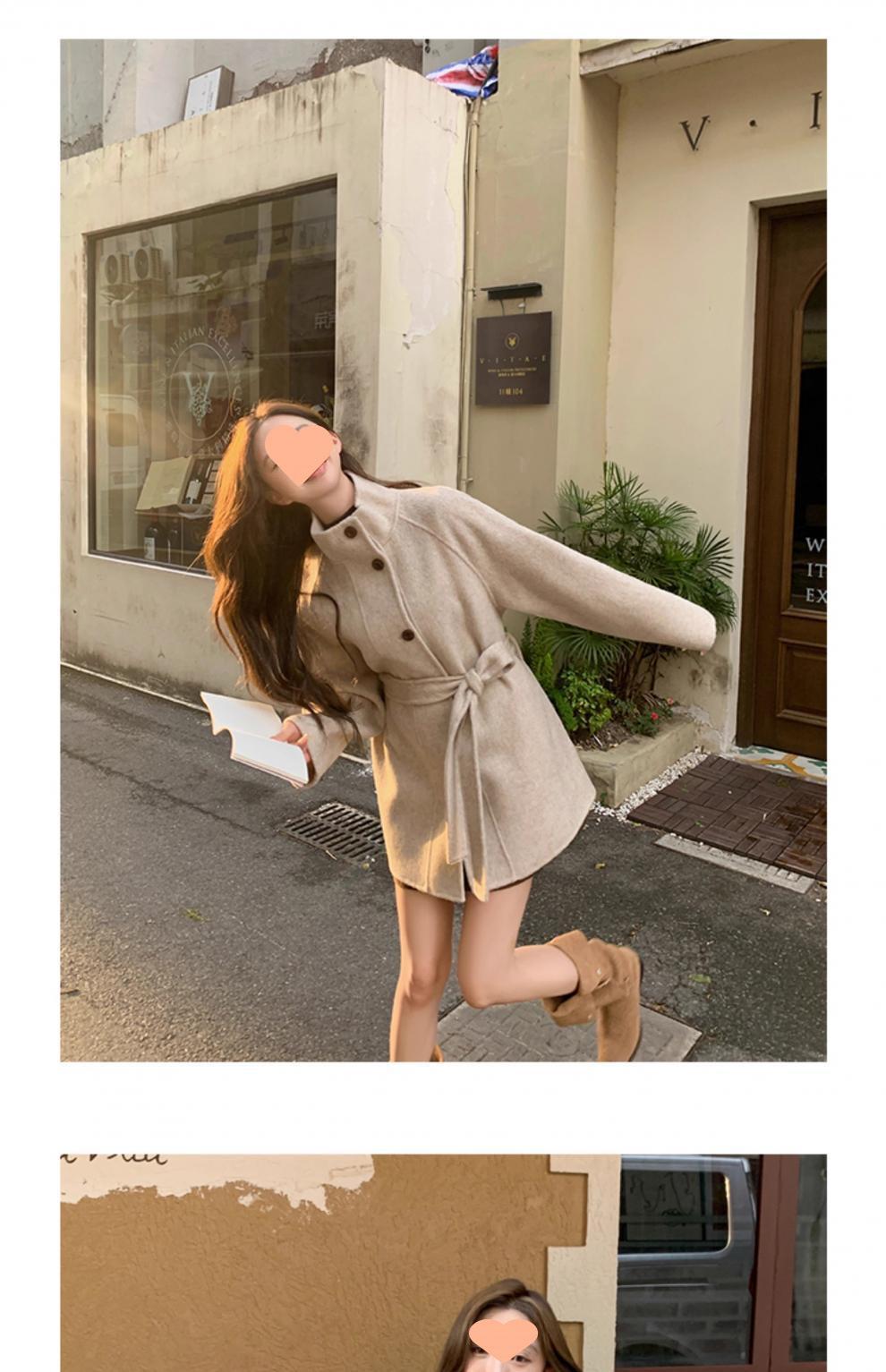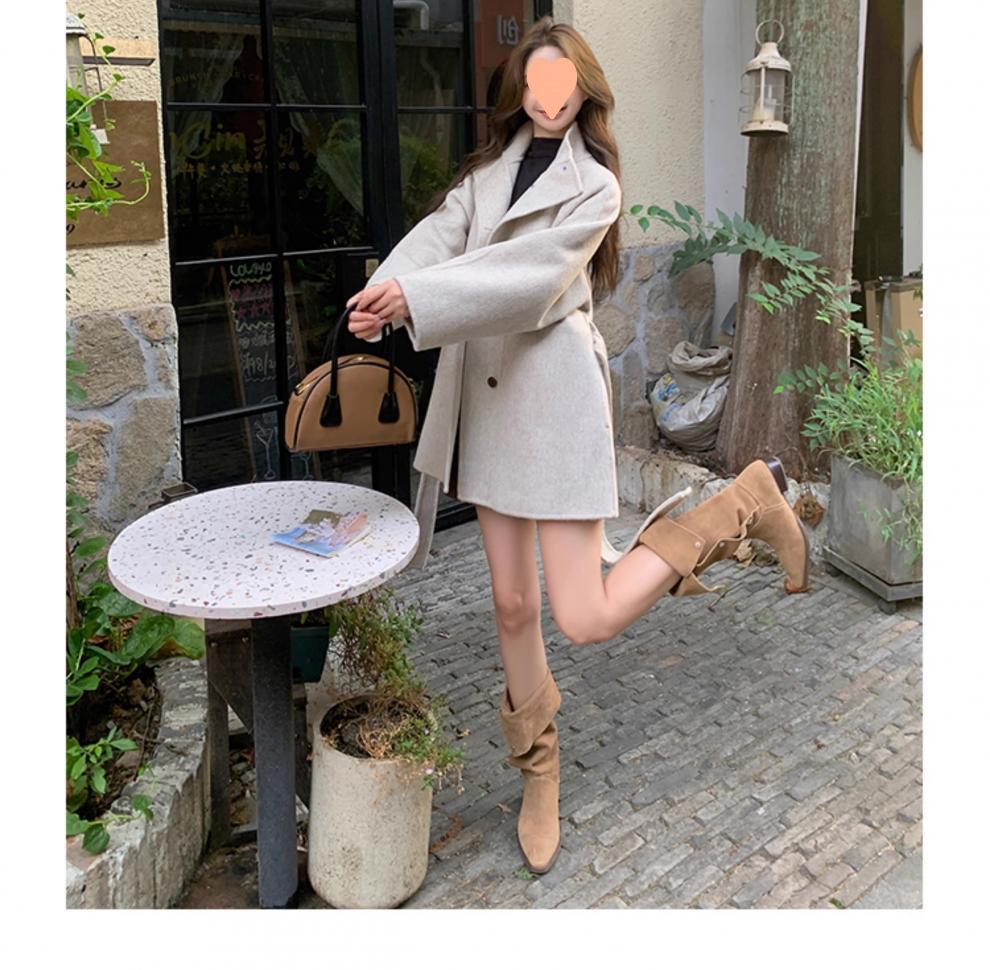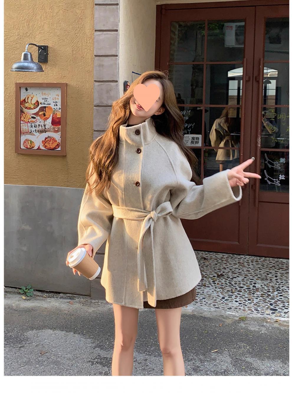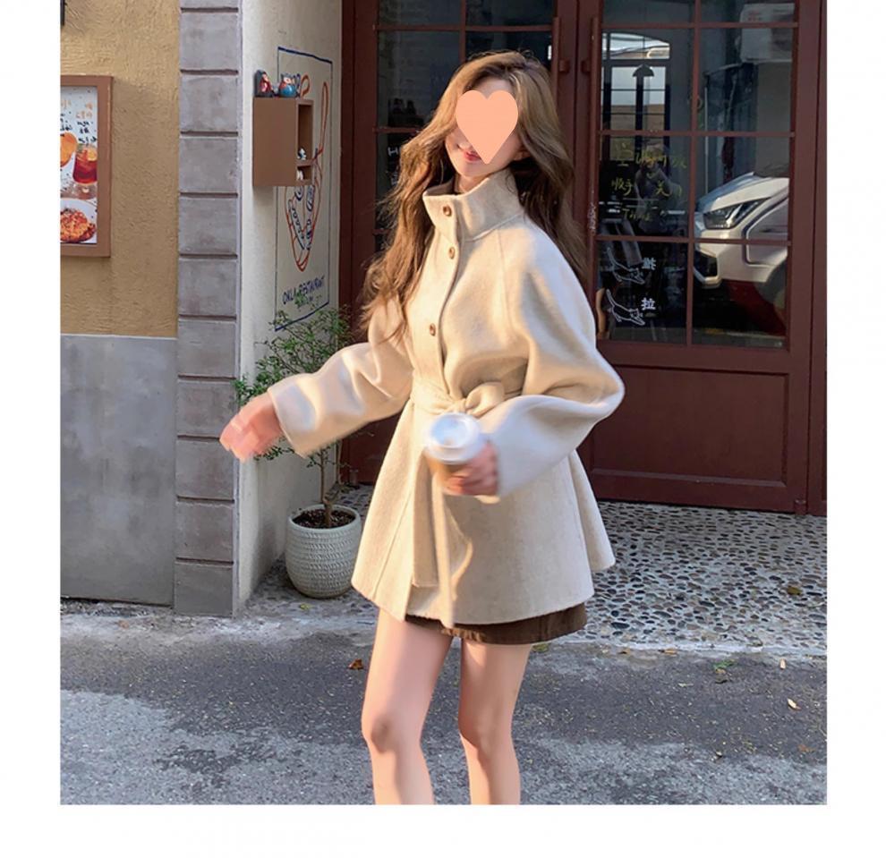 Abrigo de lana color avena para mujer, otoño e invierno 2025, estilo coreano, holgado, para tallas pequeñas