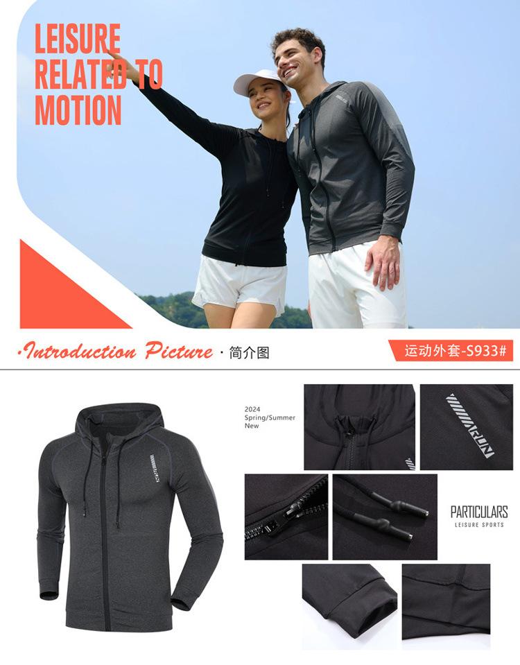 Chaqueta deportiva de primavera y otoño para hombre, para exteriores, fitness, running, de secado rápido, transpirable, de manga larga, con capucha y cremallera