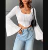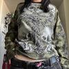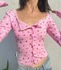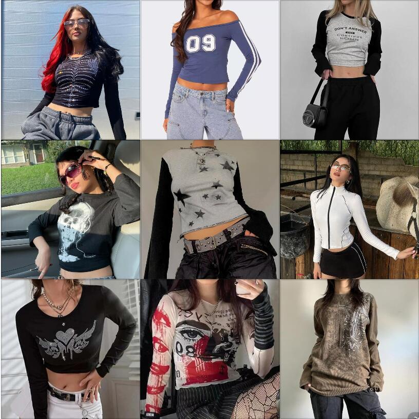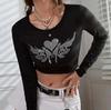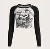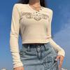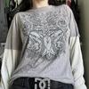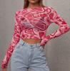 2025 transfronterizo para mujer AliExpress wish Amazon estampado largo T casual retro manga larga estampado top camiseta