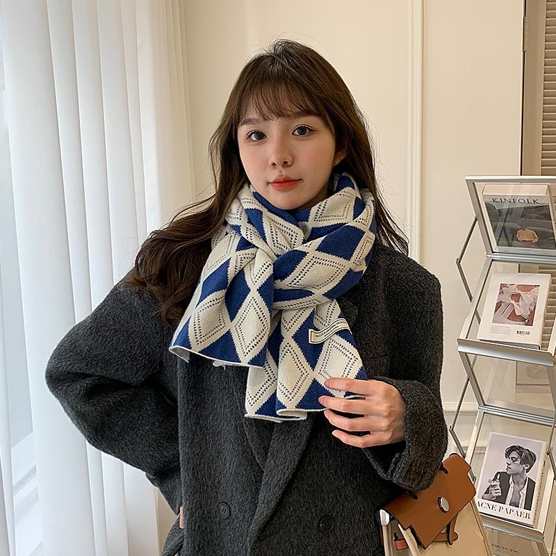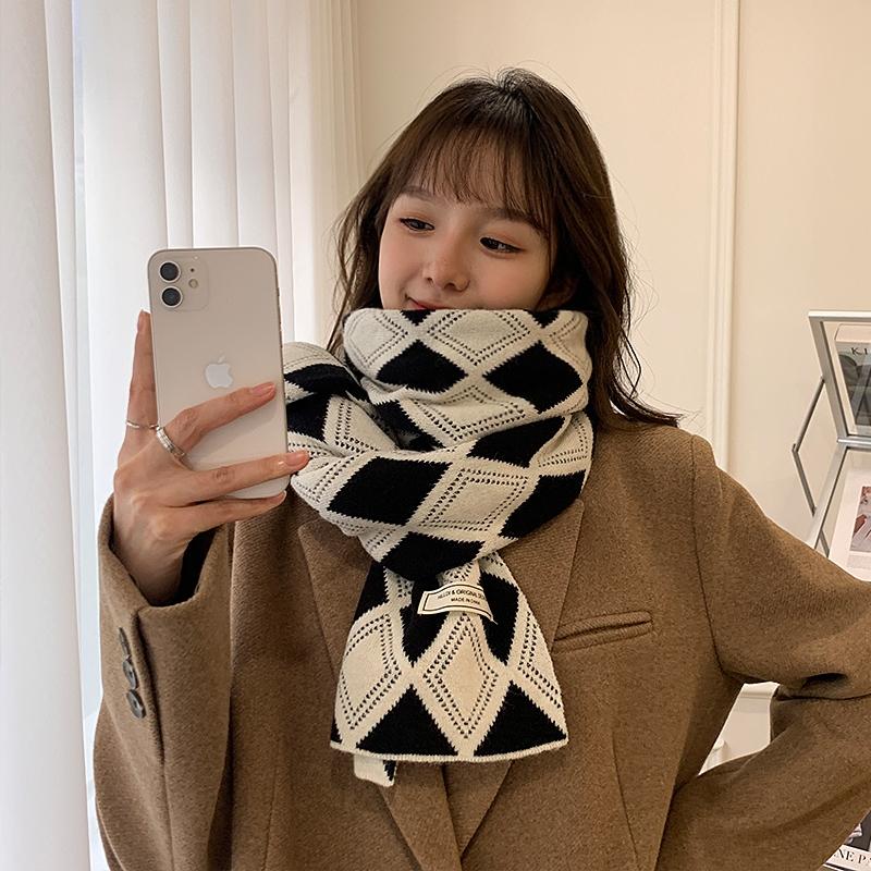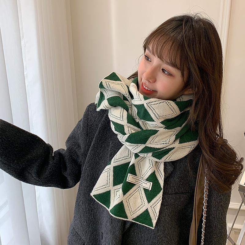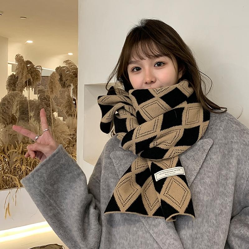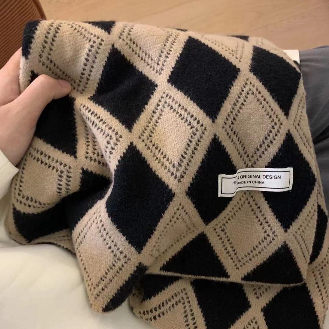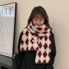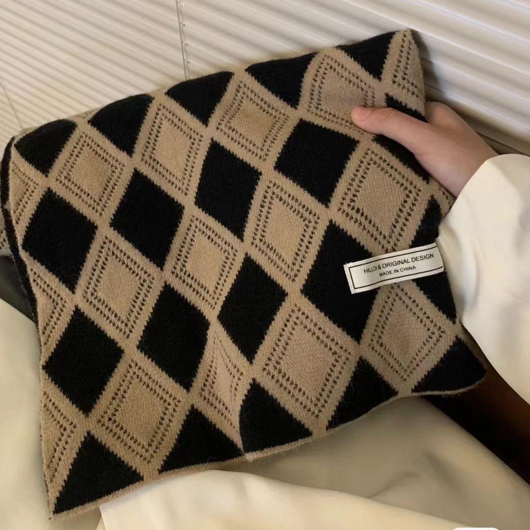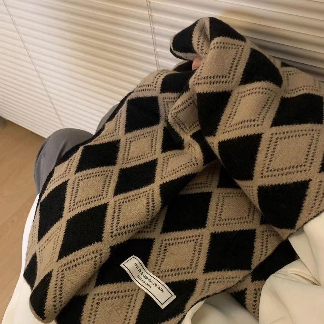 Bufanda Gruesa de Cuadros Romboidales Estilo Coreano para Mujer Invierno Literaria Retro Chal de Lana Tejido Cálido Bufanda de Estudiante Moderna