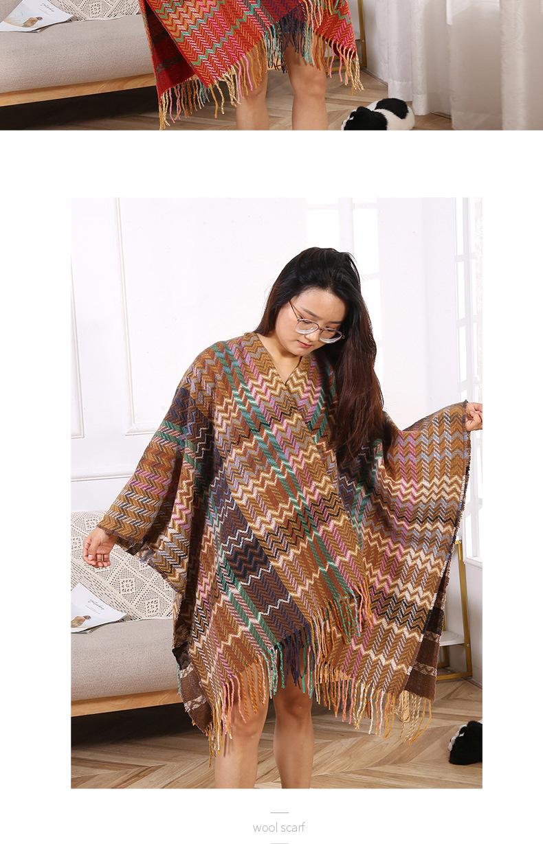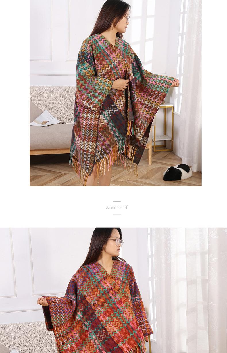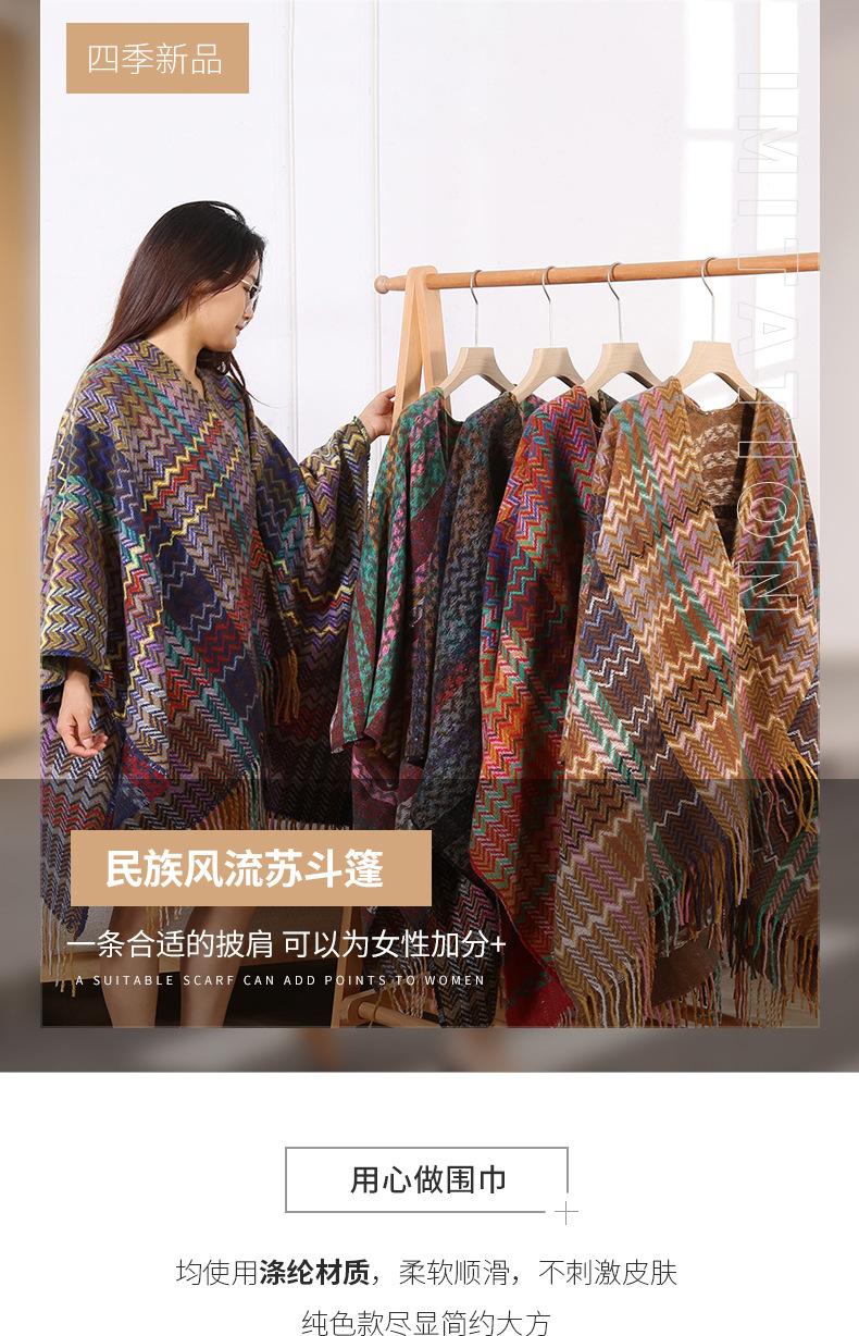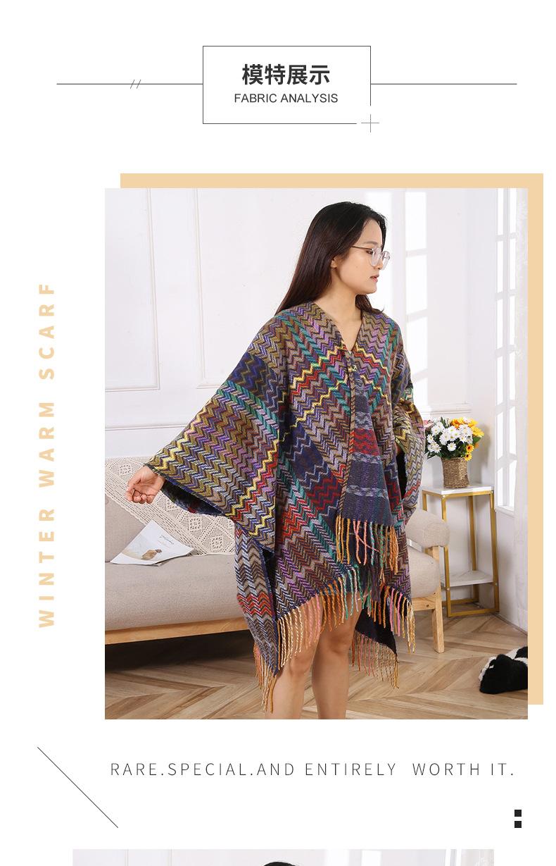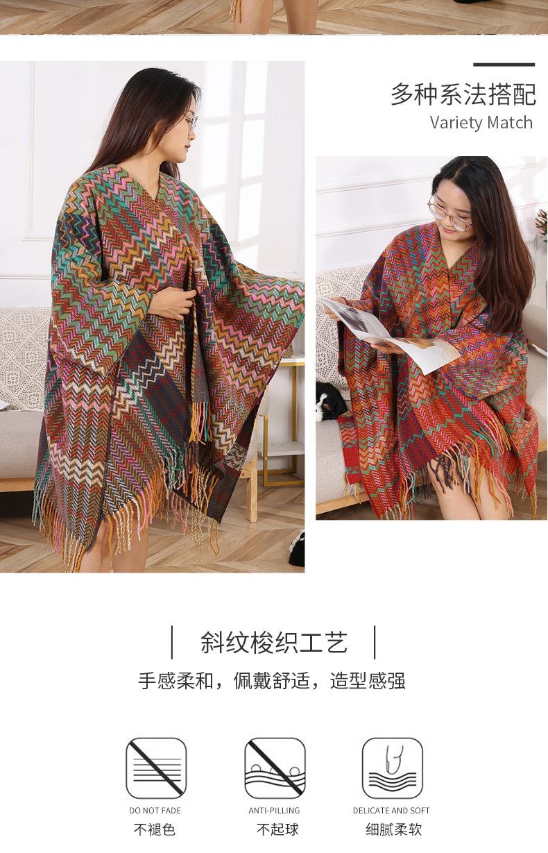 Nuevo estilo, capa de color contrastante, chal, bufanda, moda europea y americana, primavera, otoño e invierno, étnico, borla dividida, chal grande