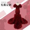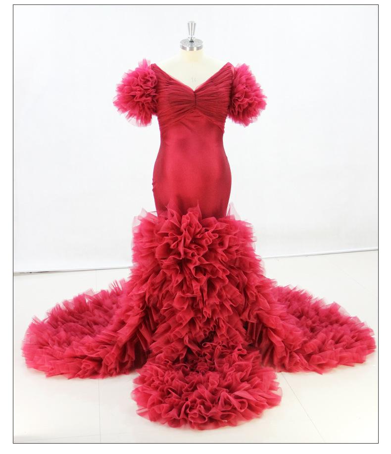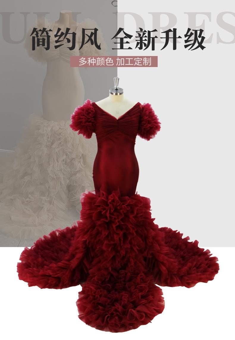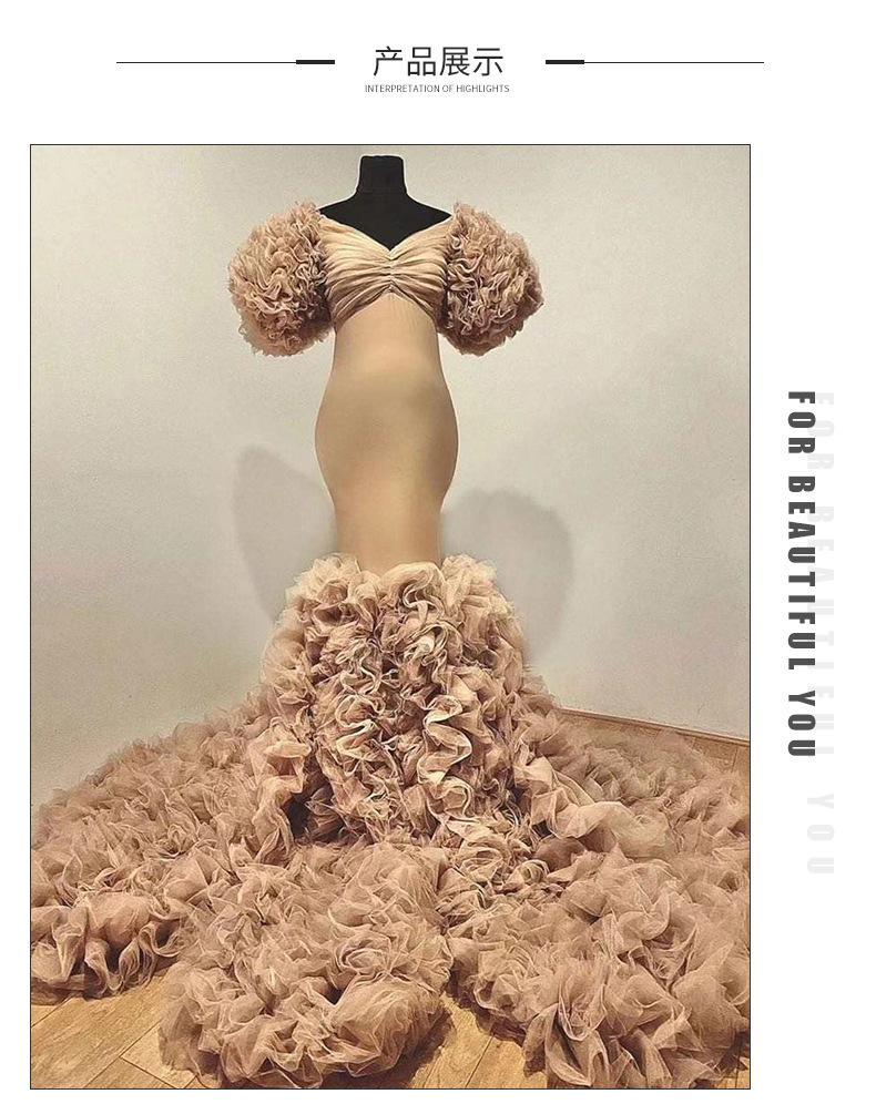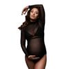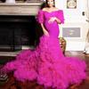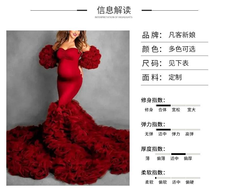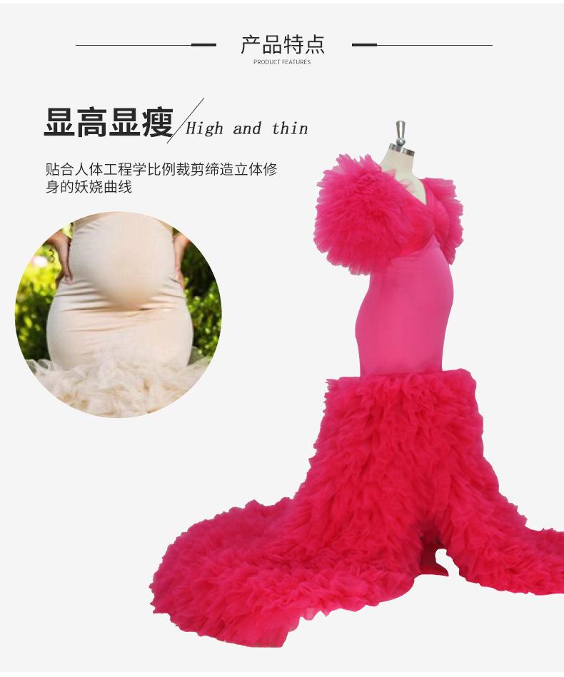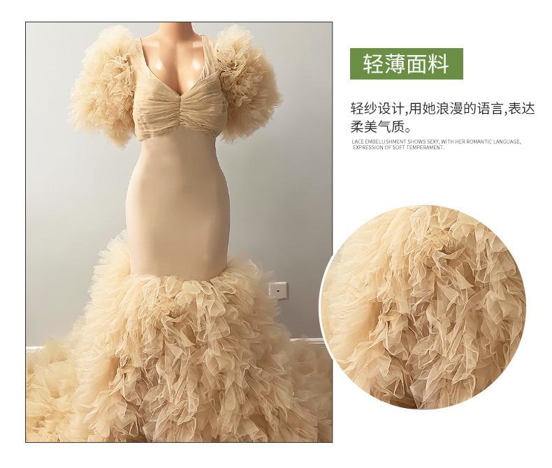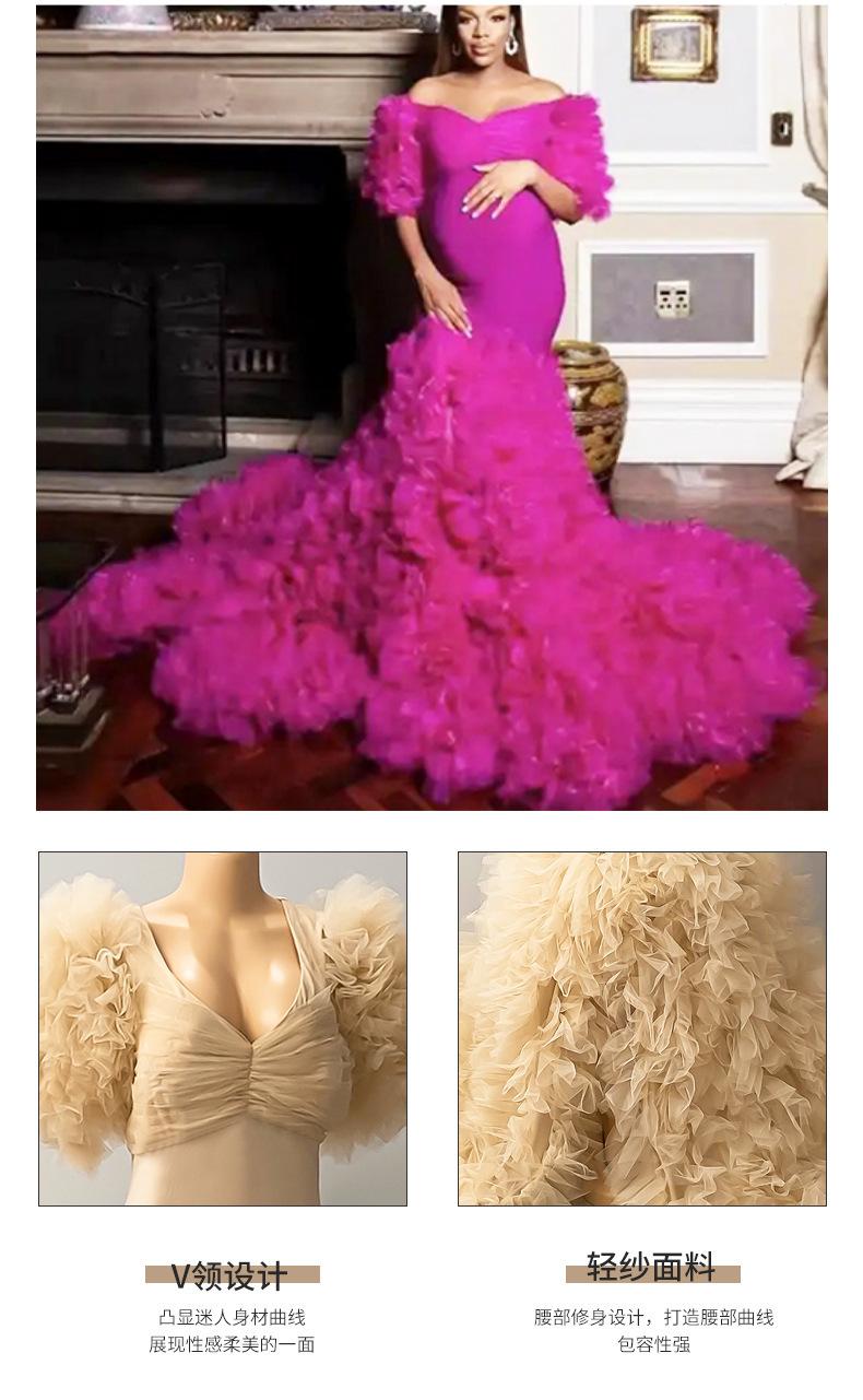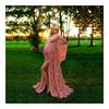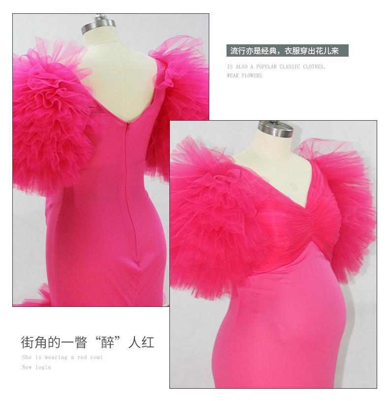 Vestido de maternidad de malla con borde cruzado, vestido para sesión de fotos, vestido con cuello en V, falda de capullo de flores, foto de mamá del vientre