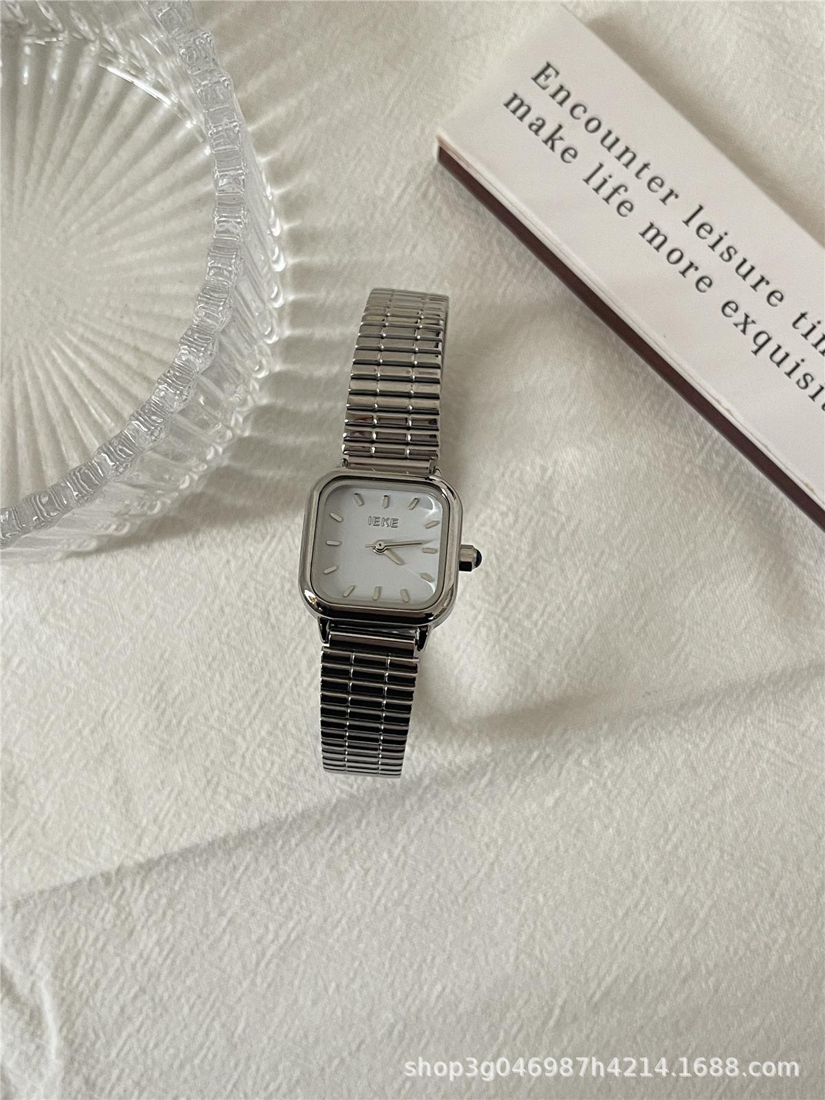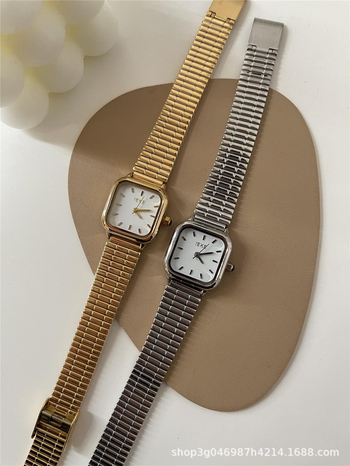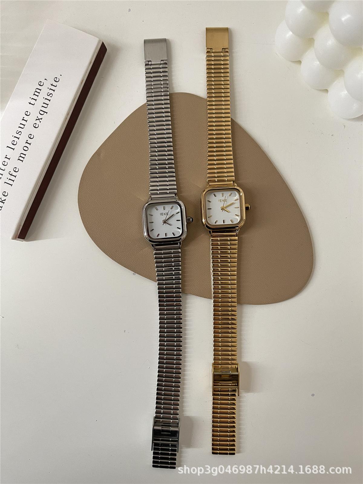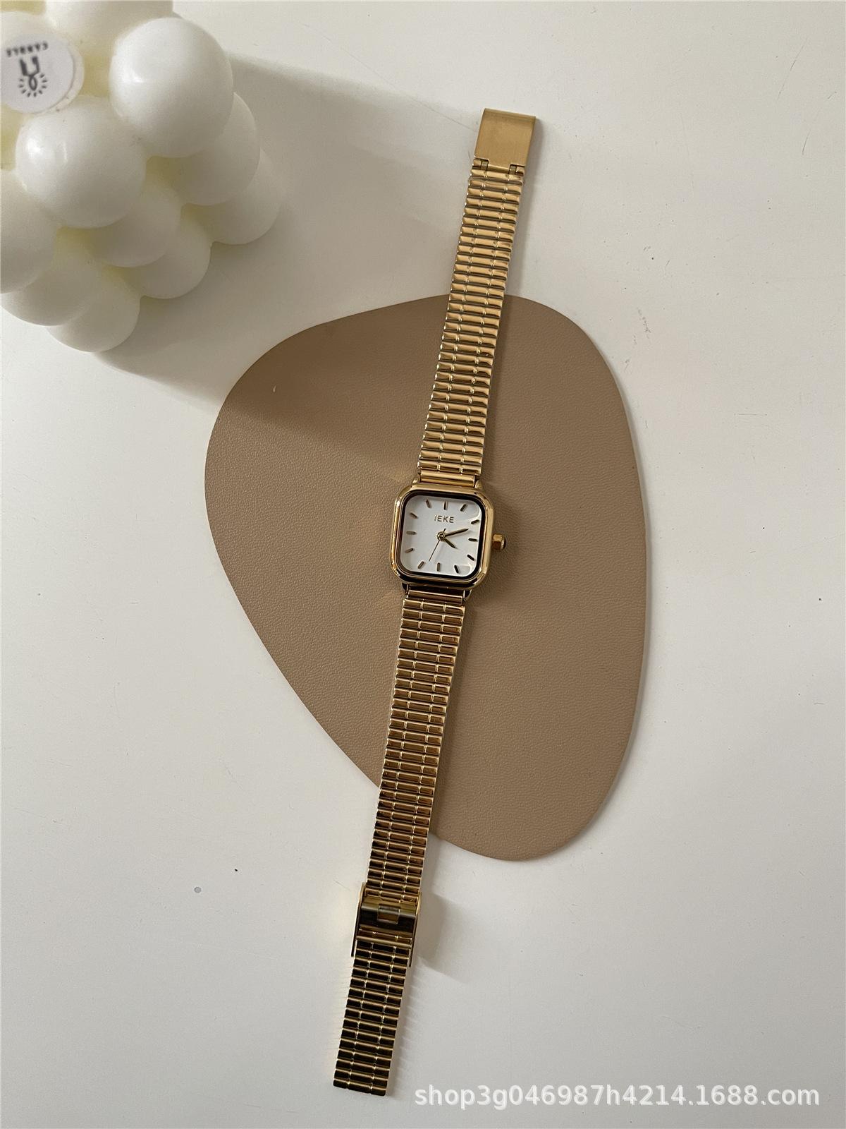 IEKE Reloj de cuarzo clásico retro de estilo coreano con esfera pequeña cuadrada y correa de acero para mujer, estilo minimalista de alta gama