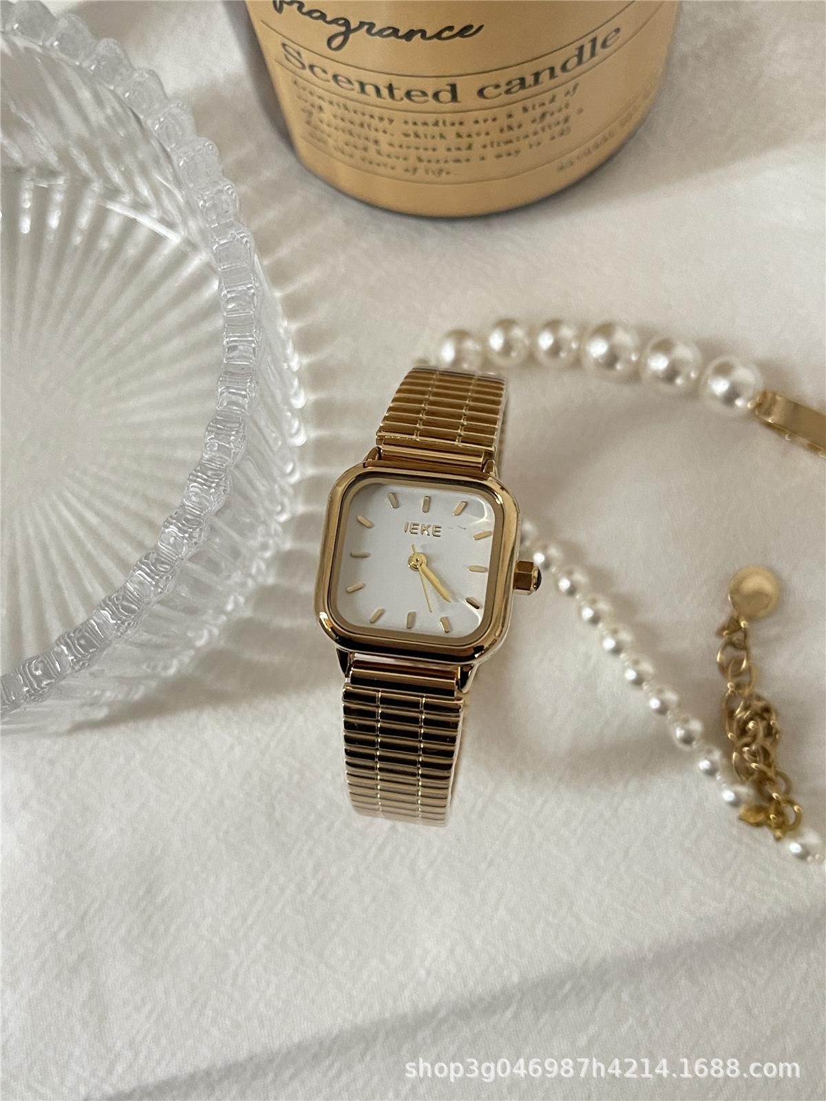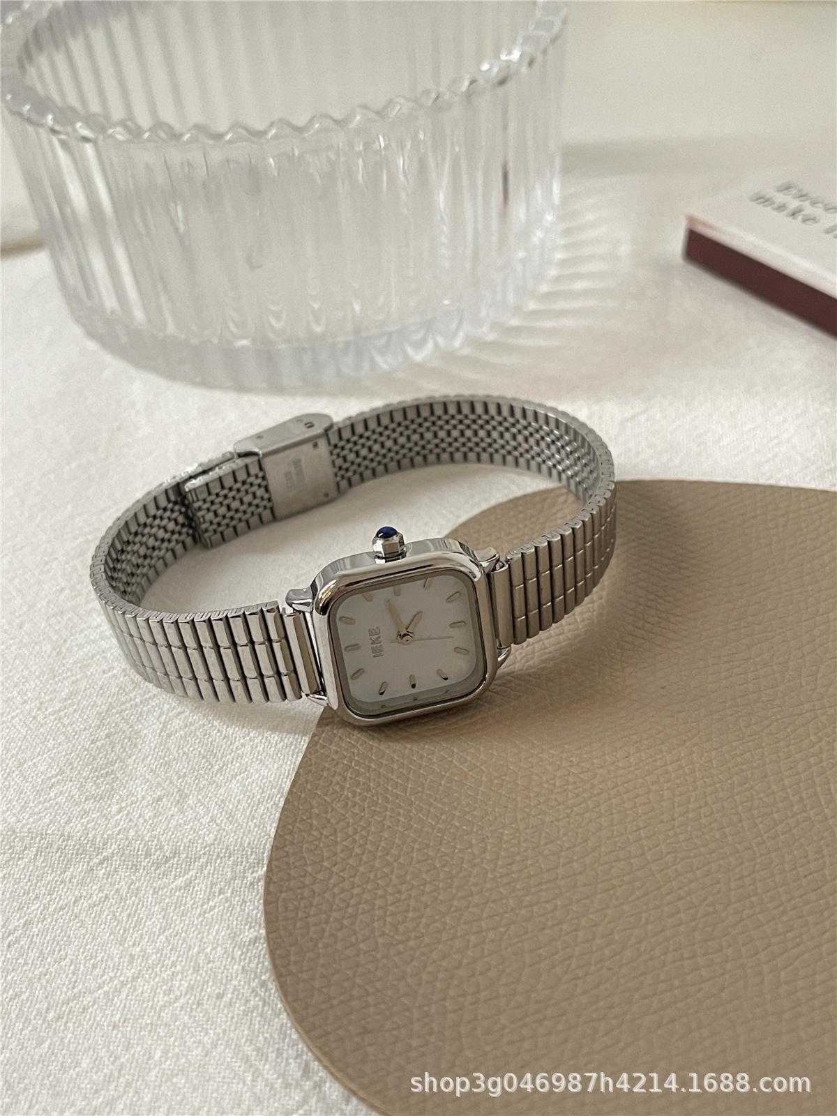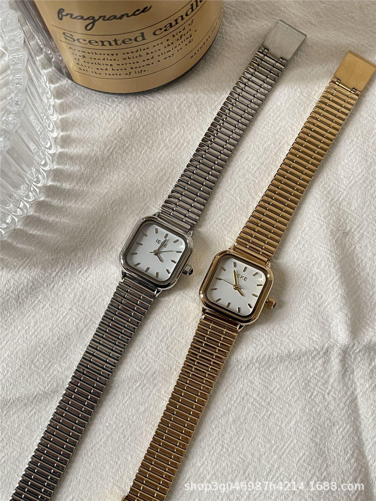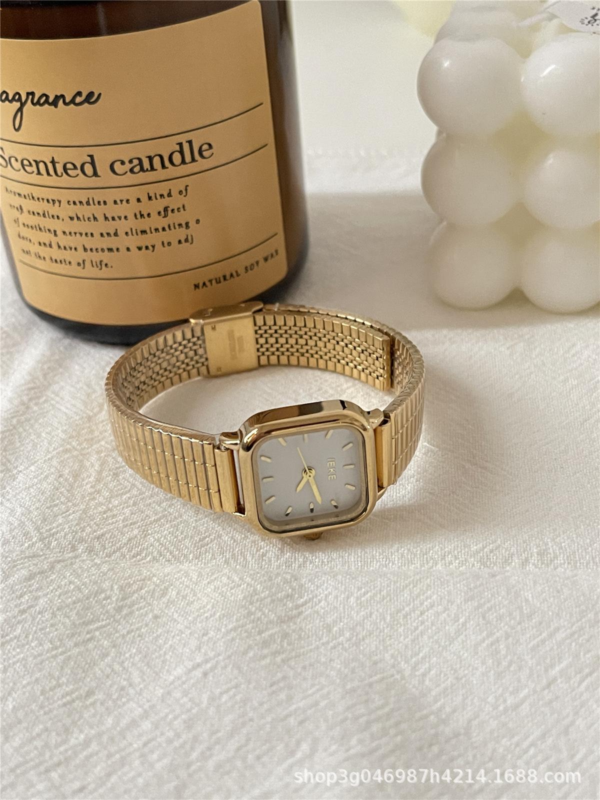IEKE Reloj de cuarzo clásico retro de estilo coreano con esfera pequeña cuadrada y correa de acero para mujer, estilo minimalista de alta gama