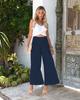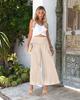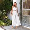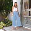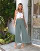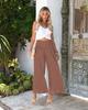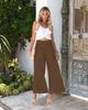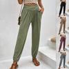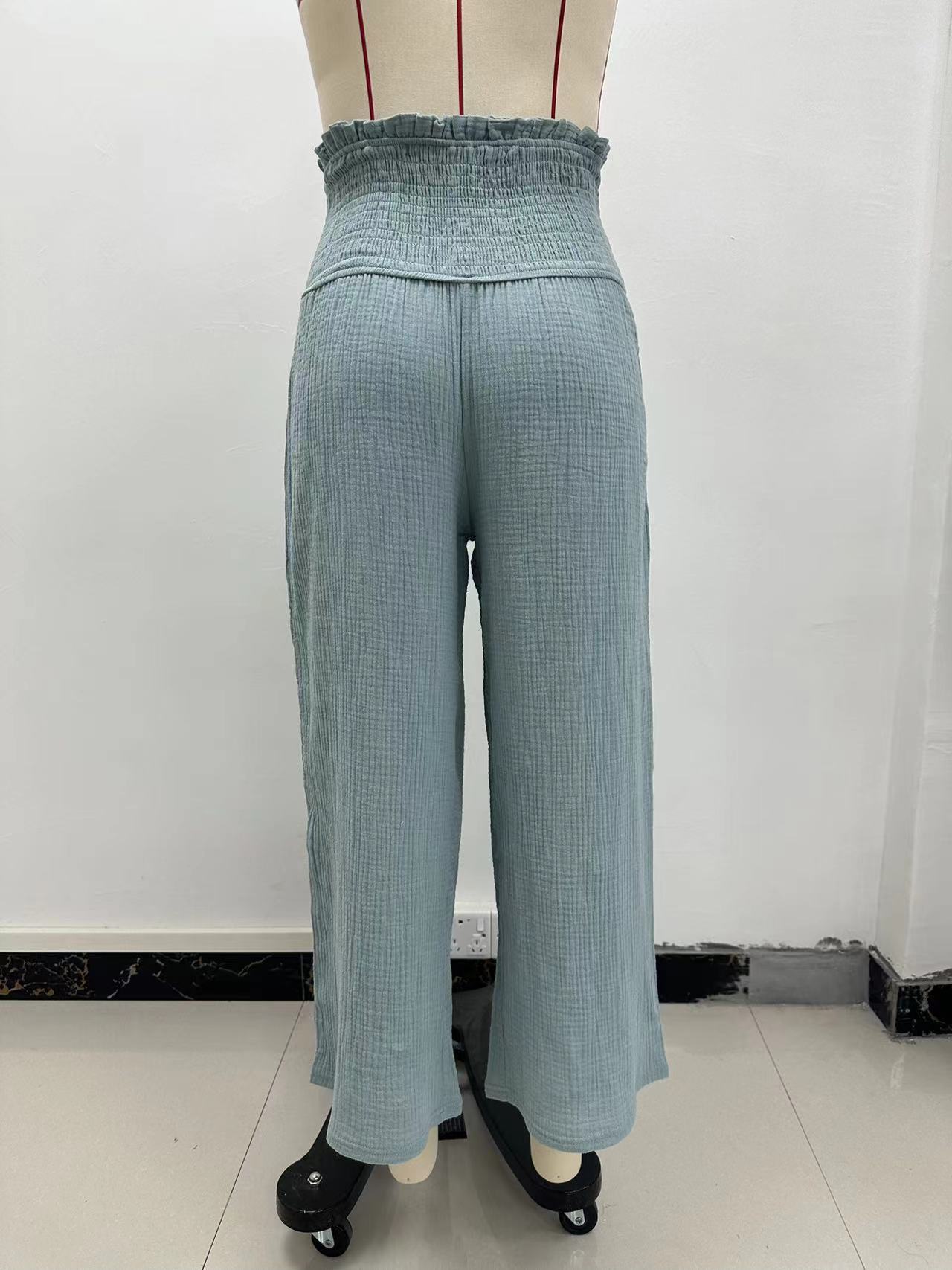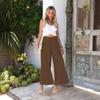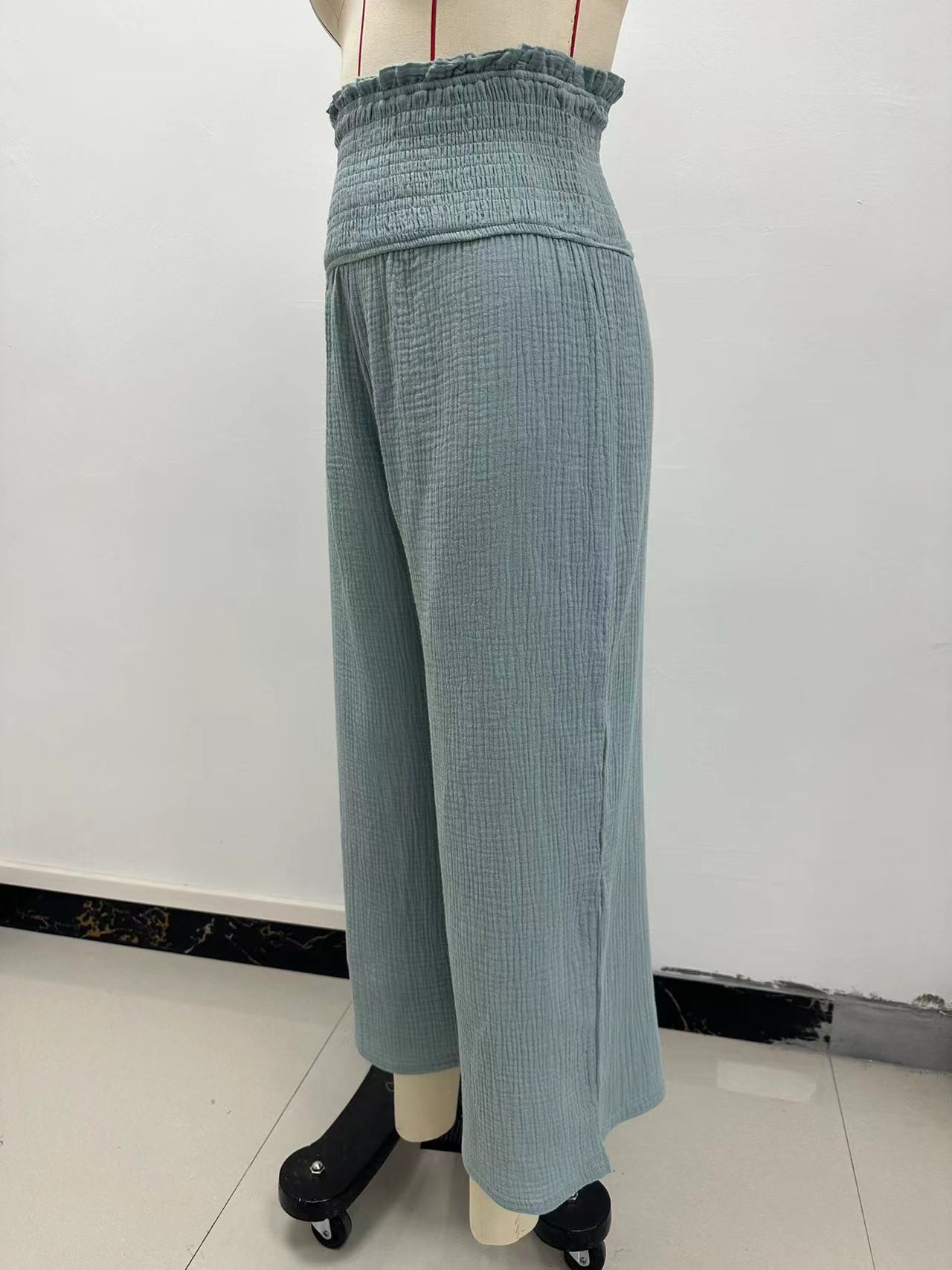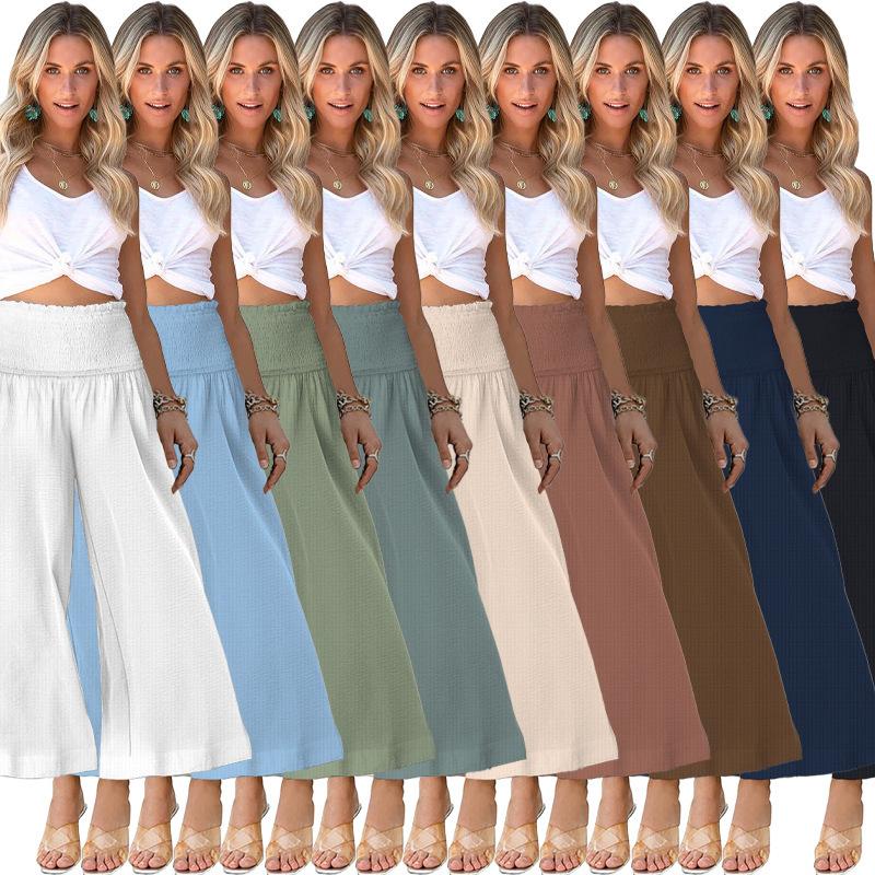 2025 Amazon Primavera y Verano Nuevo Color Sólido Pantalones Plisados de Cintura Alta Casual Algodón Lino para Mujer Largo