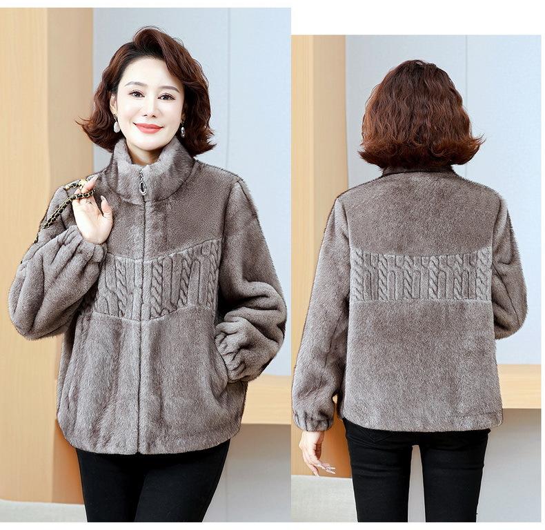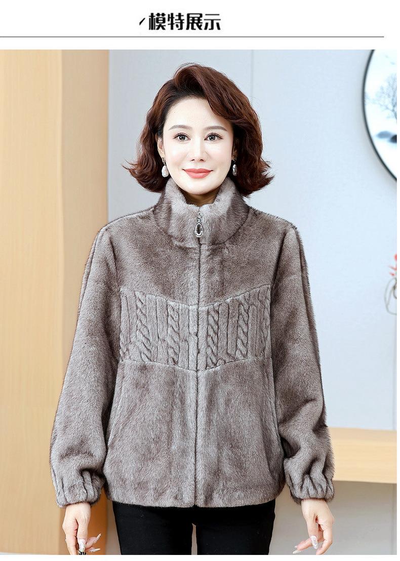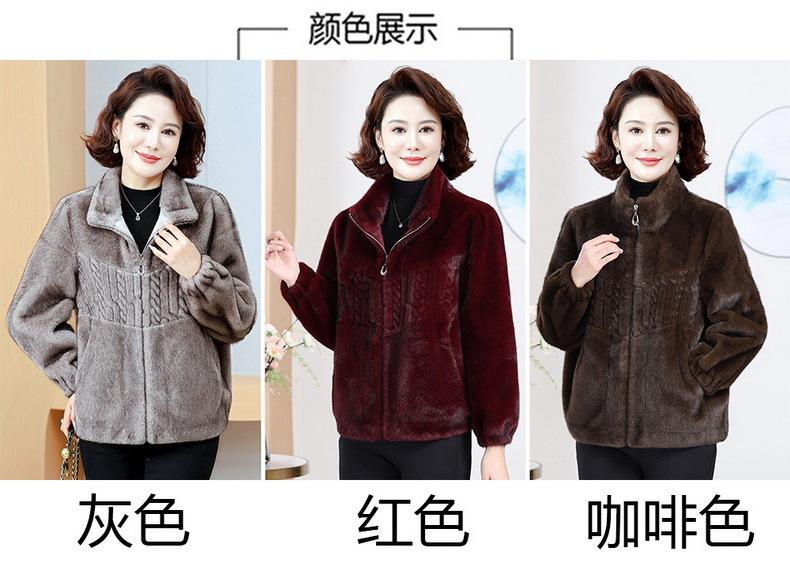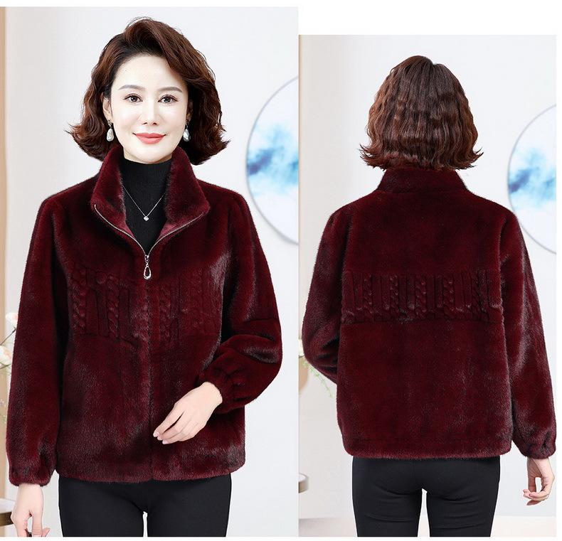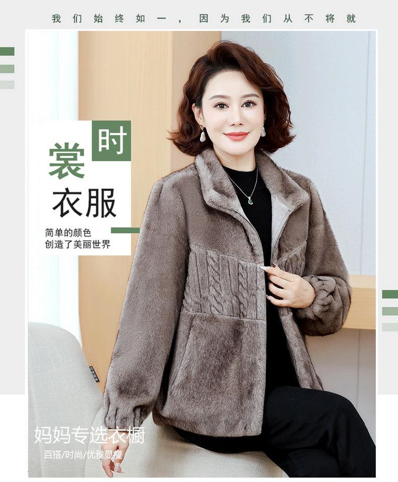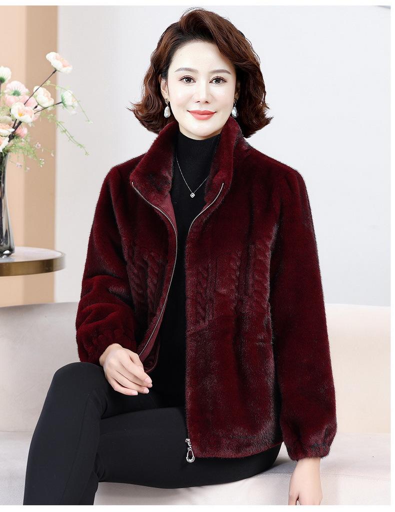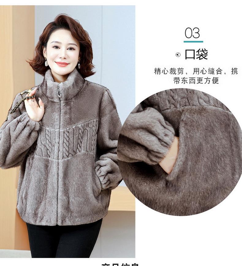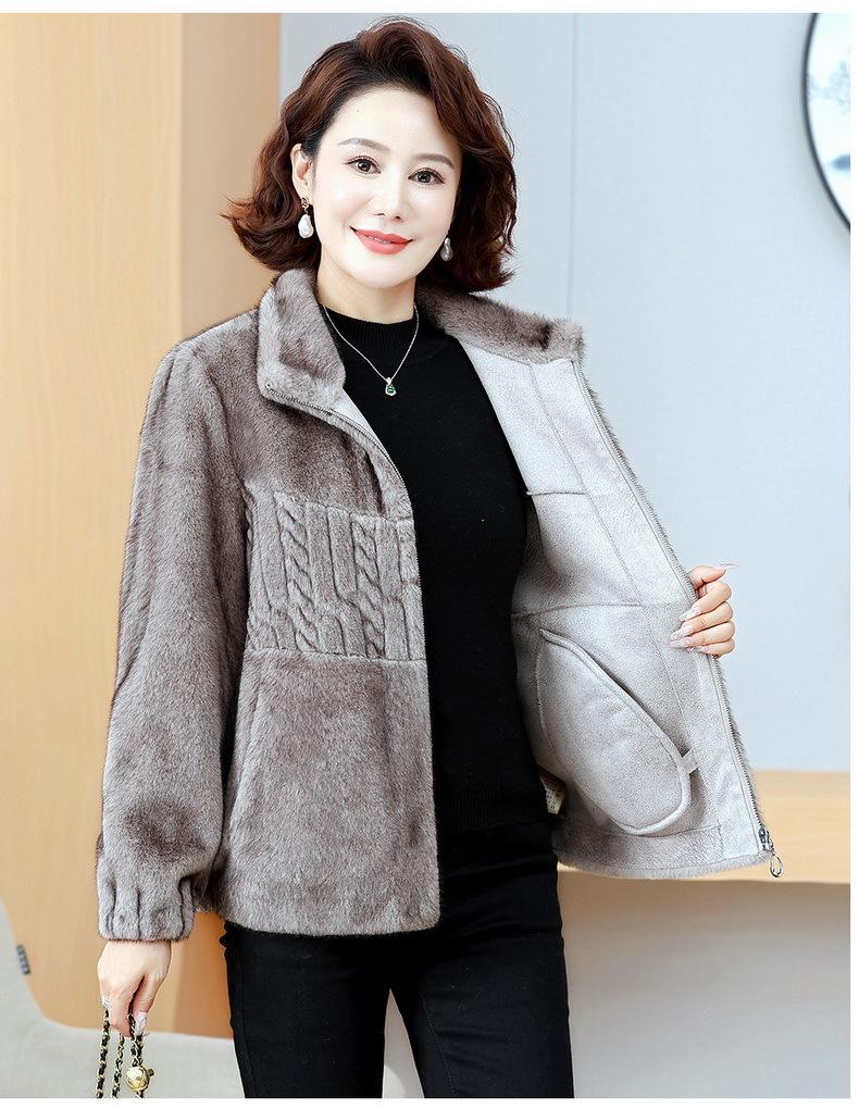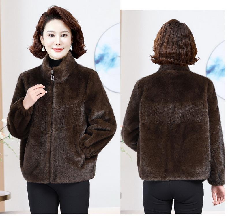 Abrigo de lana de visón de otoño e invierno de mamá, elegante abrigo corto de piel sintética de una pieza para mujeres de mediana edad y mayores.