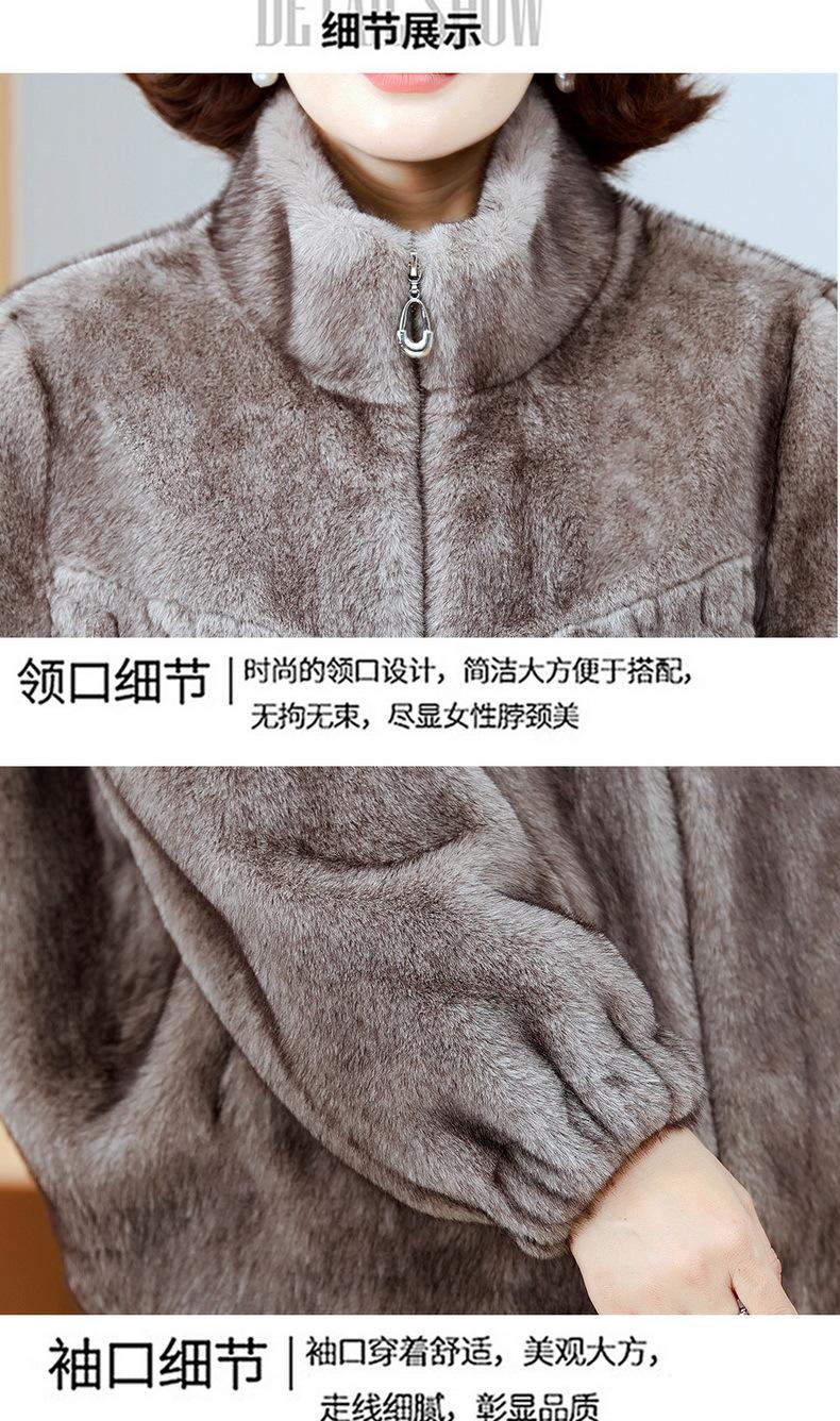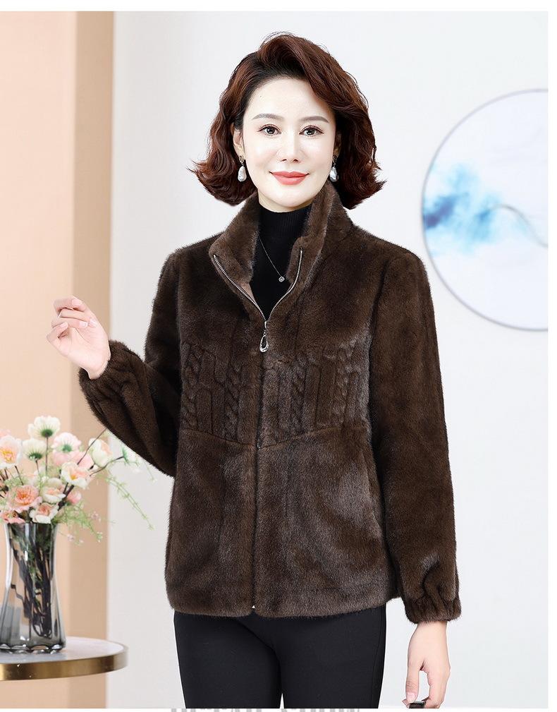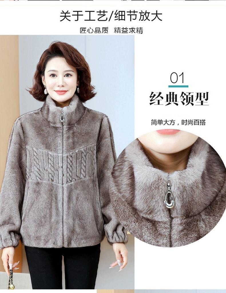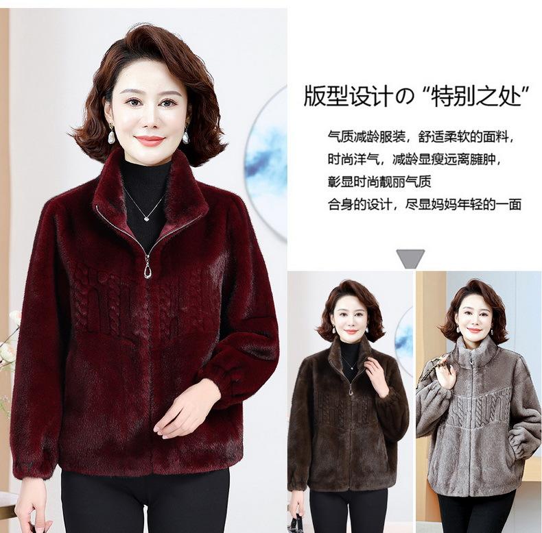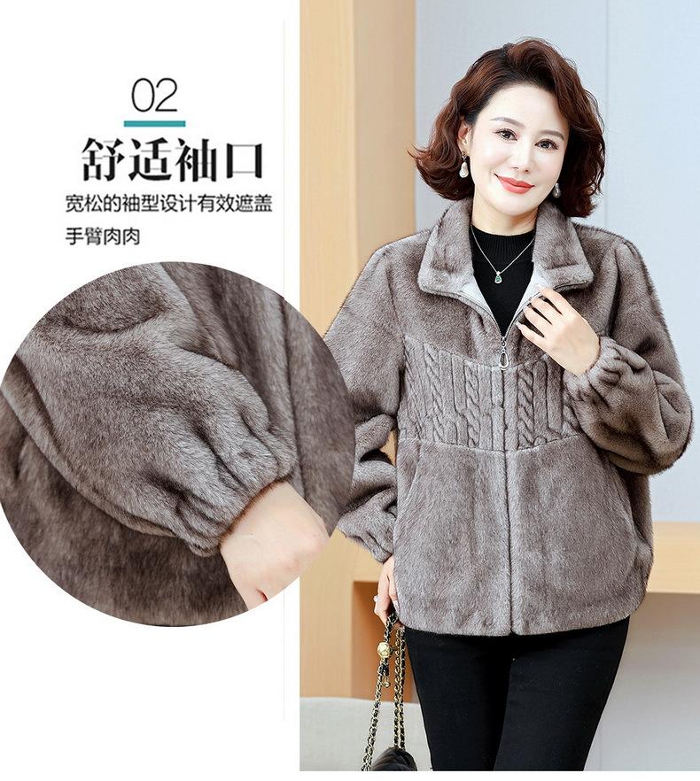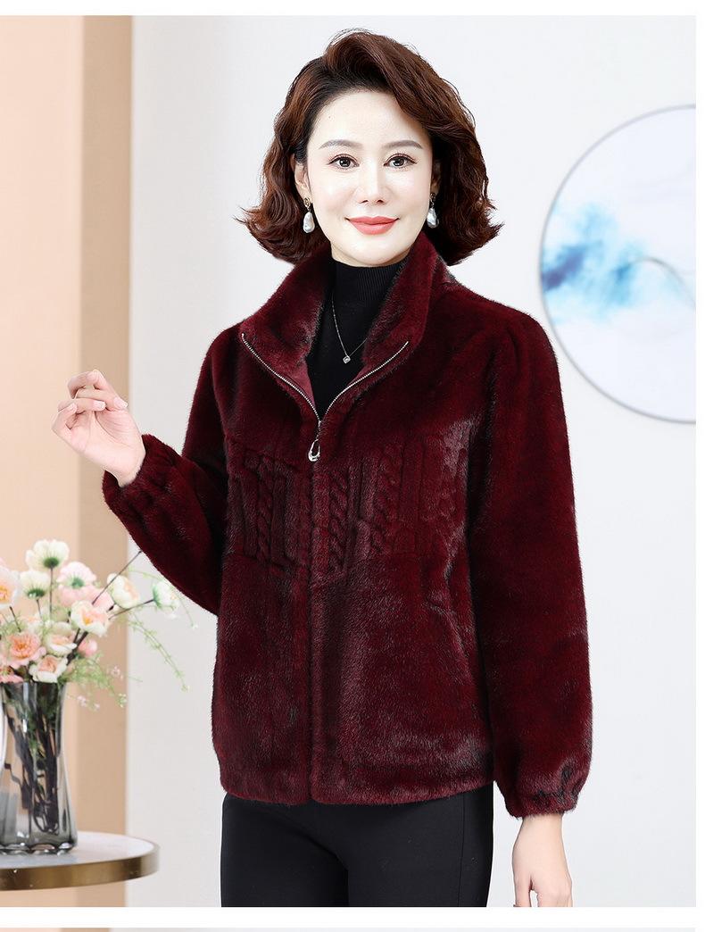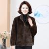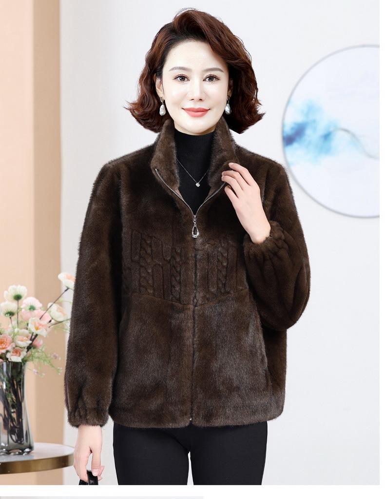 Abrigo de lana de visón de otoño e invierno de mamá, elegante abrigo corto de piel sintética de una pieza para mujeres de mediana edad y mayores.