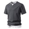 Camiseta de manga corta de dos piezas con cuello redondo para hombre, nueva camiseta de verano 2025, de doble capa y moda falsa