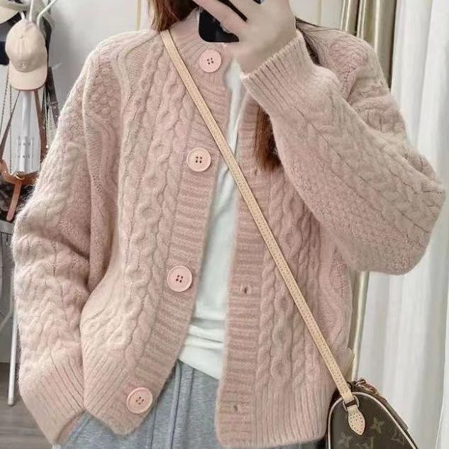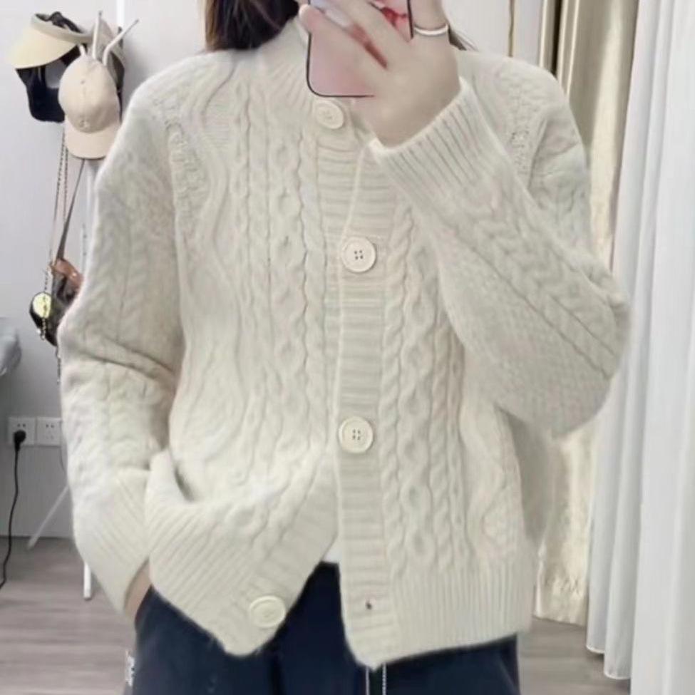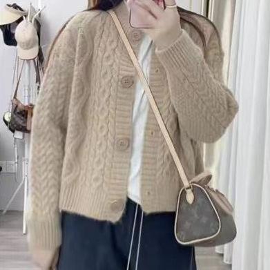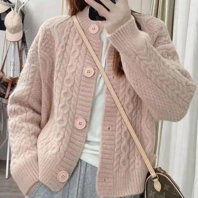 Cárdigan de punto con diseño de nicho para mujer, primavera y otoño 2023, nuevo suéter suelto de cuello redondo de color sólido con giro para mujer