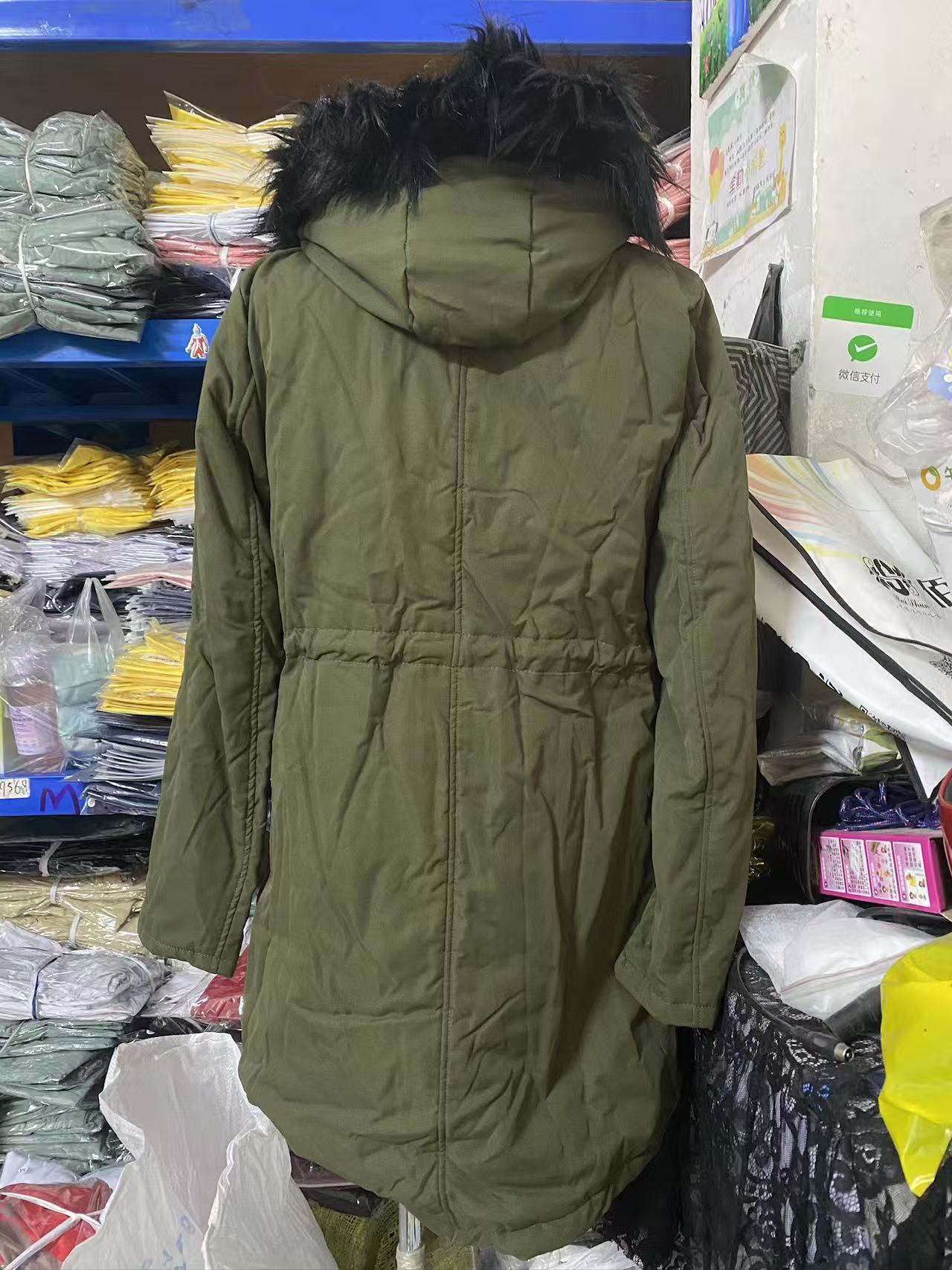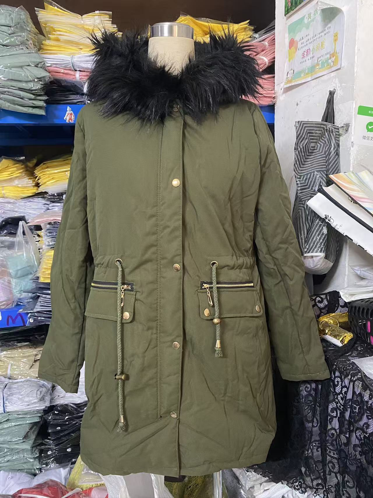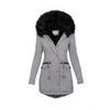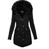 Deseo transfronterizo Amazon Ropa de mujer europea y americana de otoño e invierno de color sólido con cuello de piel con capucha de longitud media gruesa cálida con relleno de algodón
