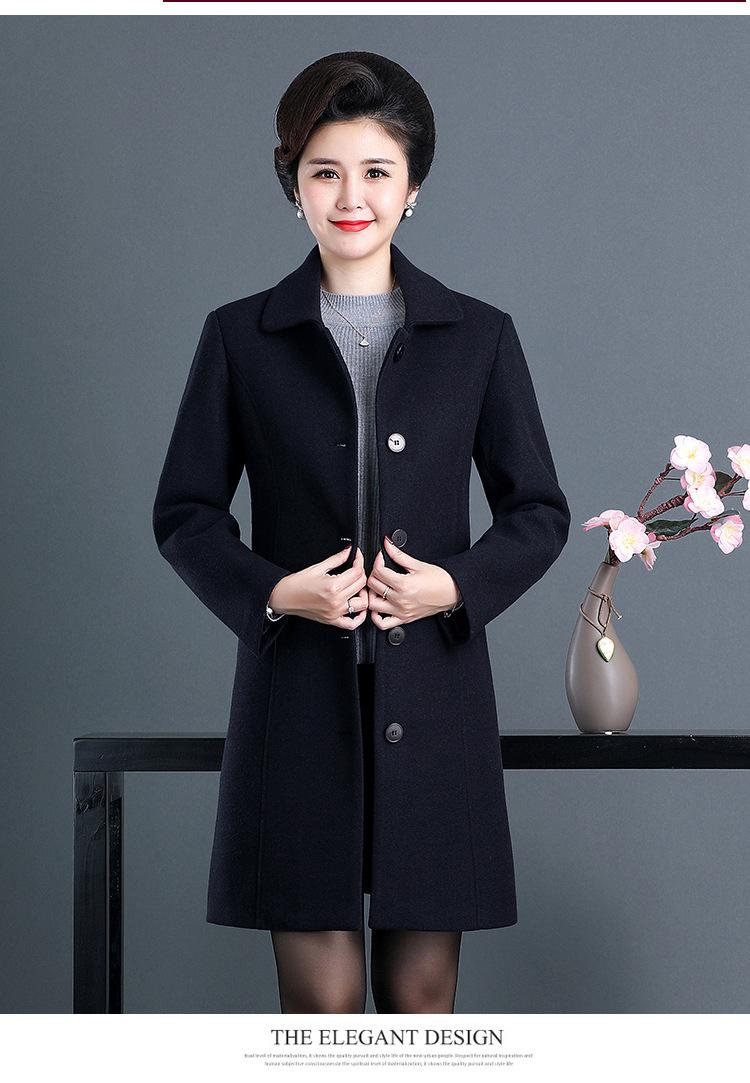 Abrigo de Cachemira para Mujeres de Mediana Edad y Ancianas Abrigo Largo de Lana Nuevo para Invierno para Madres Abrigo de Lana de Estilo Coreano para Mediana Edad