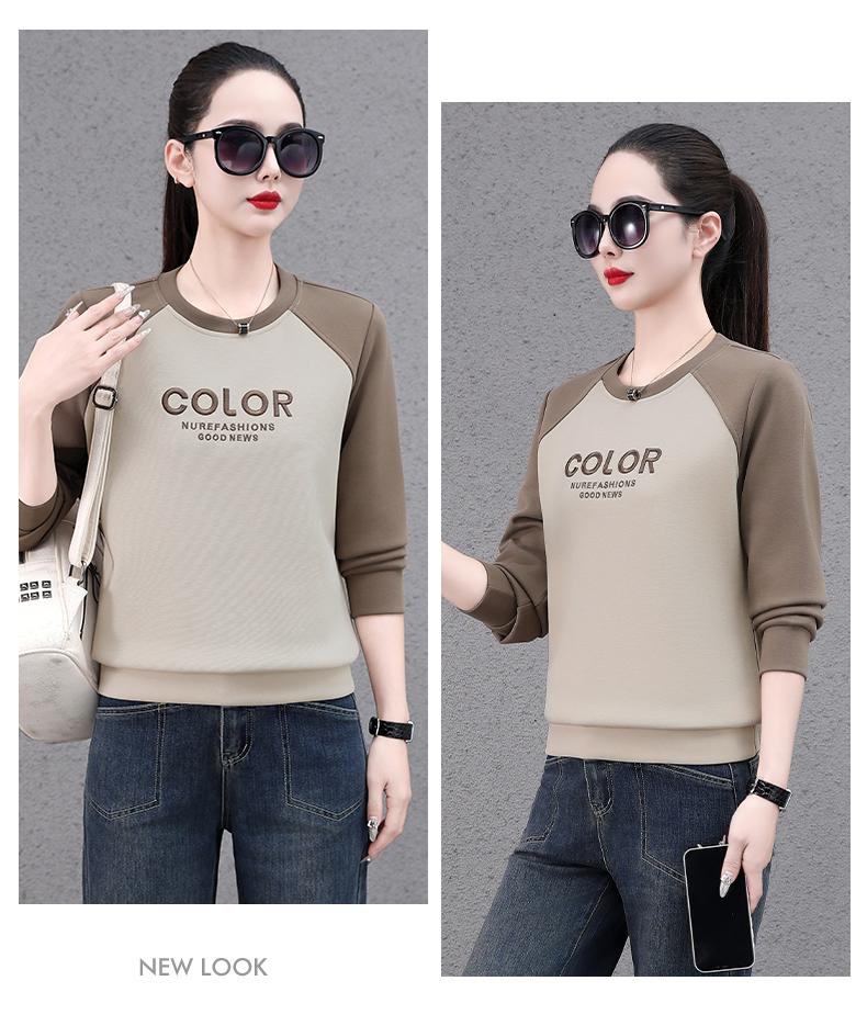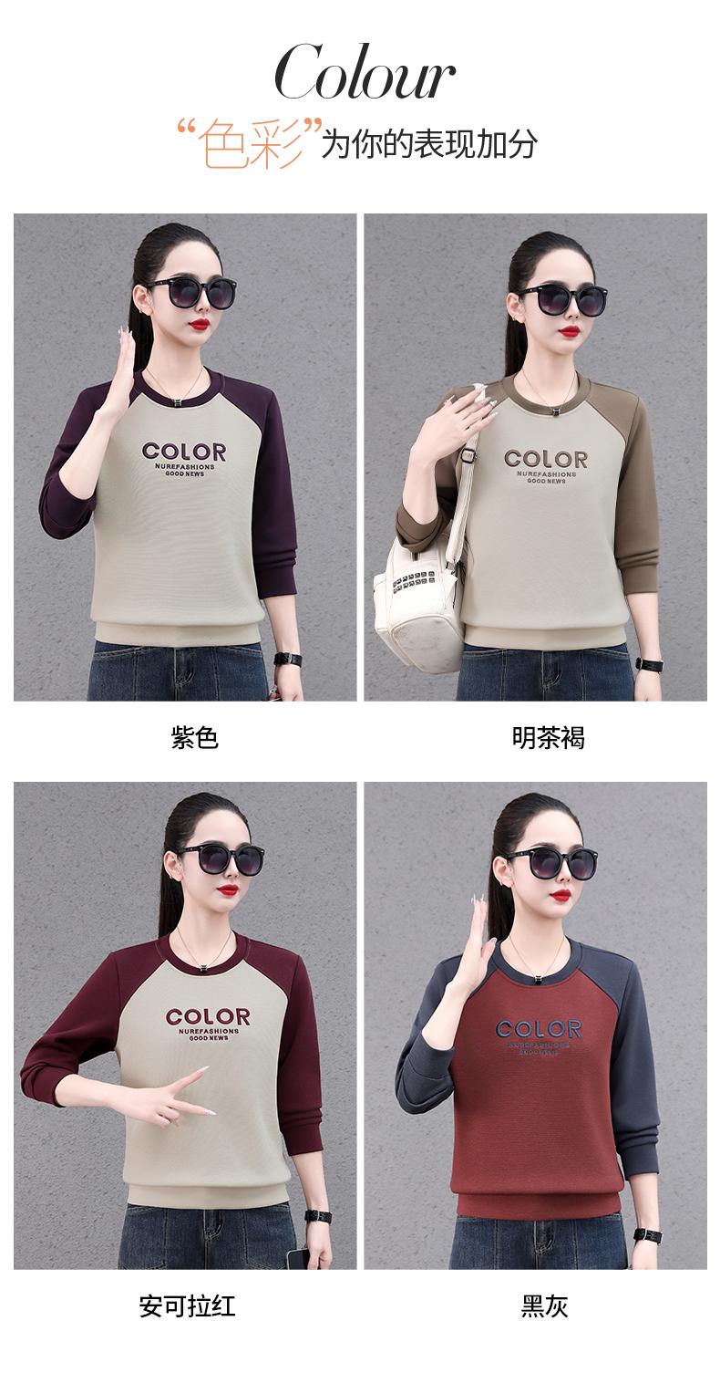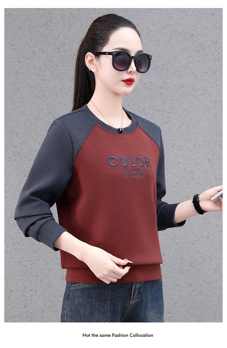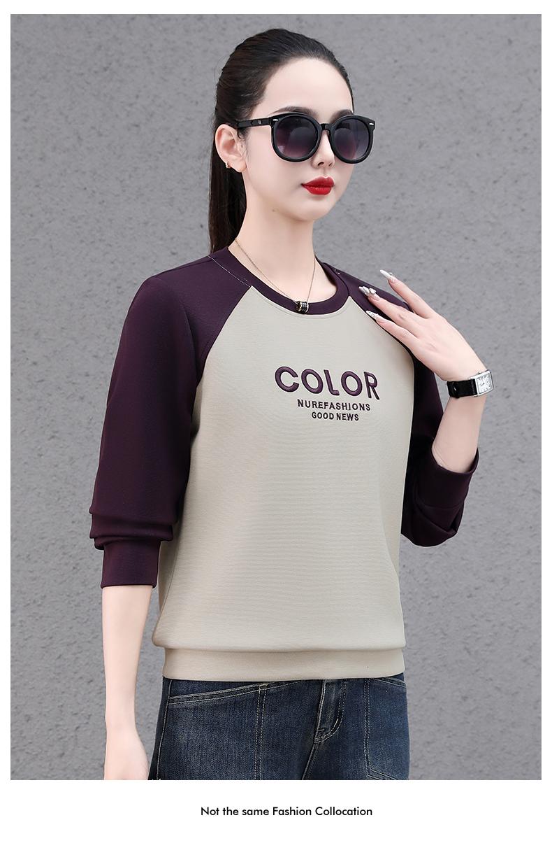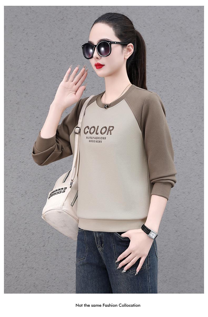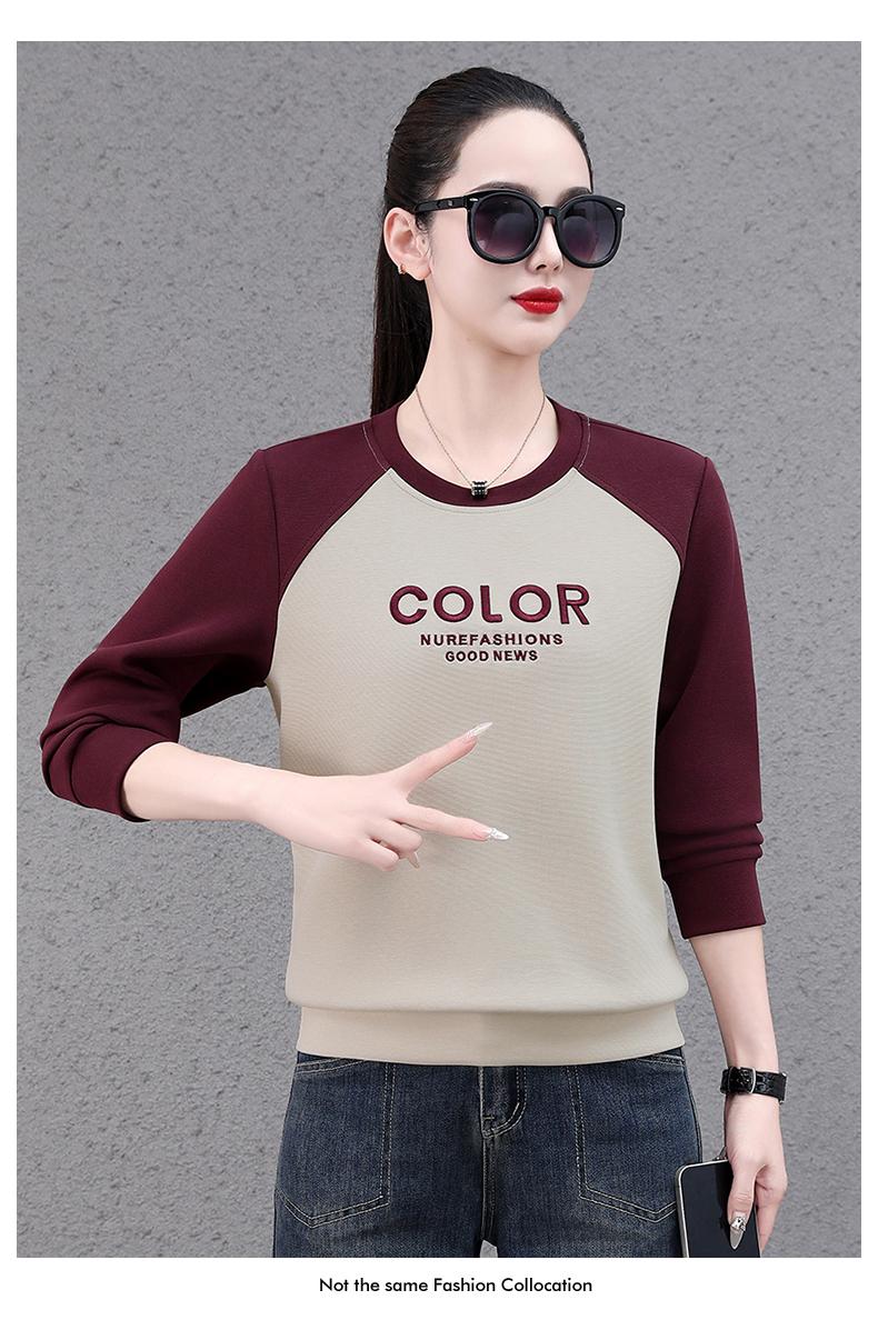 Sudadera de Cuello Redondo para Mujer 2025 Nuevo Primavera y Otoño Madre de Mediana Edad Suelta y Elegante Color en Contraste Manga Larga con Capucha Pulóver Chaqueta