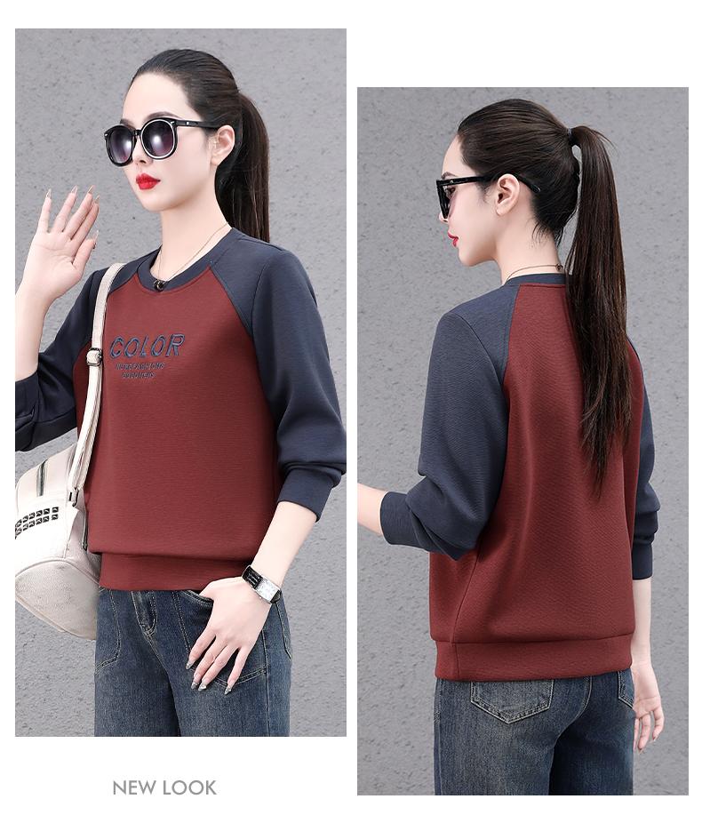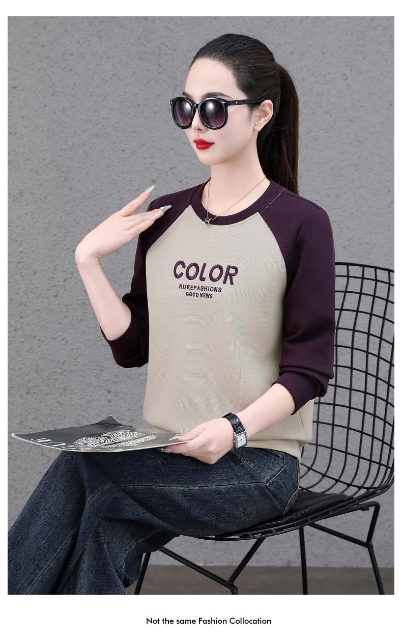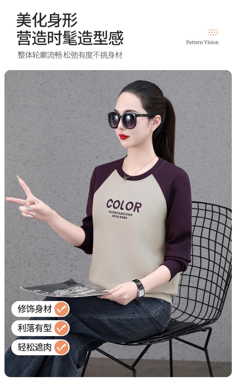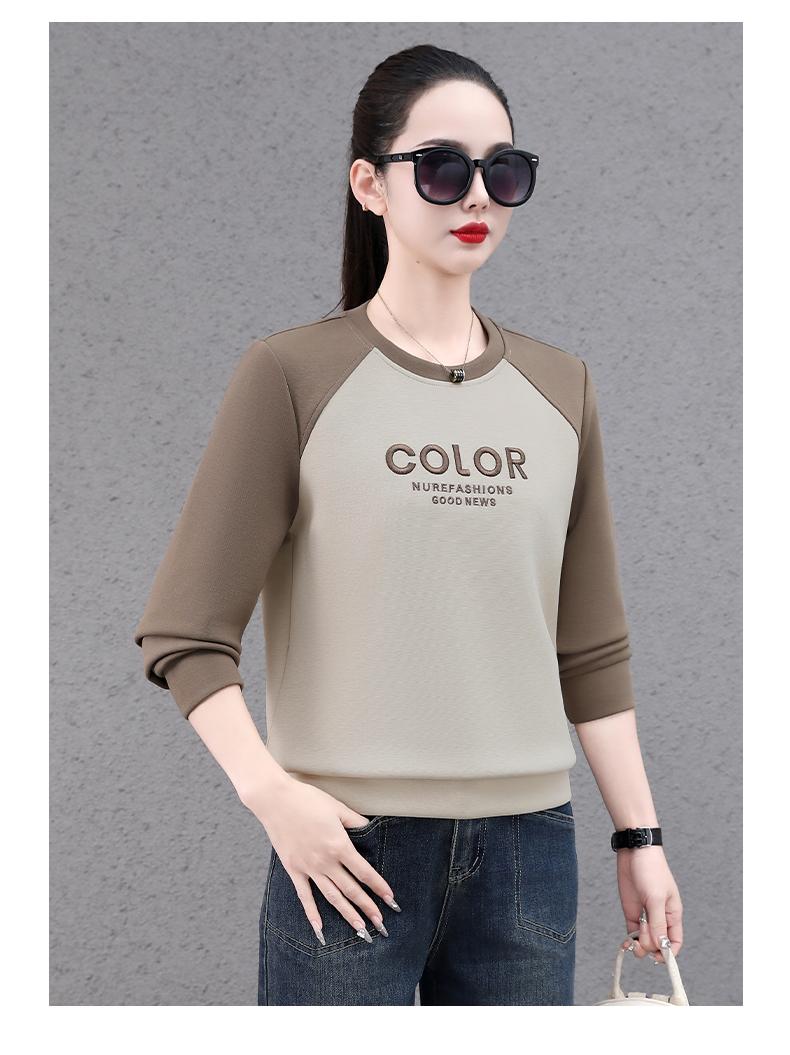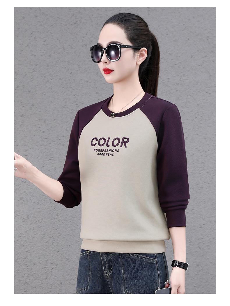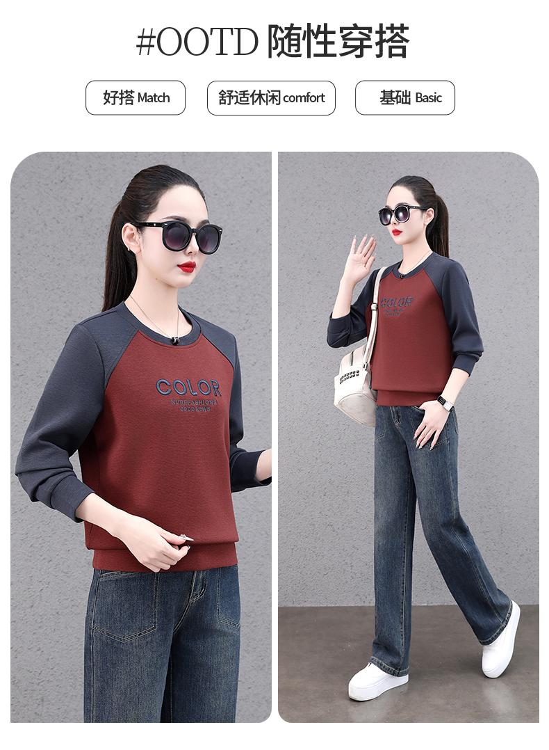 Sudadera de Cuello Redondo para Mujer 2025 Nuevo Primavera y Otoño Madre de Mediana Edad Suelta y Elegante Color en Contraste Manga Larga con Capucha Pulóver Chaqueta
