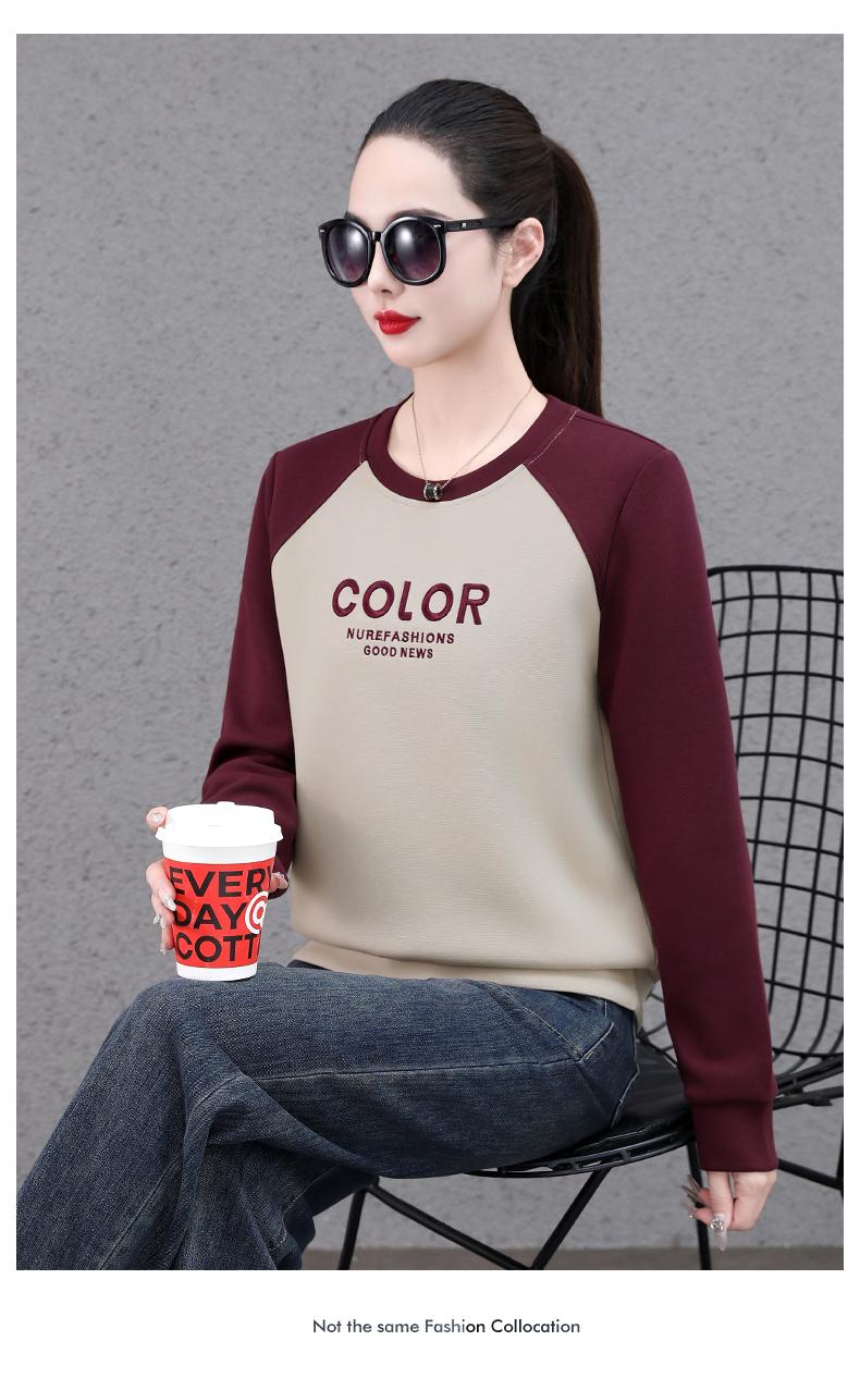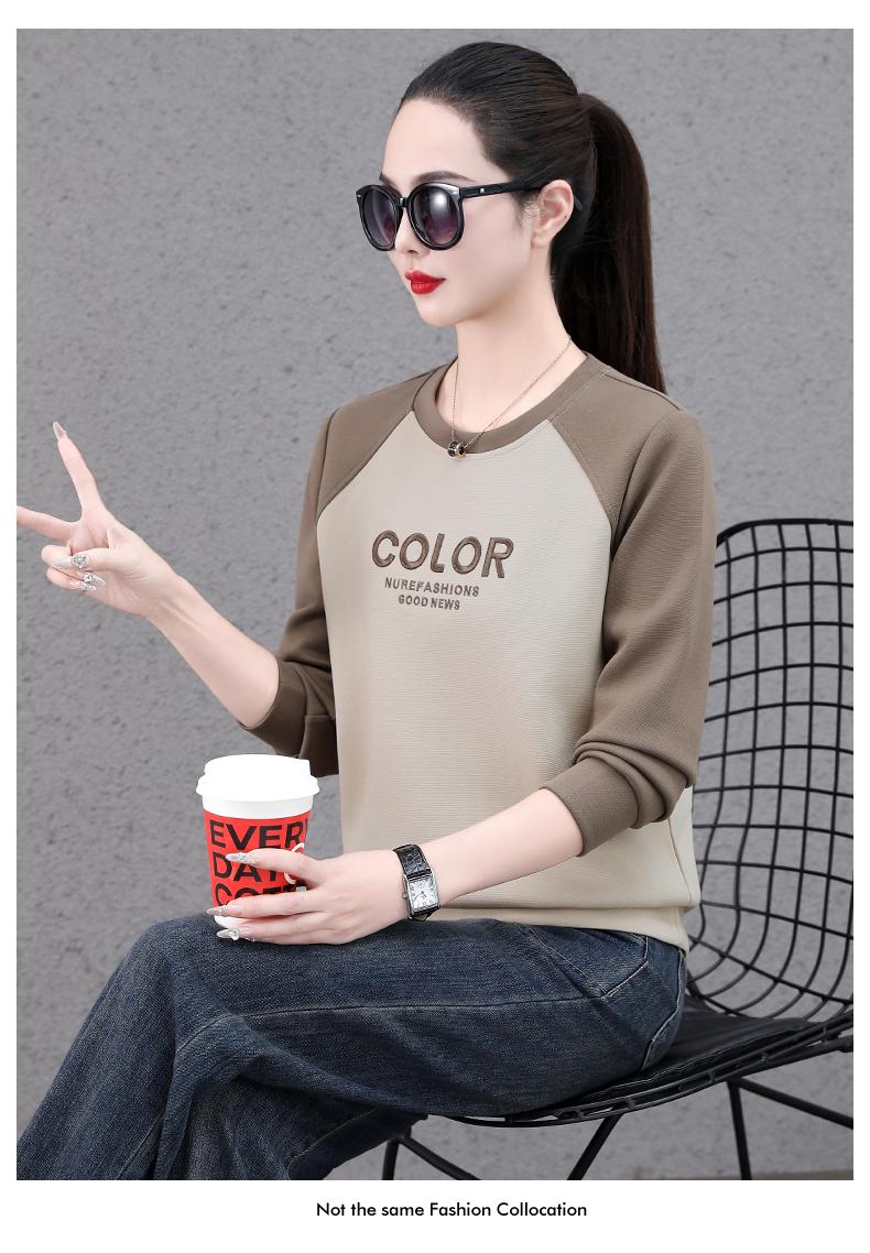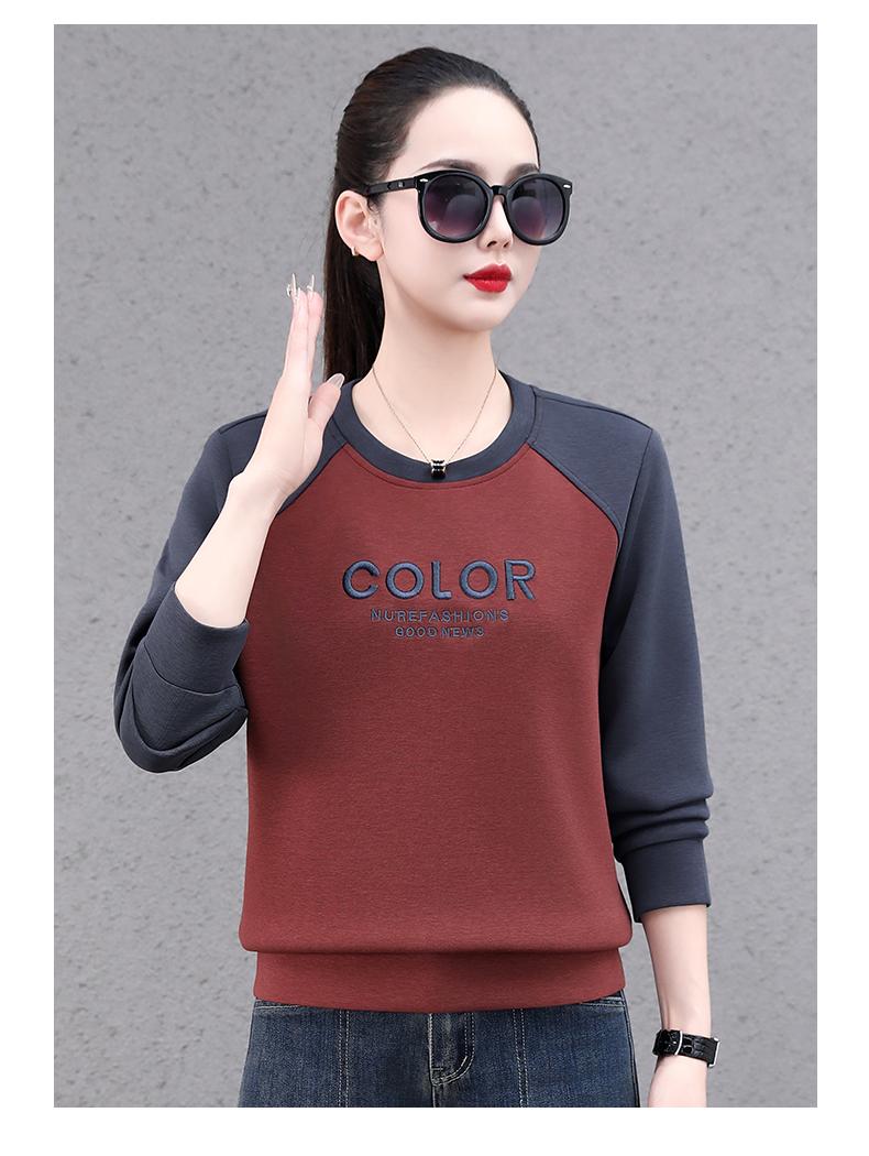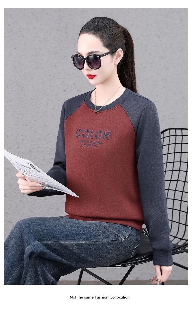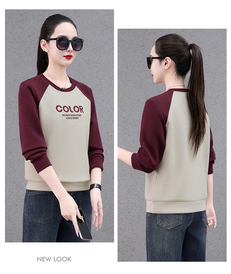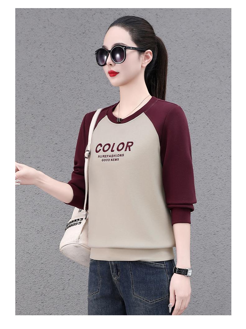 Sudadera de Cuello Redondo para Mujer 2025 Nuevo Primavera y Otoño Madre de Mediana Edad Suelta y Elegante Color en Contraste Manga Larga con Capucha Pulóver Chaqueta